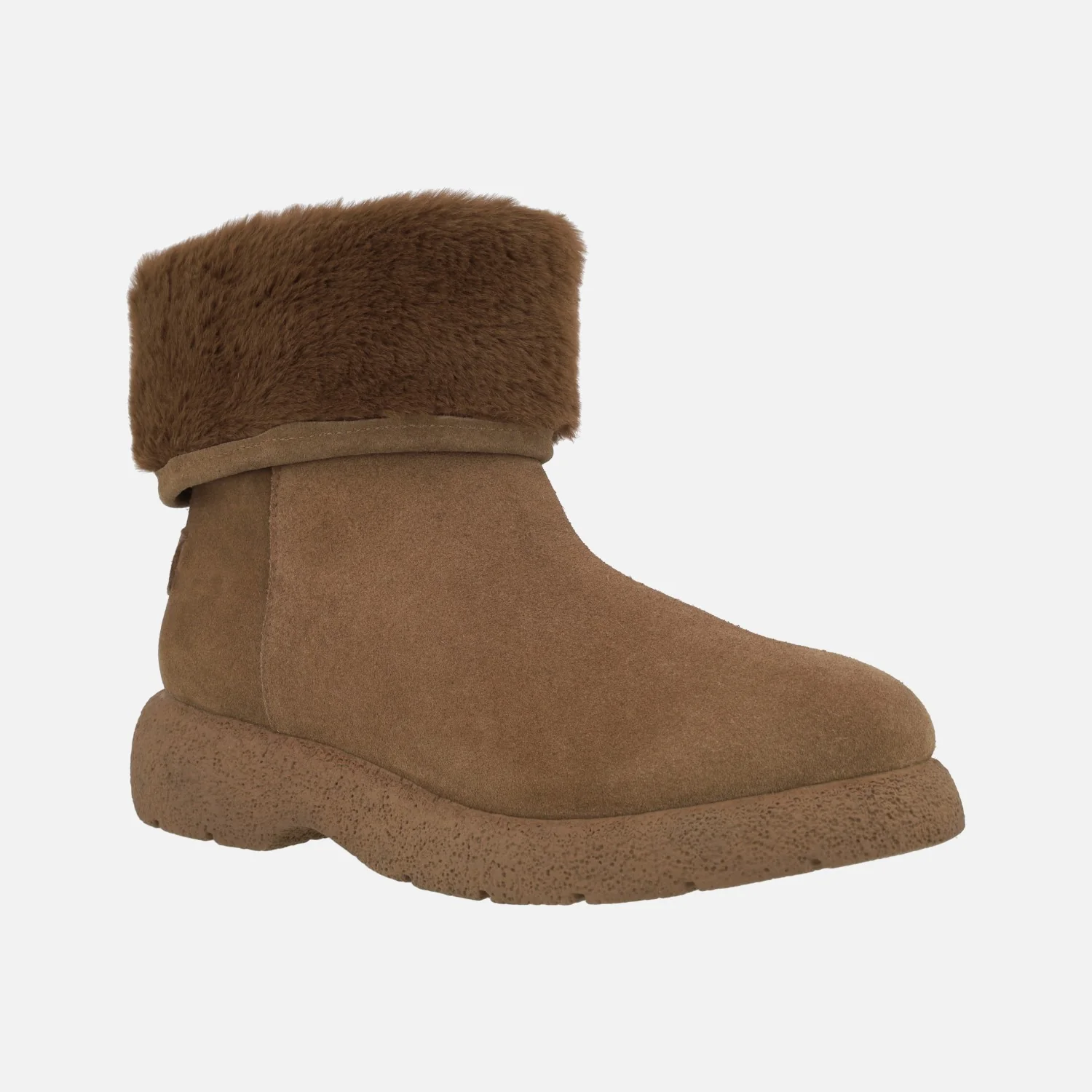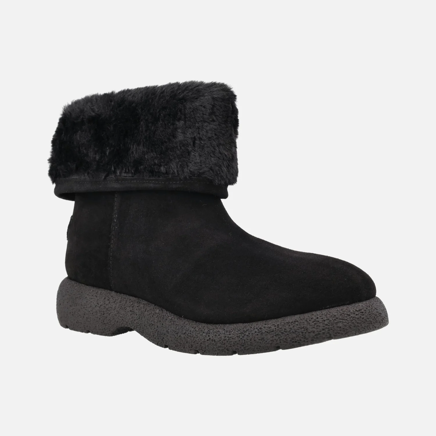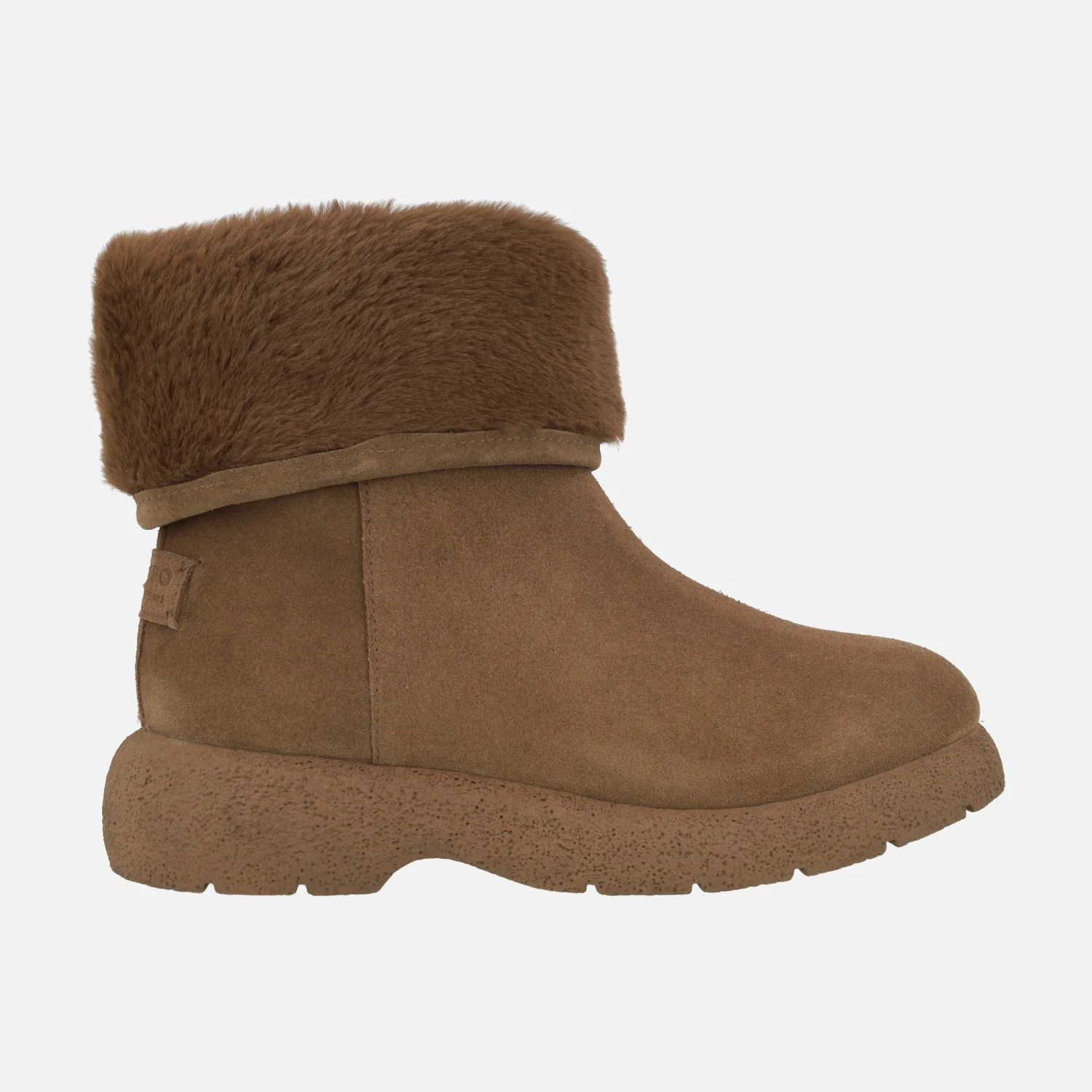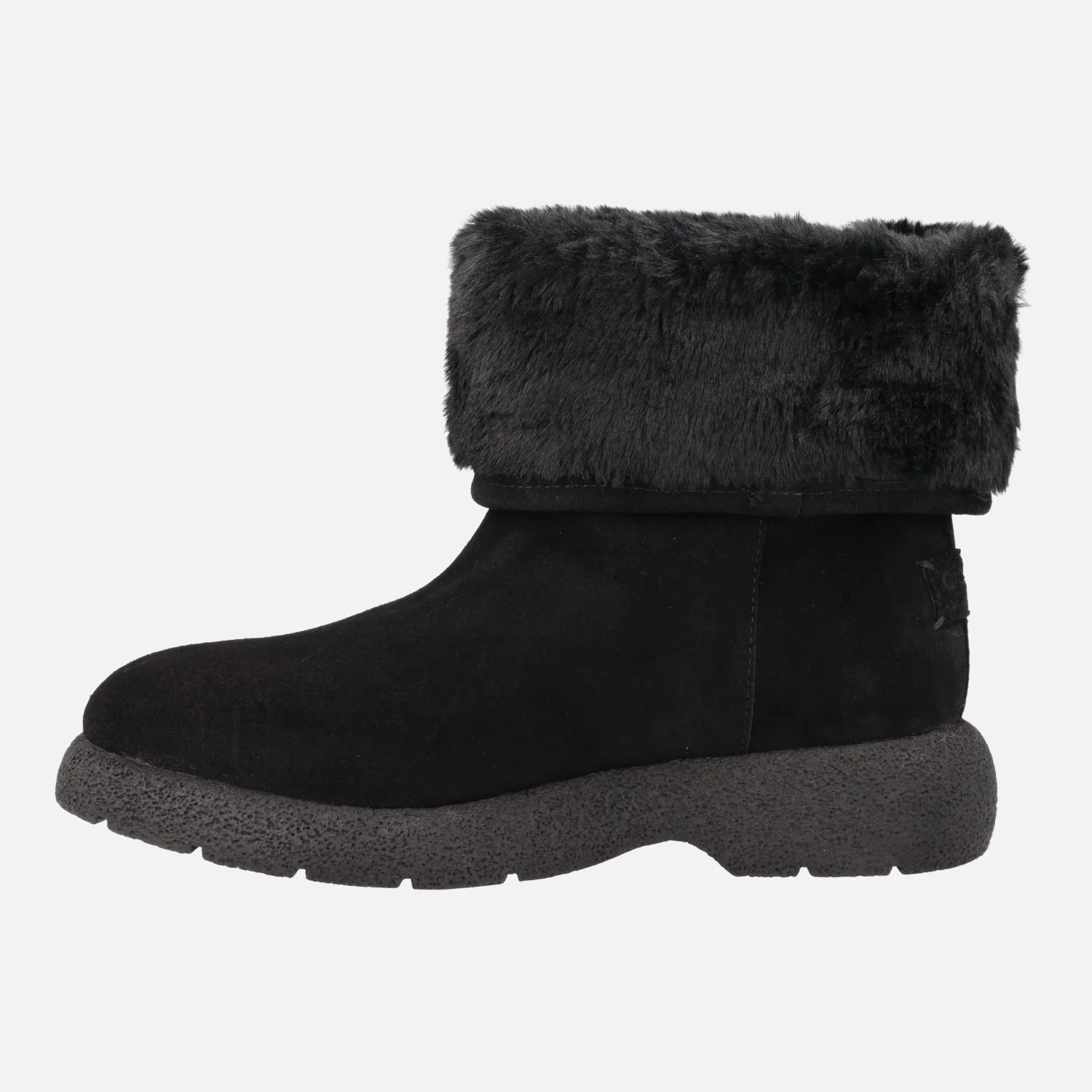 Botas multiposición de la marca Gioseppo, modelo Wilton 73626, disponibles en negro o en cuero. Botas de piel serraje con vuelta ancha de pelo (son multiposición porque también pueden llevarse estiradas). Interior textil con planta de piel. Piso de caucho de 4 cms de altura trasera (2 cms parte delantera). Altura de caña con la vuelta 17 cms. ( 22 cms con la caña estirada).