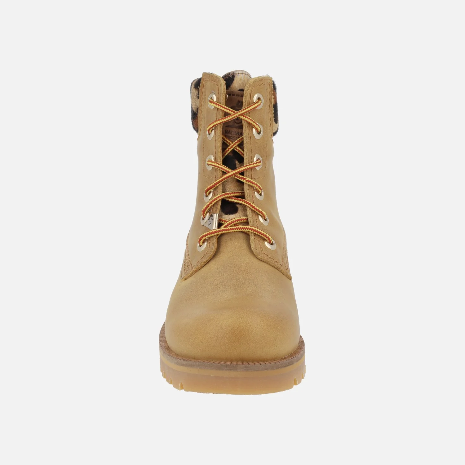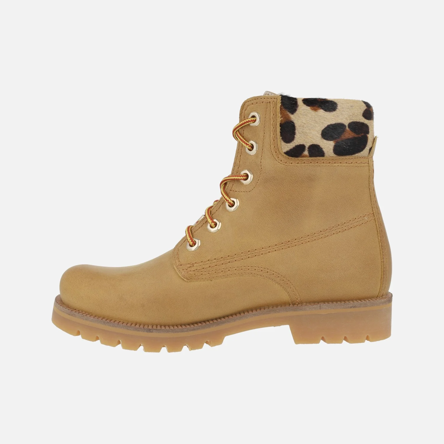 Botines de piel con cordones para mujer de la marca Panama jack, modelo Panama 03 Leopardo B1 Napa Vintage. Botines elaborados en piel waterproof, con cordones textiles. Detalle de collarín en pelo animal print leopardo. Forro y planta de piel. Plantillas extraíbles. Piso de caucho natural, con una altura trasera de 3 cms (2 cm parte delantera). Caña de 15 cms de altura. Made in Spain.