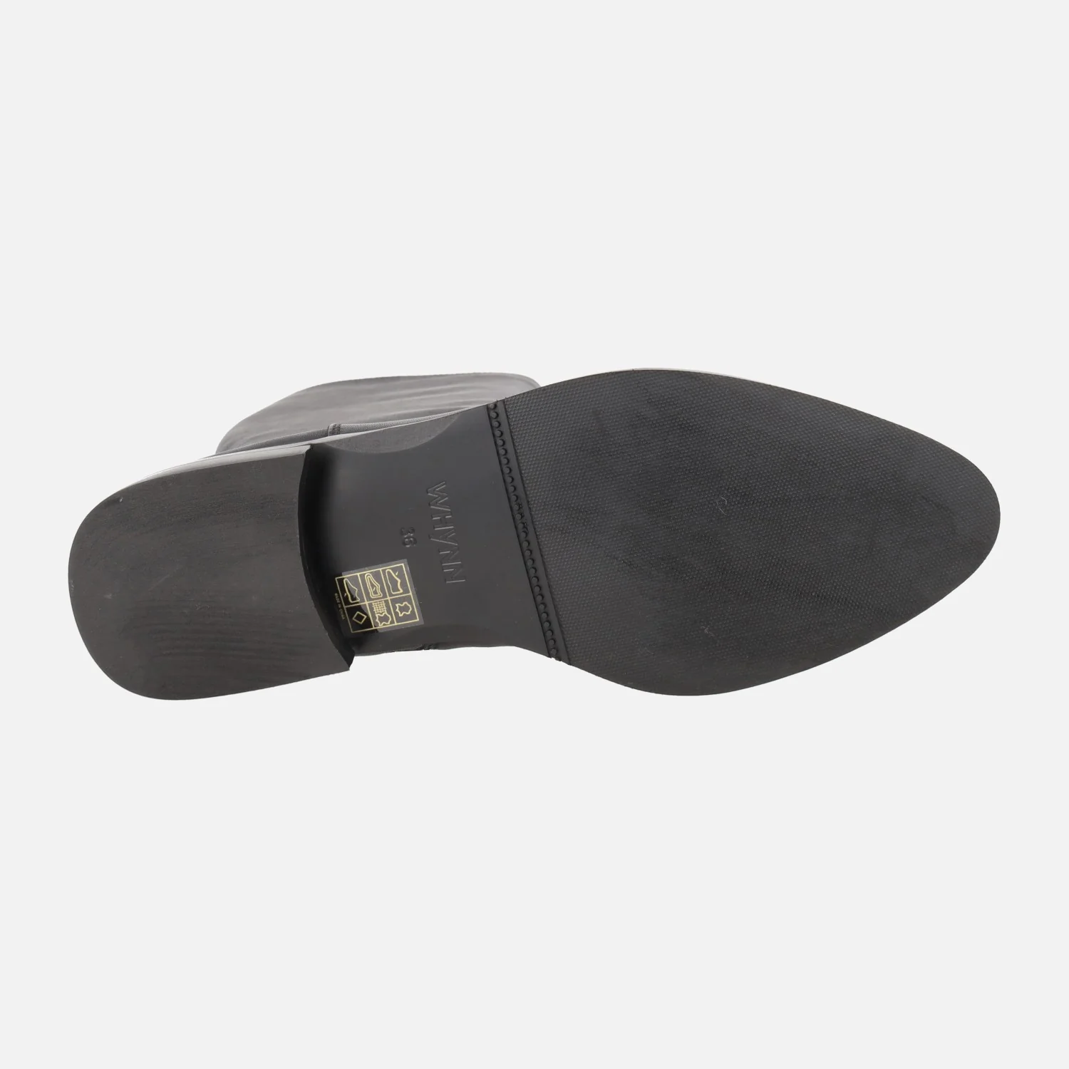 Botas de tacón bajo para mujer de la marca Whynn modelo Norve Lag. Fabricadas en piel, con cremallera en la parte interior. Forro y plantillas son de piel y tejido. Piso de goma, con tacón de 2,5 cm. Caña de 37 cm. Disponibles en piel negra y en piel serraje taupe.