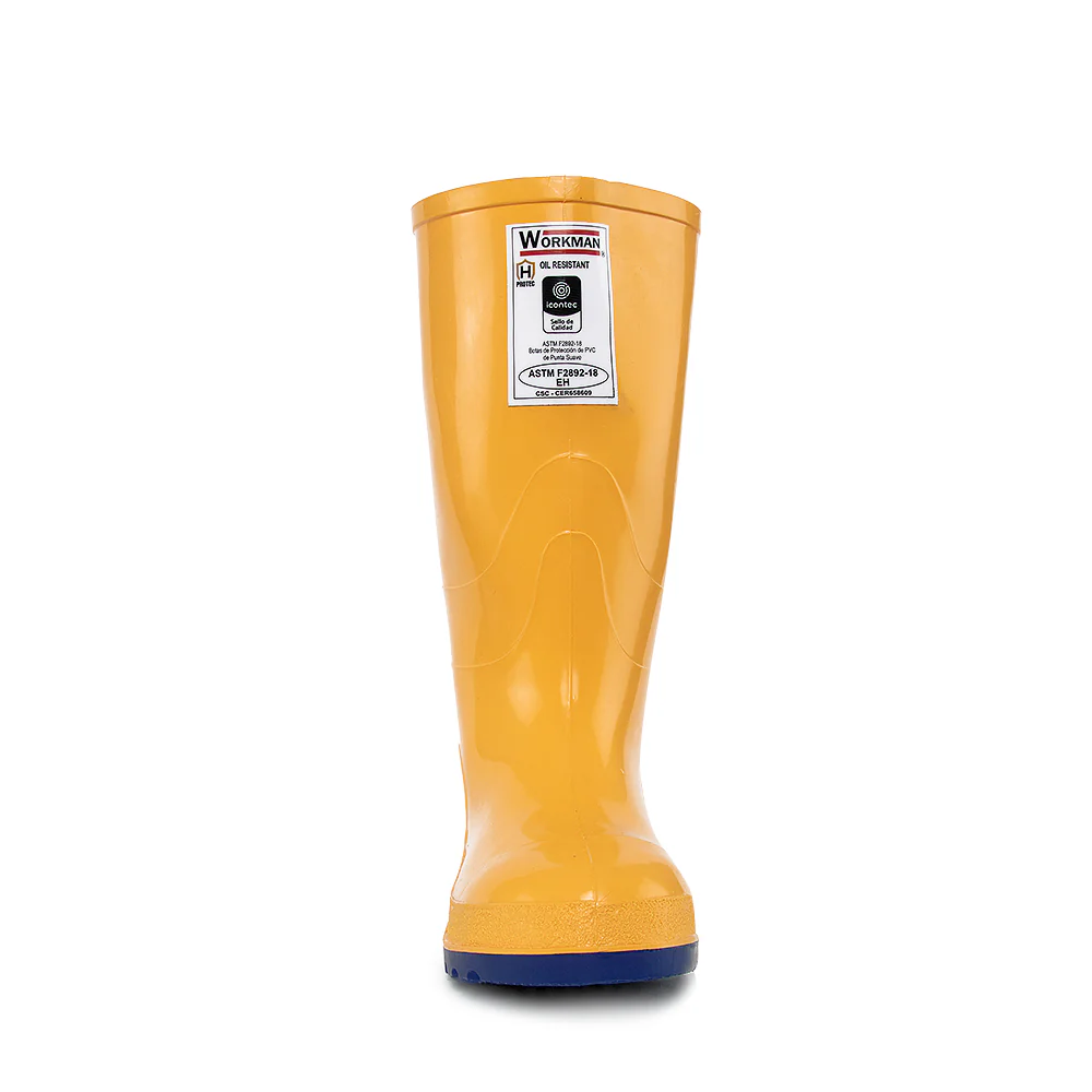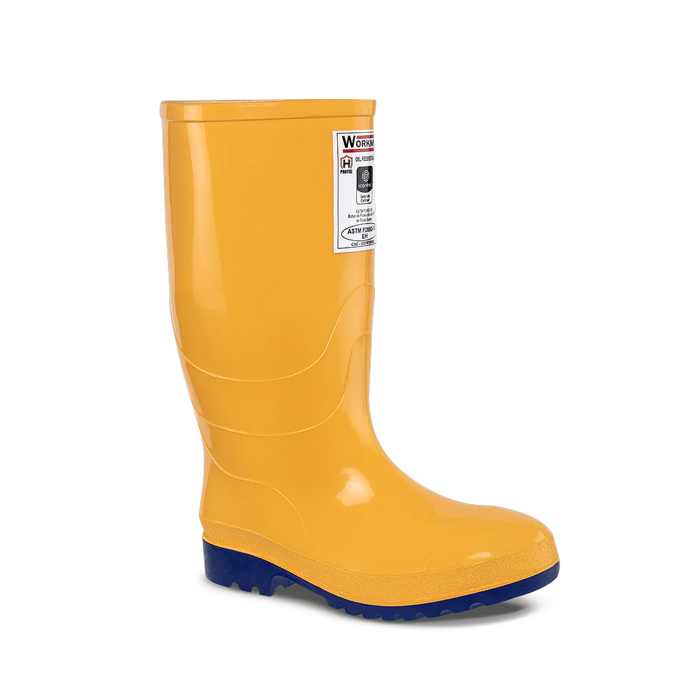 SKU: 2400026. Botas de protección, Ideales para distintas y las más exigentes actividades en sectores industriales. Bota inyectada en PVC bicolor 100% impermeable, resistente a hidrocarburos. Protección a la corriente estática. Resistente al choque eléctrico. Altura promedio de 32 cm.
