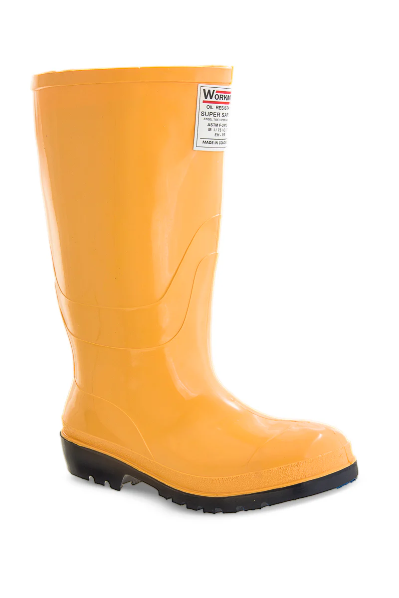 SKU: 2430026. Botas de protección, Ideales para distintas y las más exigentes actividades en sectores industriales. Bota inyectada en PVC bicolor 100% impermeable, resistente a hidrocarburos. Protección a la corriente estática. Resistente al choque eléctrico. Con Puntera y plantilla de acero. Altura promedio de 32 cm.