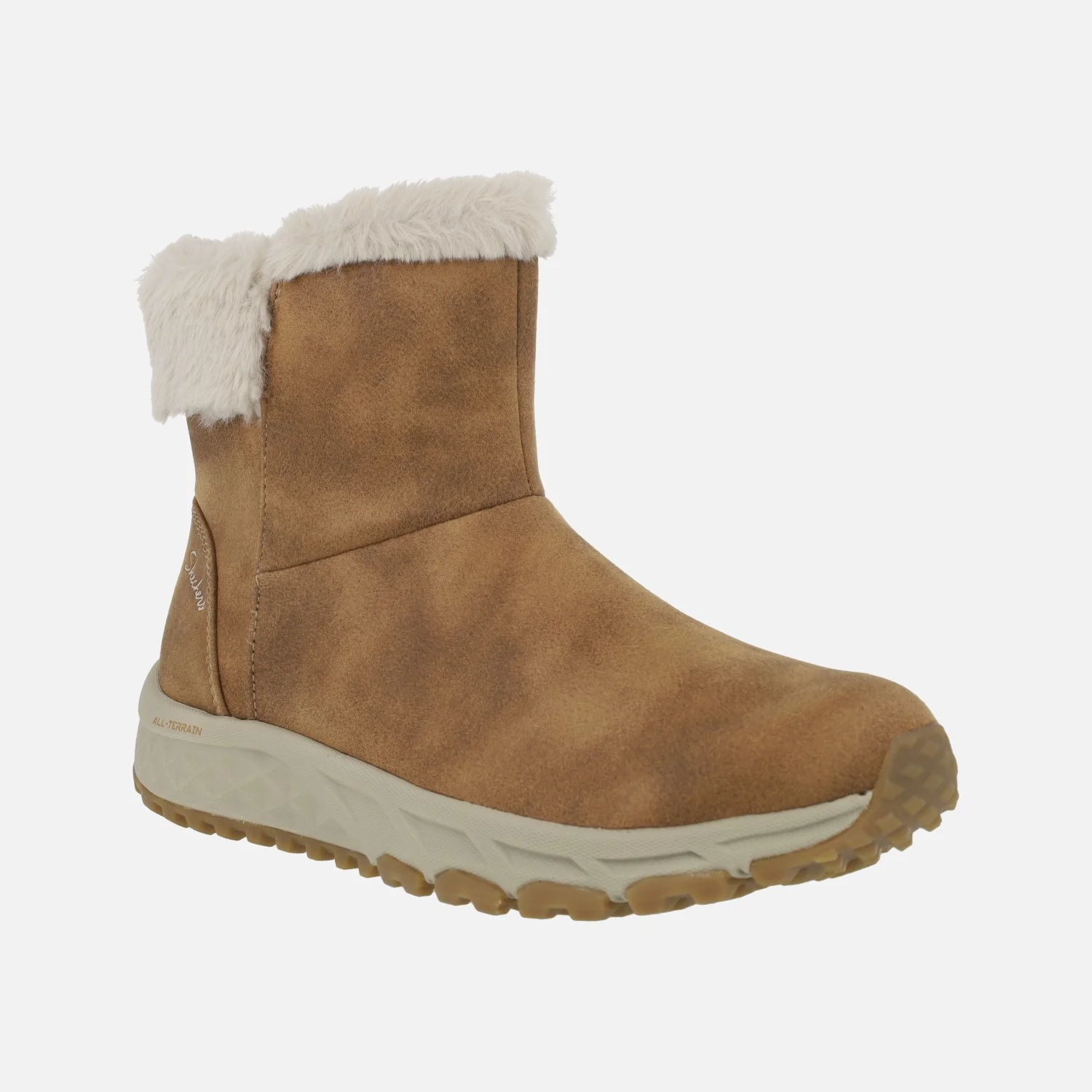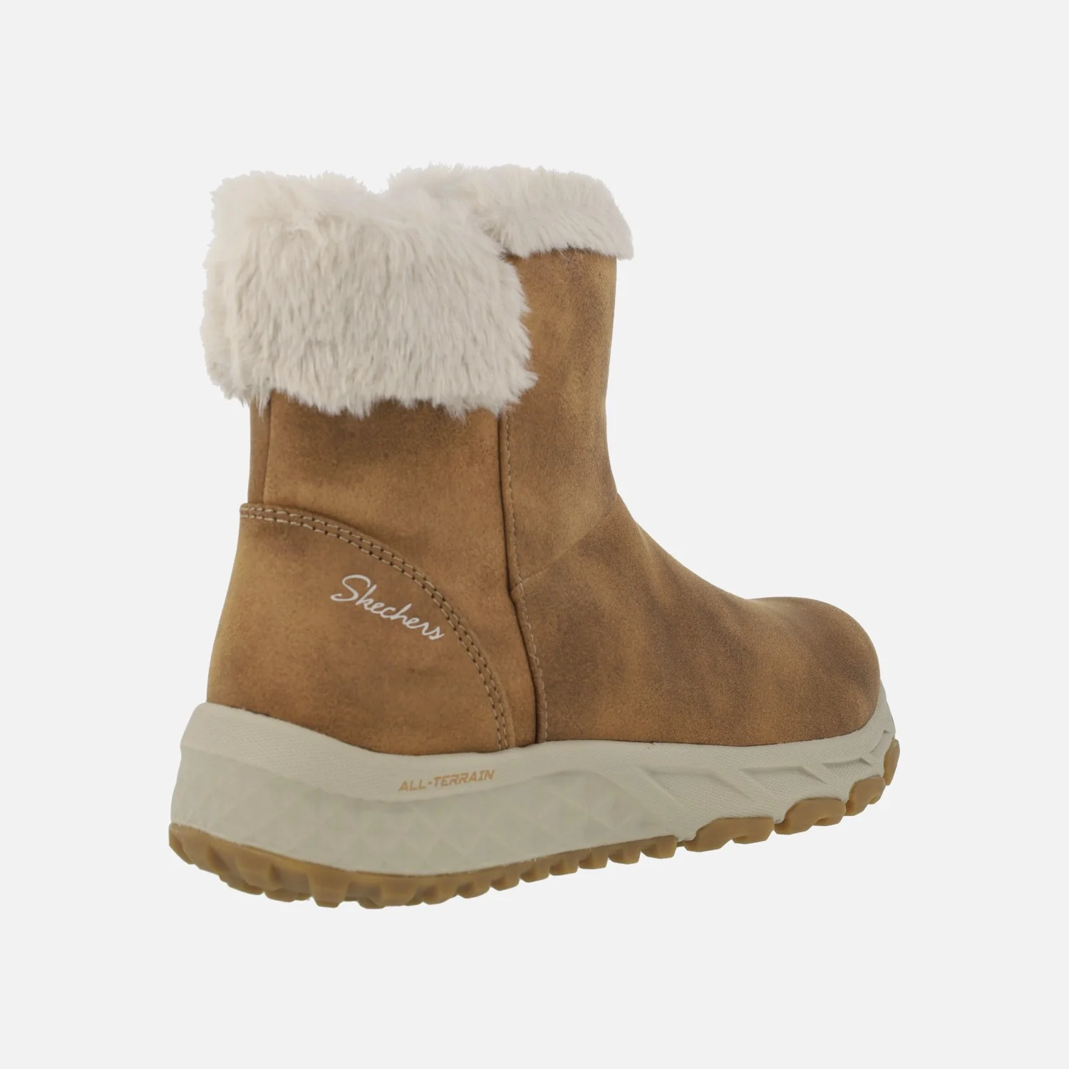 Botas para mujer de la marca Skechers modelo Escape Plan – Cozy Collab 167413 CSNT. Botas elaboradas en micropiel sintética con ribete en pelo sintético. Cierre de cremallera en el lado interior. Forro textil suave aterciopelado. Piso de goma antideslizante. Exterior ligeramente resistente al agua. Caña de aproximadamente 15 cms de altura. Altura de piso 4 cms en la parte trasera (2,5 cms en la parte delantera).