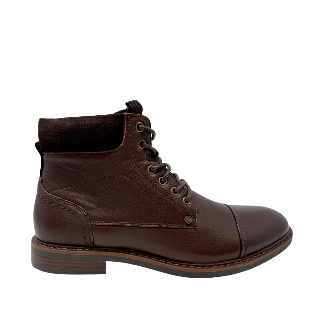 Botas Thatch para hombre color café, elaboradas en cuero con suela sintética. Su diseño robusto y contemporáneo garantiza resistencia y estilo.