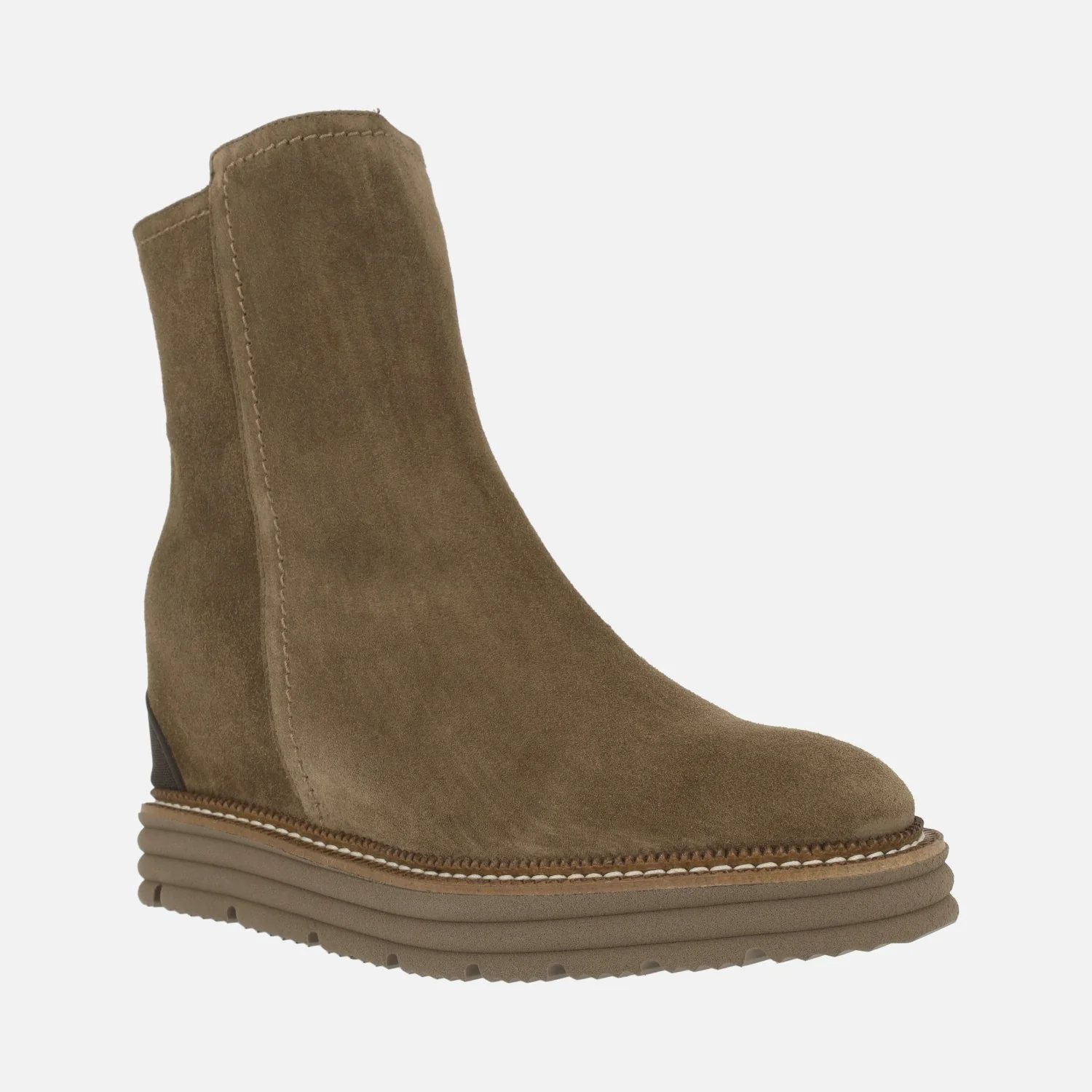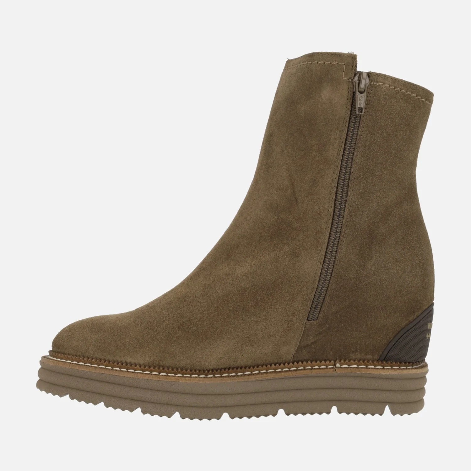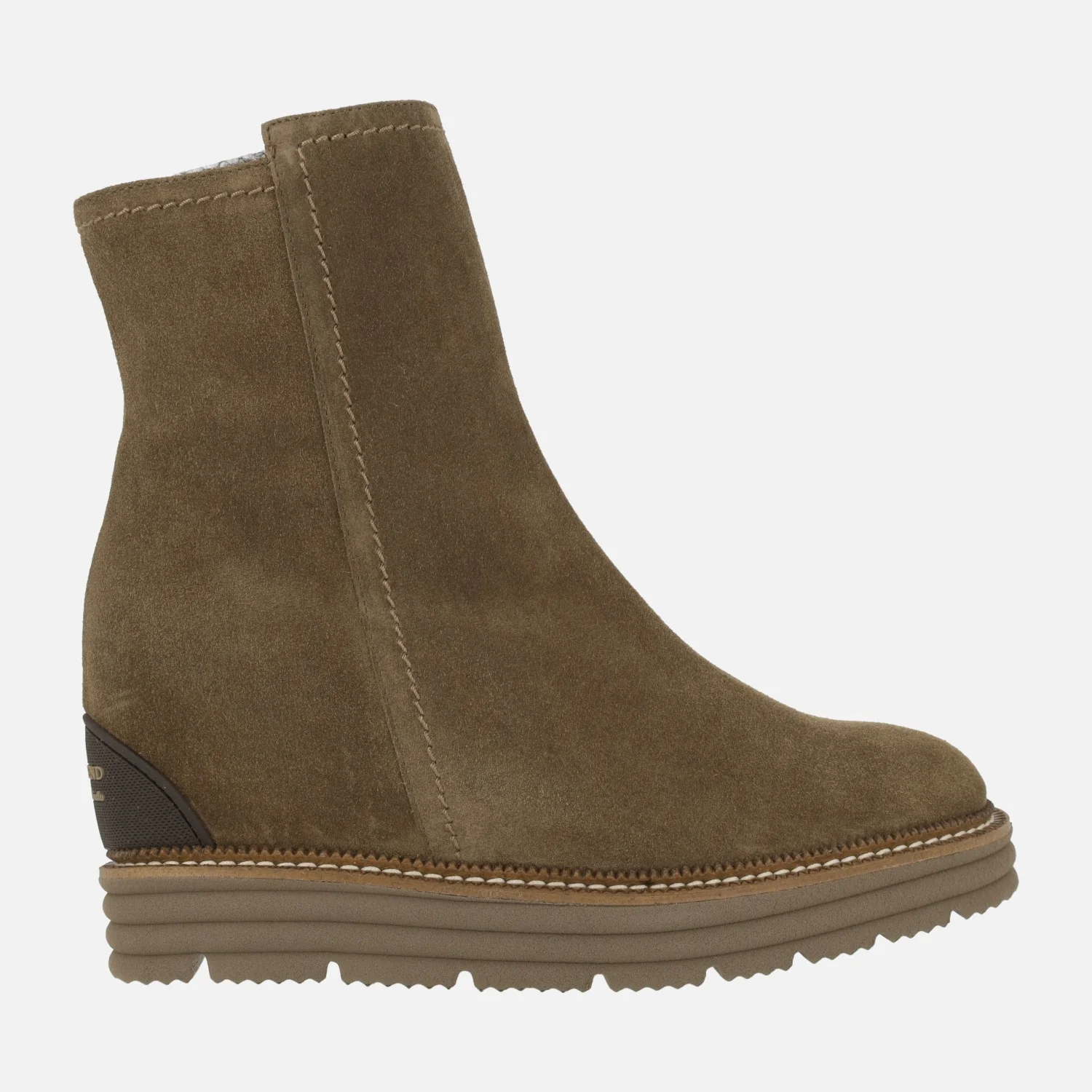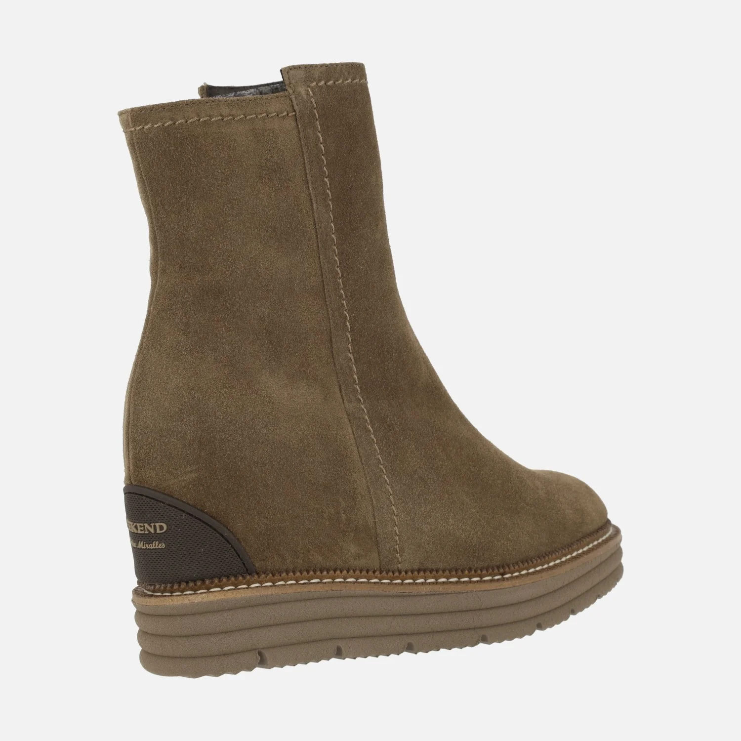 Preciosos botines para mujer de la marca Pedro Miralles, modelo Ajaccio 26459 velour avellana, de la línea Weekend. Botines elaborados en piel serraje marrón con cierre de cremallera en el lado interior. Forro y planta de piel. Plantillas extraíbles. Cuña interior de 6 cms de altura, que junto con la plataforma de goma de 3 cms hacen un total de 9 cms del pie al suelo. Caña de 17,5 cms de altura aproximadamente.