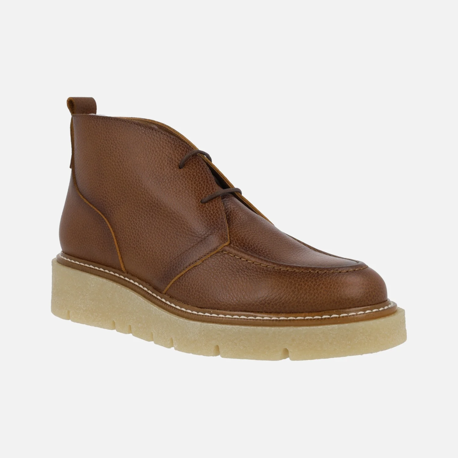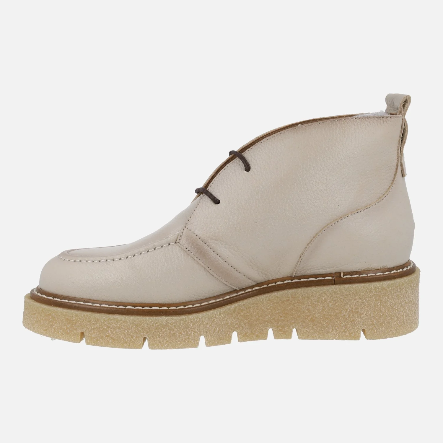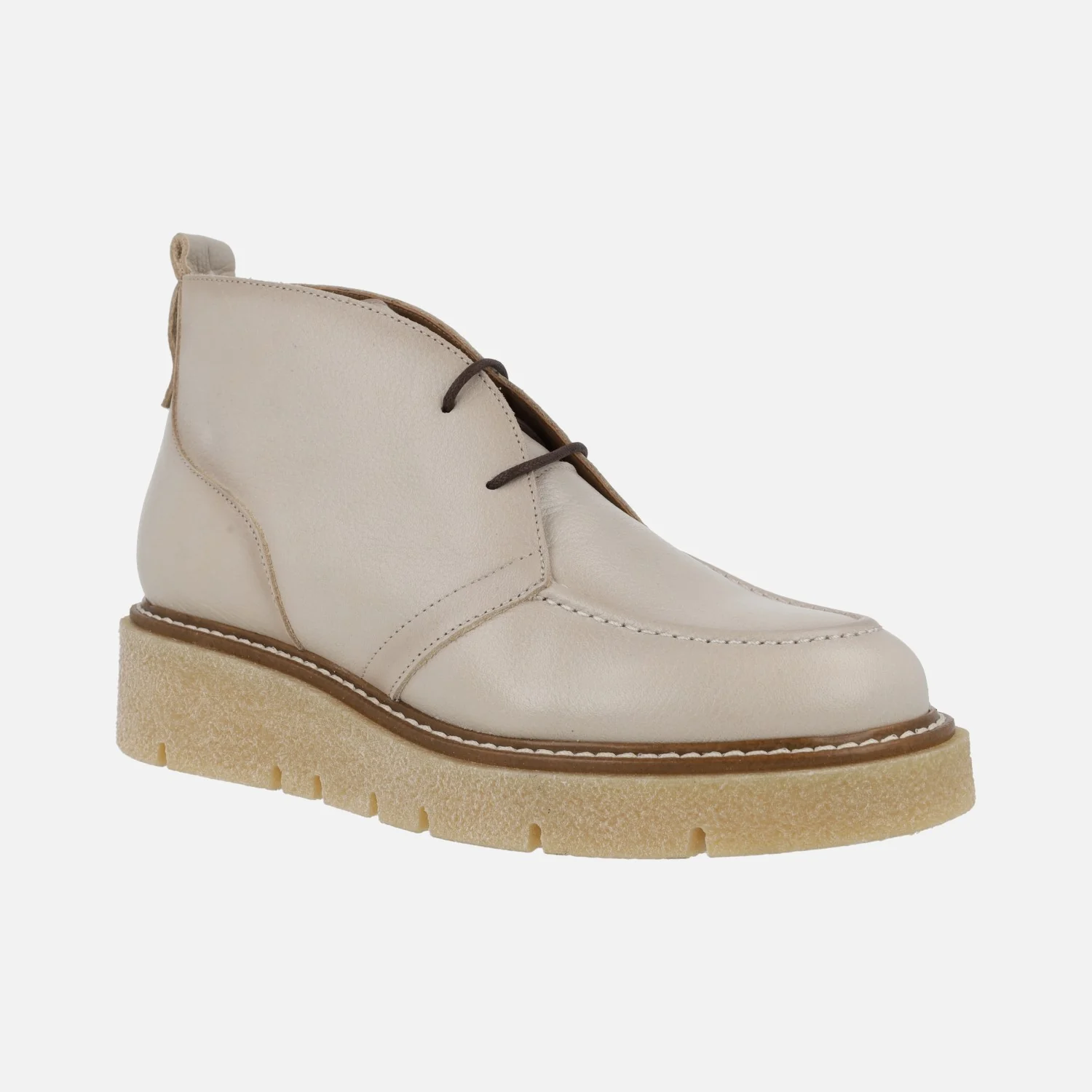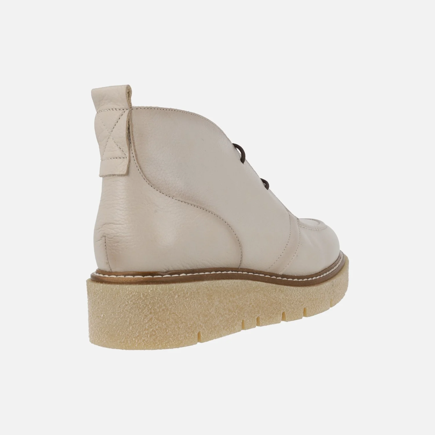 Botines de piel para mujer de la marca Barminton, modelo 13021, disponibles en color brandy y en nude (beige). Botines bajos de cordones, con plataforma de goma estilo crepé. Interior textil. Caña de 10 cms de altura. Piso con 4 cms de altura trasera (2,5 cms parte delantera). Made in Spain.