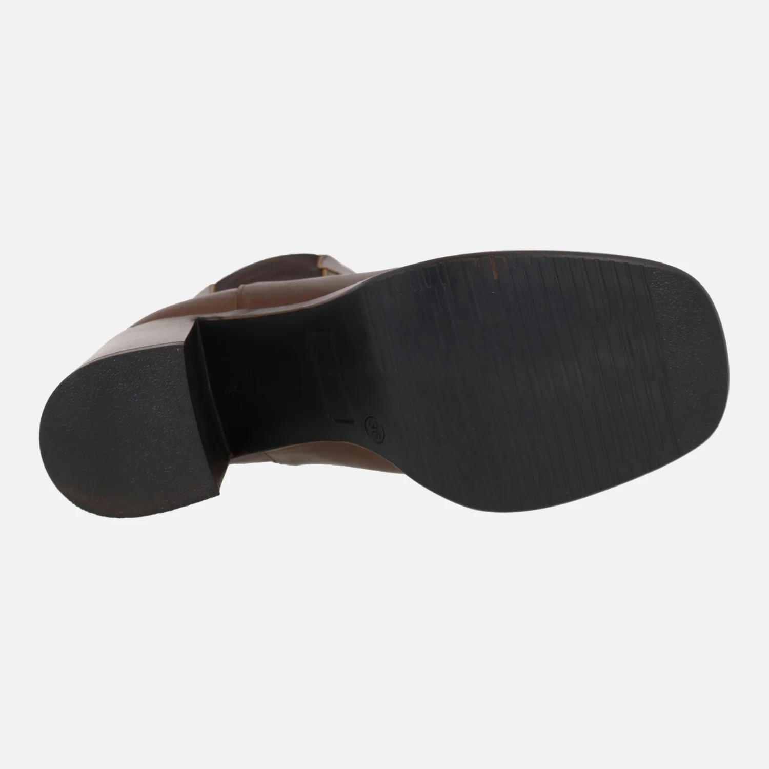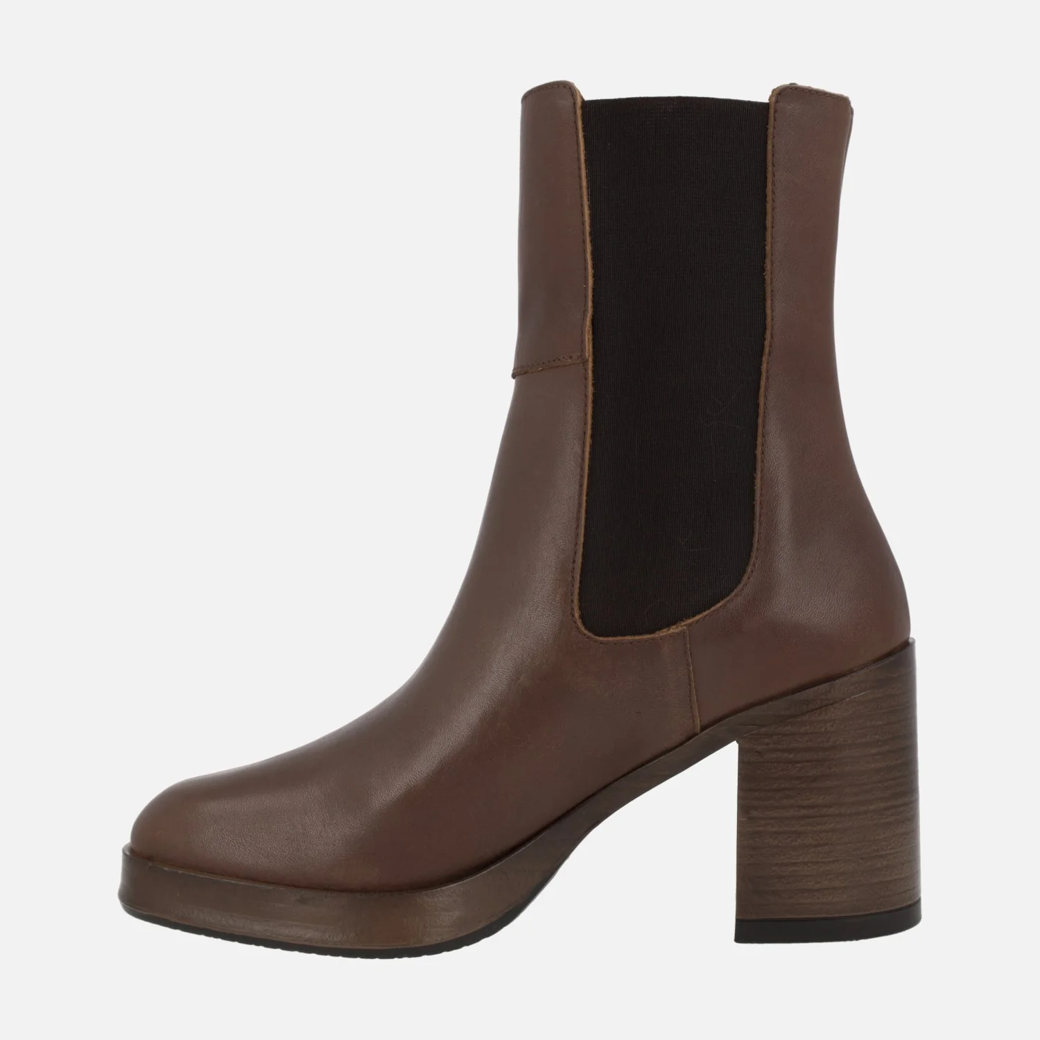 Botines chelsea para mujer de la marca Bryan Stepwise, modelo 6802 cuero. Botines de piel cuero, con elásticos laterales. Altos de caña, aproximadamente 17,5 cms de altura. Forro mixto de piel y tejido, con plantillas de piel. Tacones altos, de 8 cms de altura (1,5 cms de plataforma delantera). Made in Spain.
