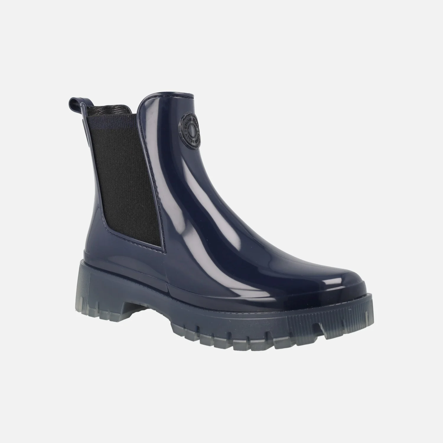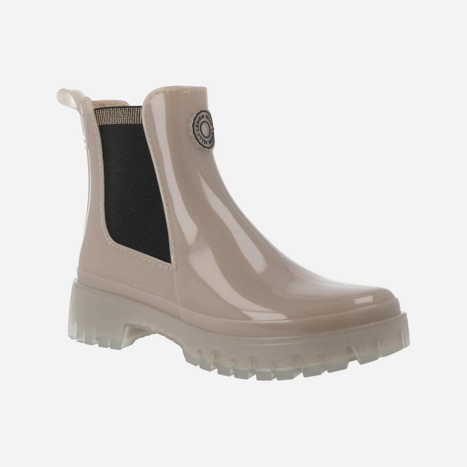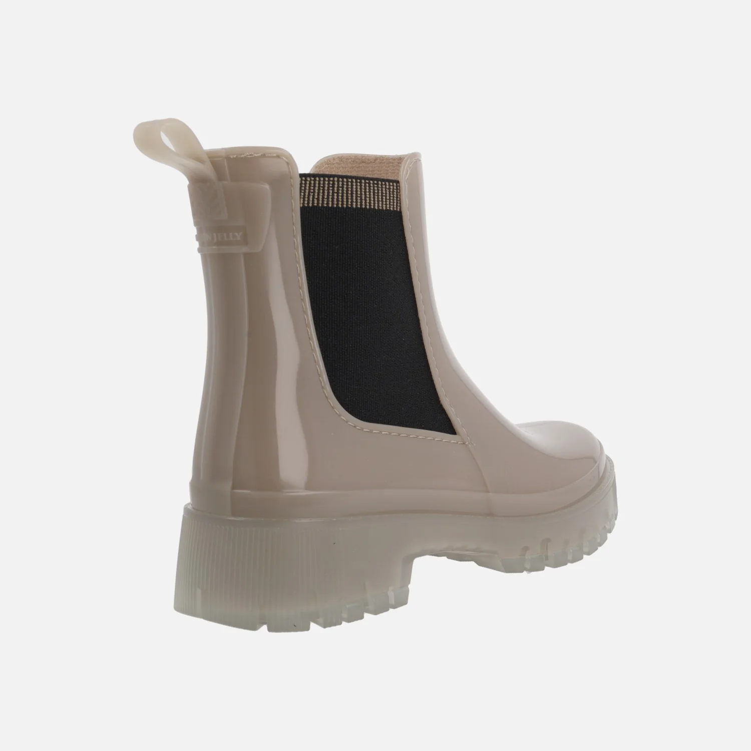 Botines de agua estilo chelsea de la marca Lemon Jelly, modelo Carolina, disponibles en naval (azul marino) y en dusty nude (beige). Botines elaborados en PVC, con elásticos laterales y tirador trasero para facilitar el calce. Interior textil con plantillas extraíbles de microfibra, que absorben la humedad. Suela de PVC, translúcida, con una altura trasera de 4 cms (2,5 cms parte delantera). Caña de 14 cms. Logo de la marca, Lemon jelly en la parte frontal.