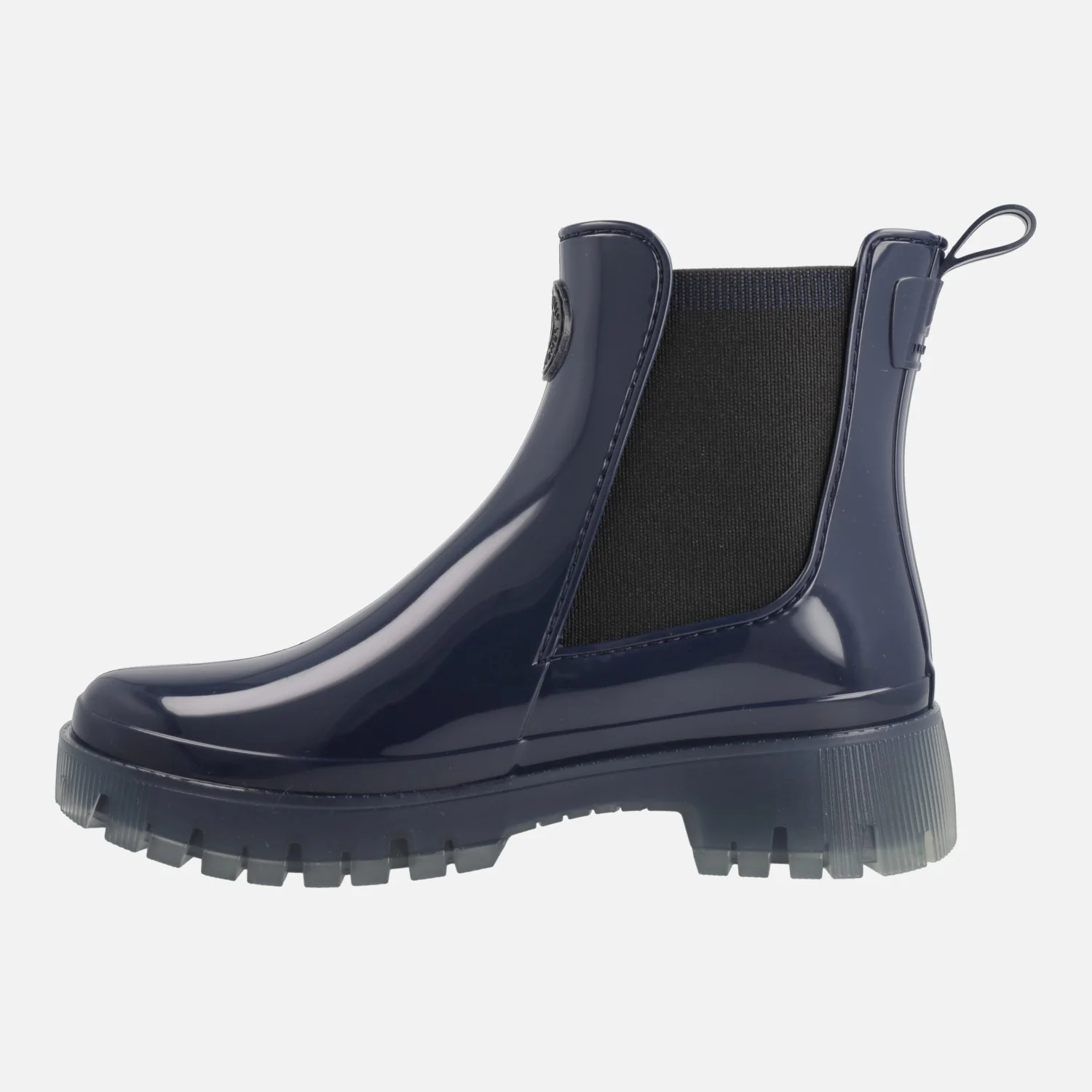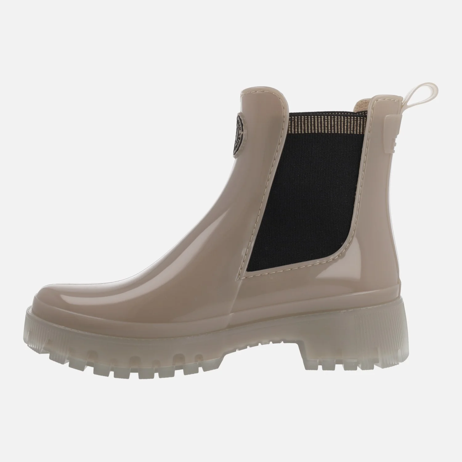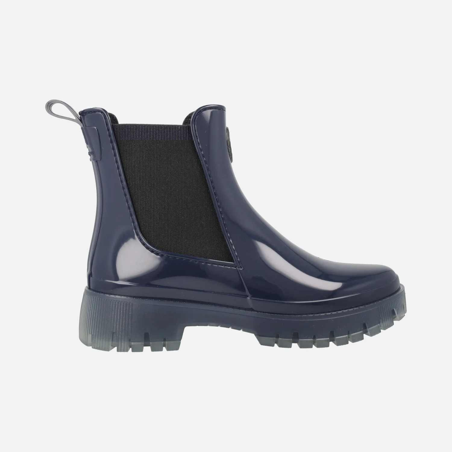 Botines de agua estilo chelsea de la marca Lemon Jelly, modelo Carolina, disponibles en naval (azul marino) y en dusty nude (beige). Botines elaborados en PVC, con elásticos laterales y tirador trasero para facilitar el calce. Interior textil con plantillas extraíbles de microfibra, que absorben la humedad. Suela de PVC, translúcida, con una altura trasera de 4 cms (2,5 cms parte delantera). Caña de 14 cms. Logo de la marca, Lemon jelly en la parte frontal.