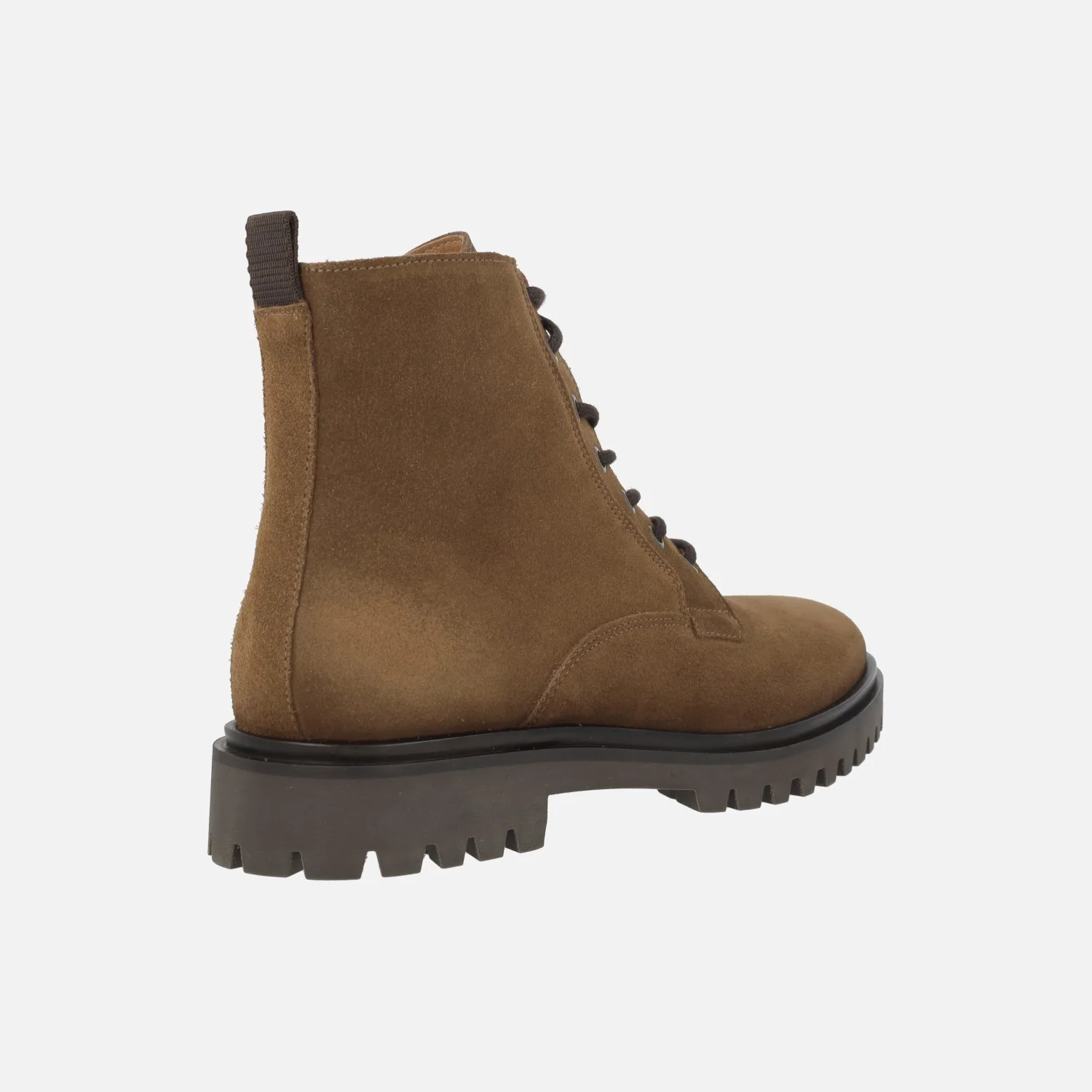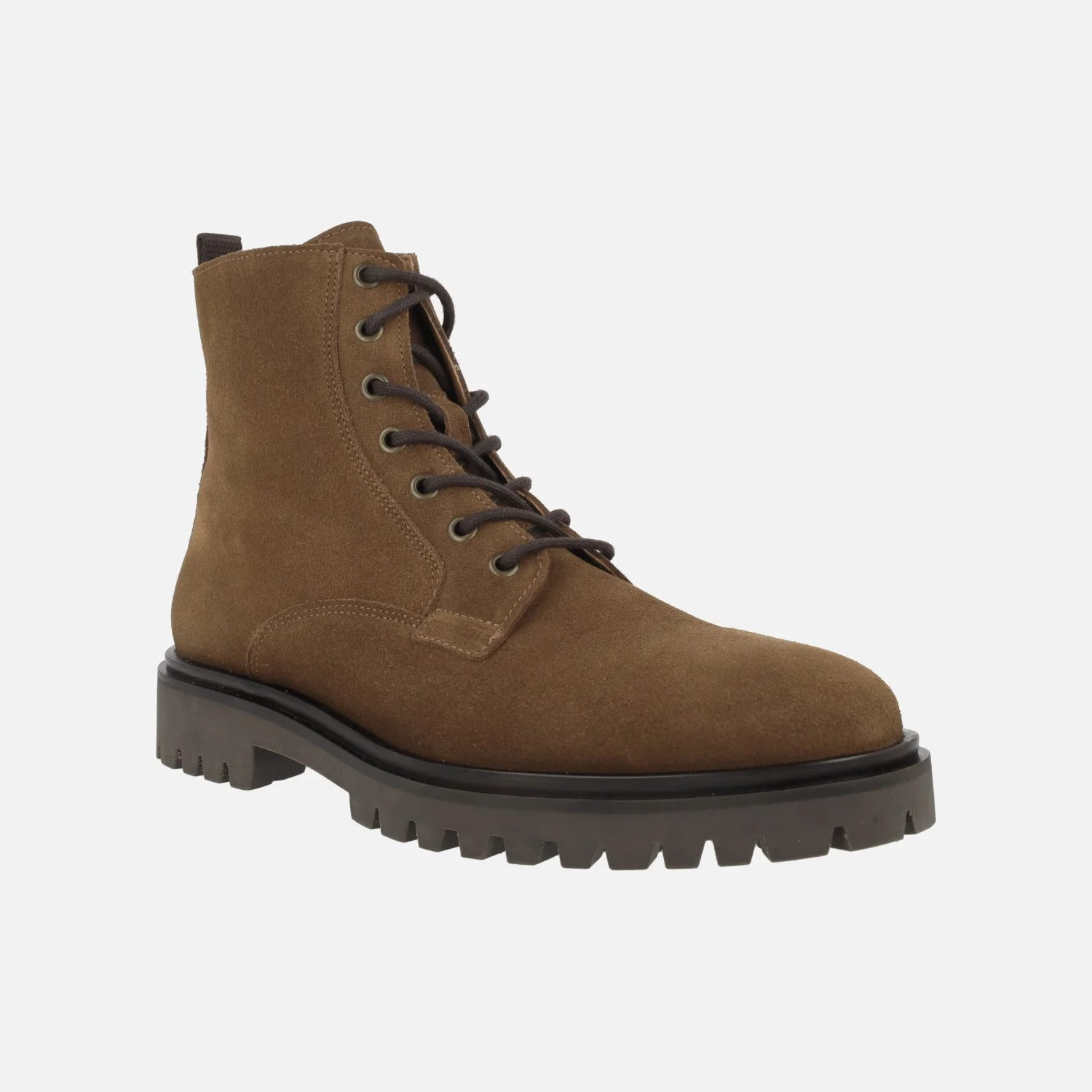 Botas de cordones para hombre de la marca Help the trees modelo 23085 Cuero. Botines de cordones, elaborados en piel serraje color cuero, con cremallera en el lado interior. Forro y planta sintéticos, piso de goma. Tirador textil en la caña.