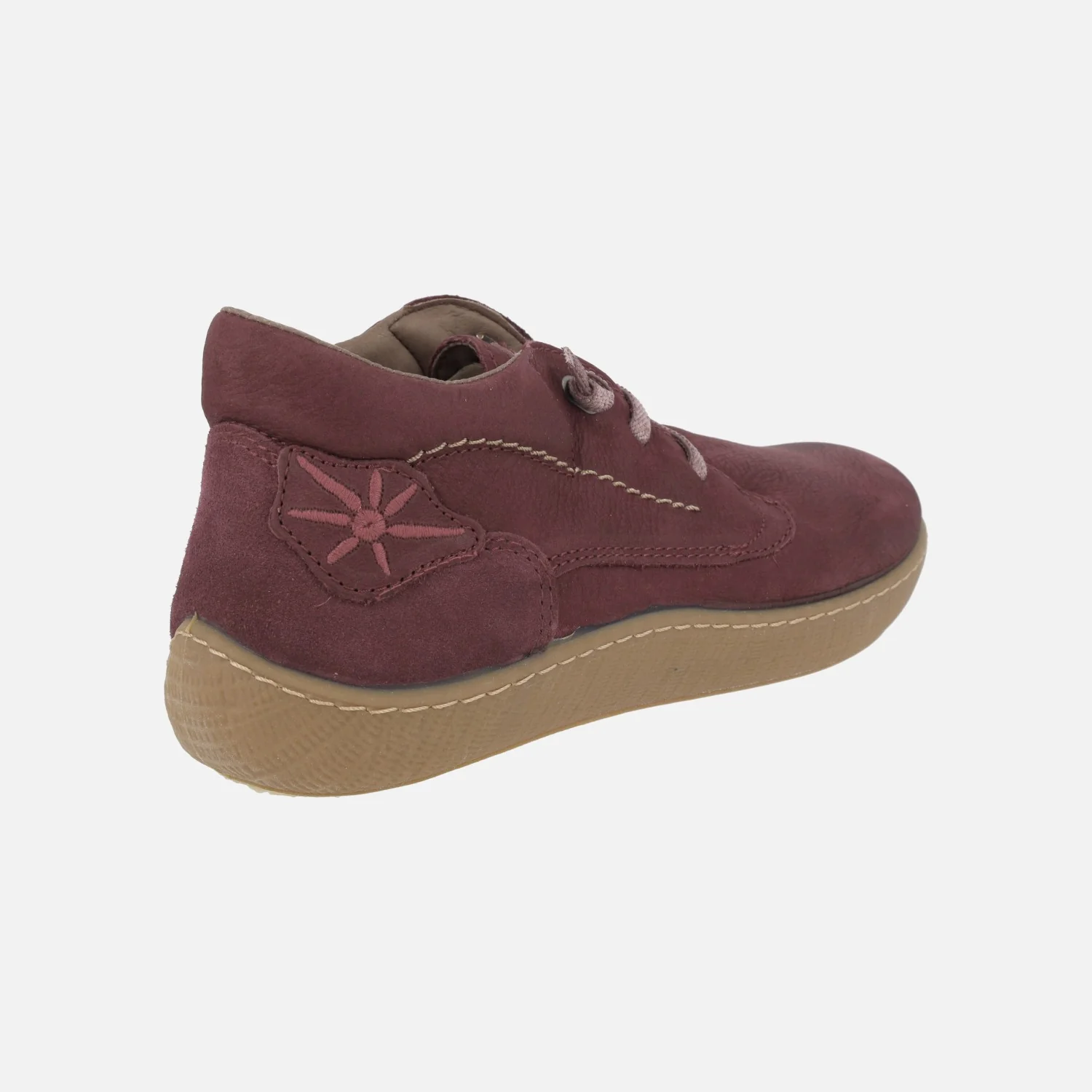 Botines confort para mujer de la marca Sunni Sabbi modelo Naru 066. Botines elaborados en piel nobuck, con detalle de cordones elásticos. Disponibles en burdeos, kaki y panama (mostaza). Interior textil con plantillas extraíbles. Piso de goma, de aproximadamente 3 cm. Puntera ancha, cómodos y flexibles. Caña de 8 cm. Made in Spain.