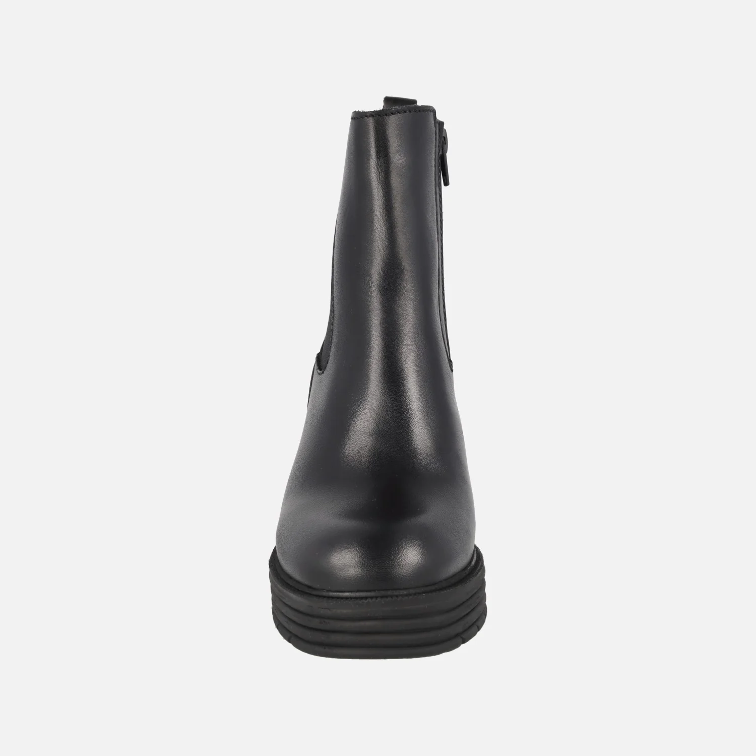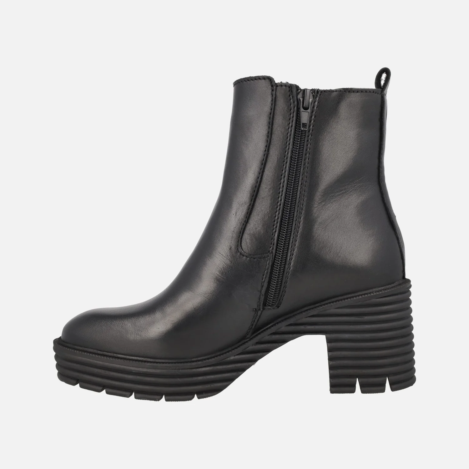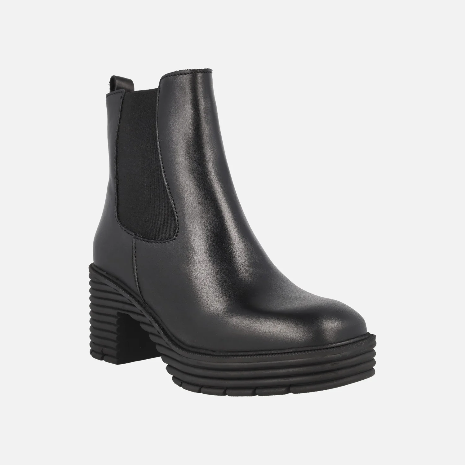 Botines de tacón y plataforma de la marca Lol shoes, modelo Gladys. Disponibles en piel negra y en serraje marrón chocolate. Botines inspiración chelsea, con elástico en el lado exterior y cierre de cremallera en el lado interior. Forro y planta en combinado de tejido y sintéticos. Piso sintético con tacones de 7,5 cm de altura y plataforma de 2,5 cm. Caña de 13 cm.