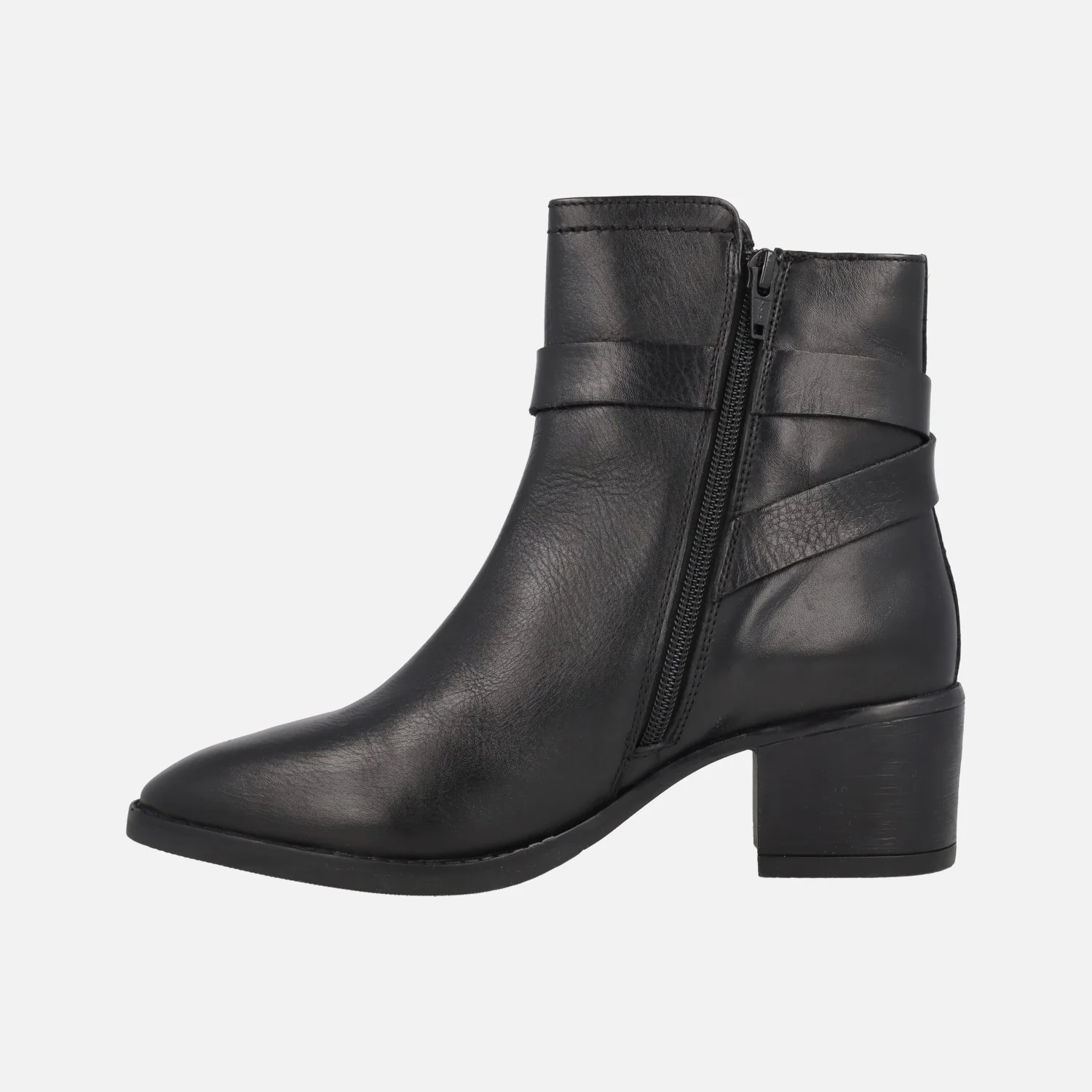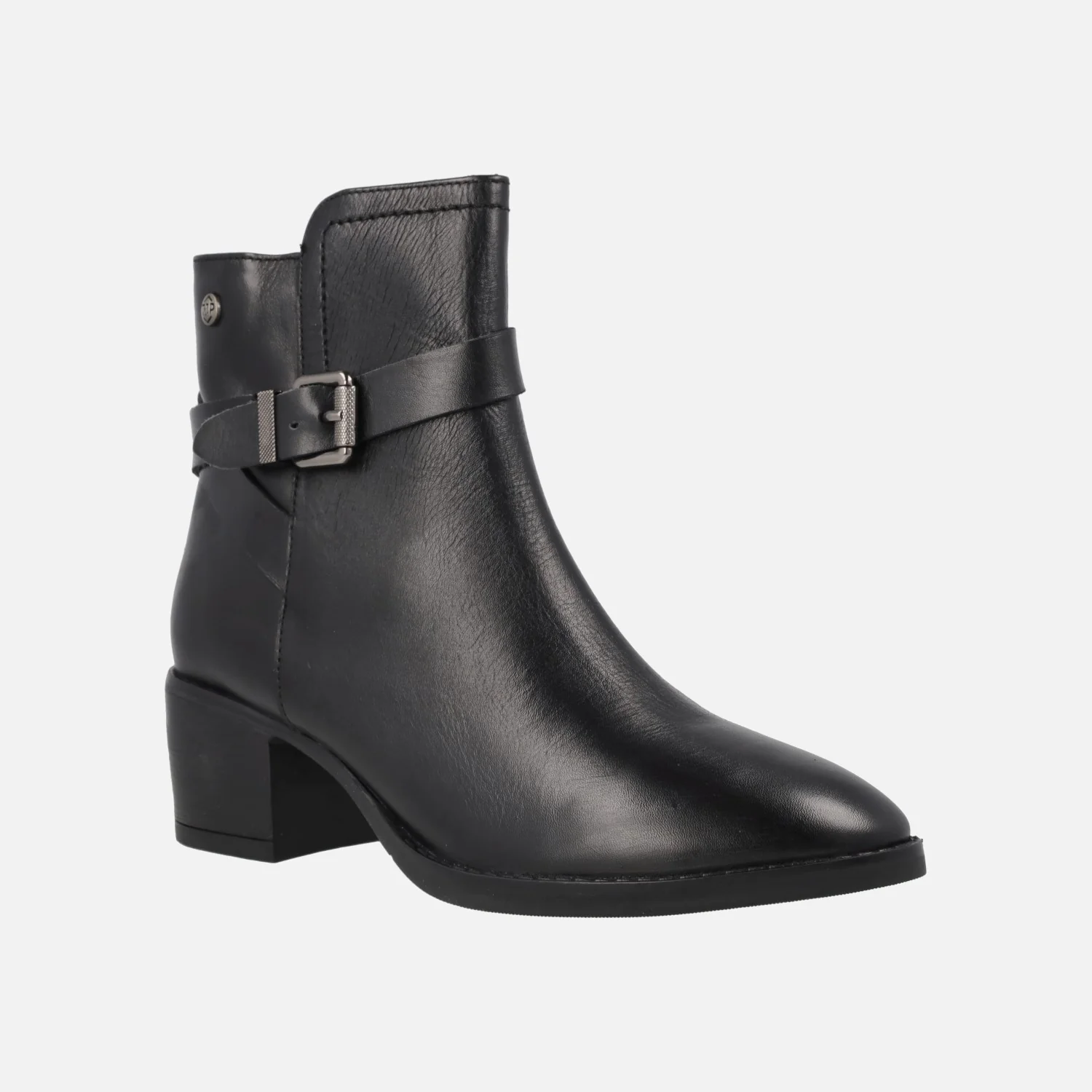 Botines de tacón en piel negra con hebilla