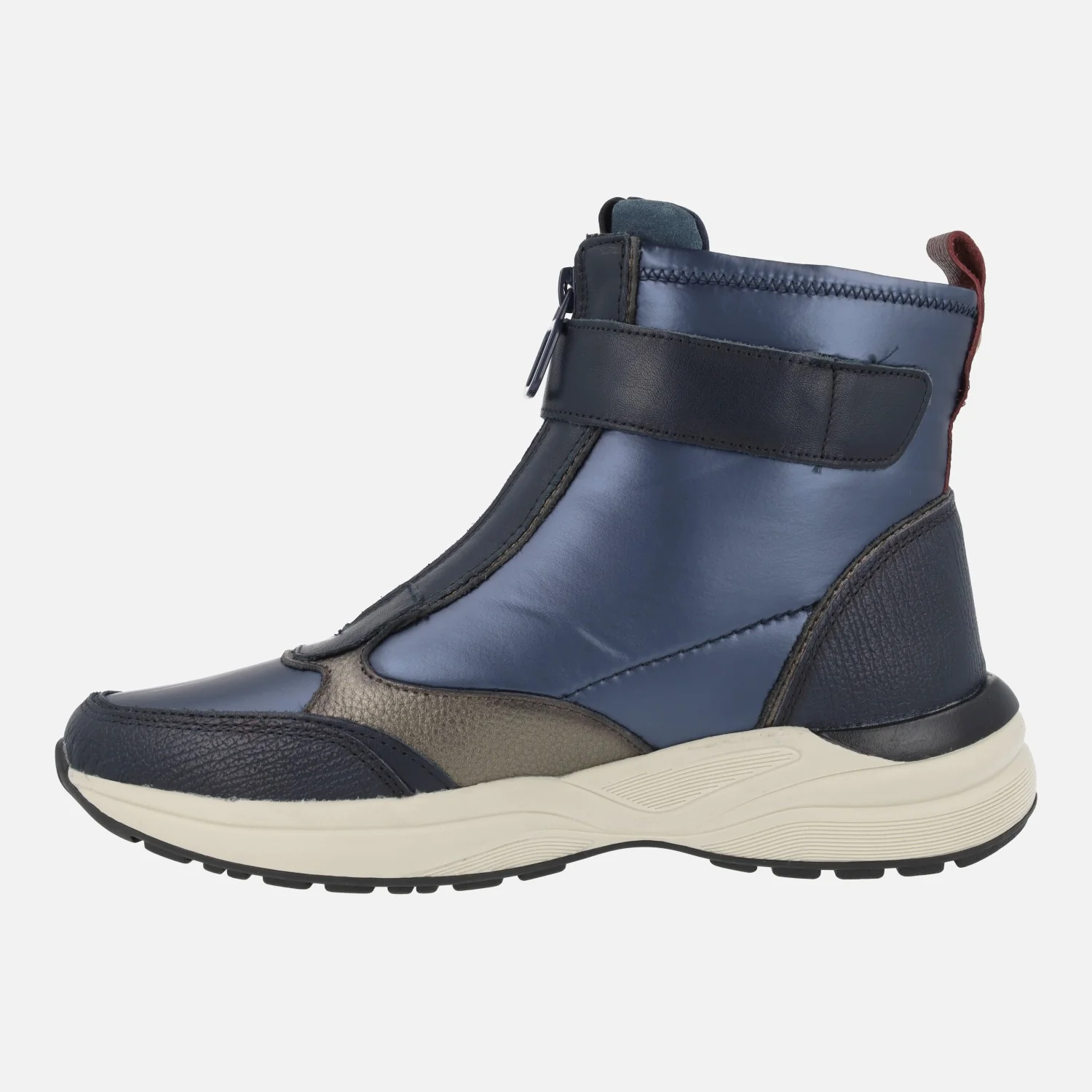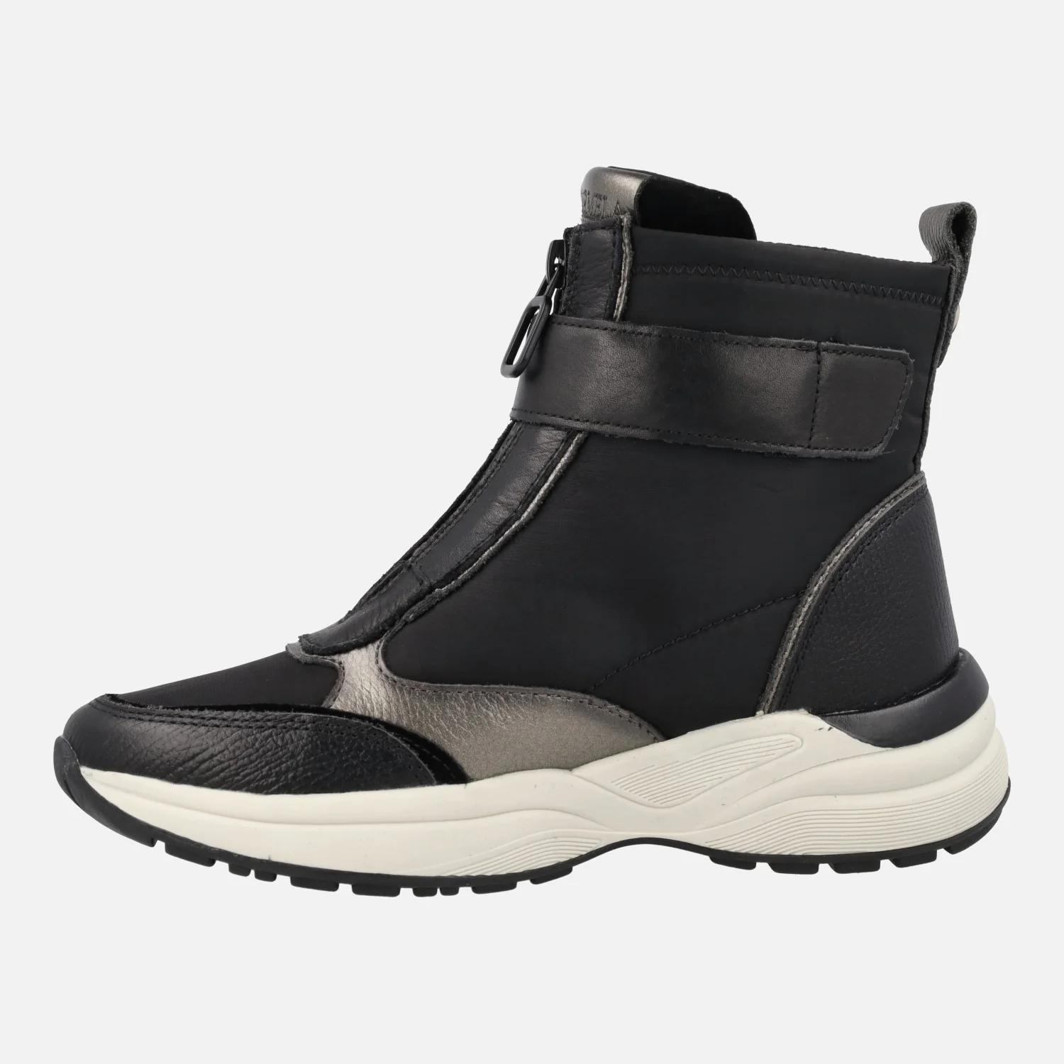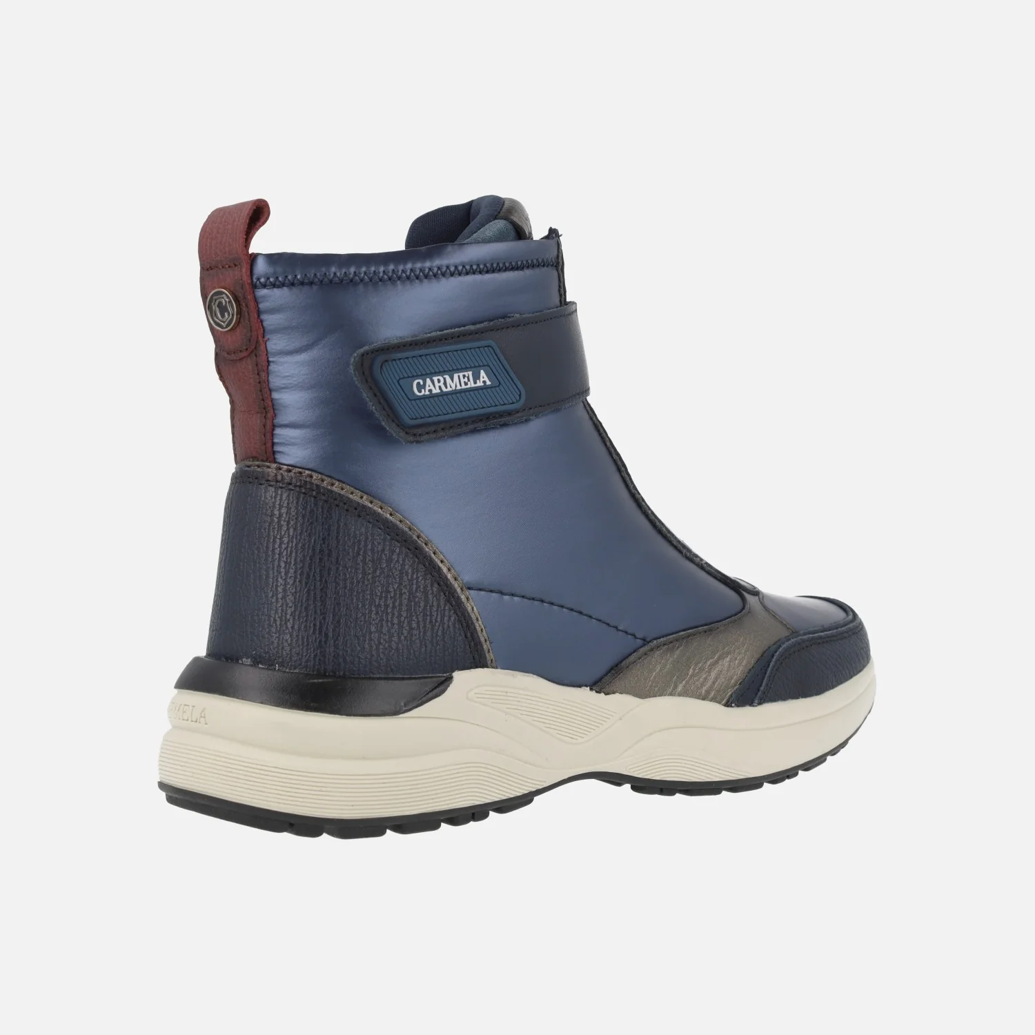 Botines de estilo deportivo de la marca Carmela shoes modelo 161962, disponibles en combinado negro, verde kaki y azul. Botines elaborados en combinado de piel y tejido, con cremallera frontal y tira con velcro. Caña de 12 cms de altura. Interior mixto de piel y tejido. Plantillas extraíbles. Piso de goma con 4 cms de altura trasera (2 cms parte delantera).