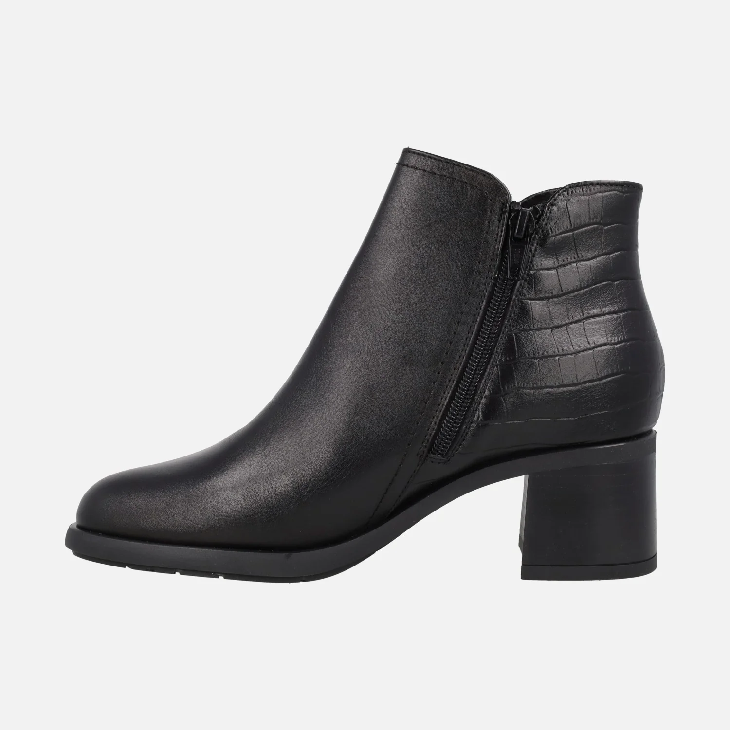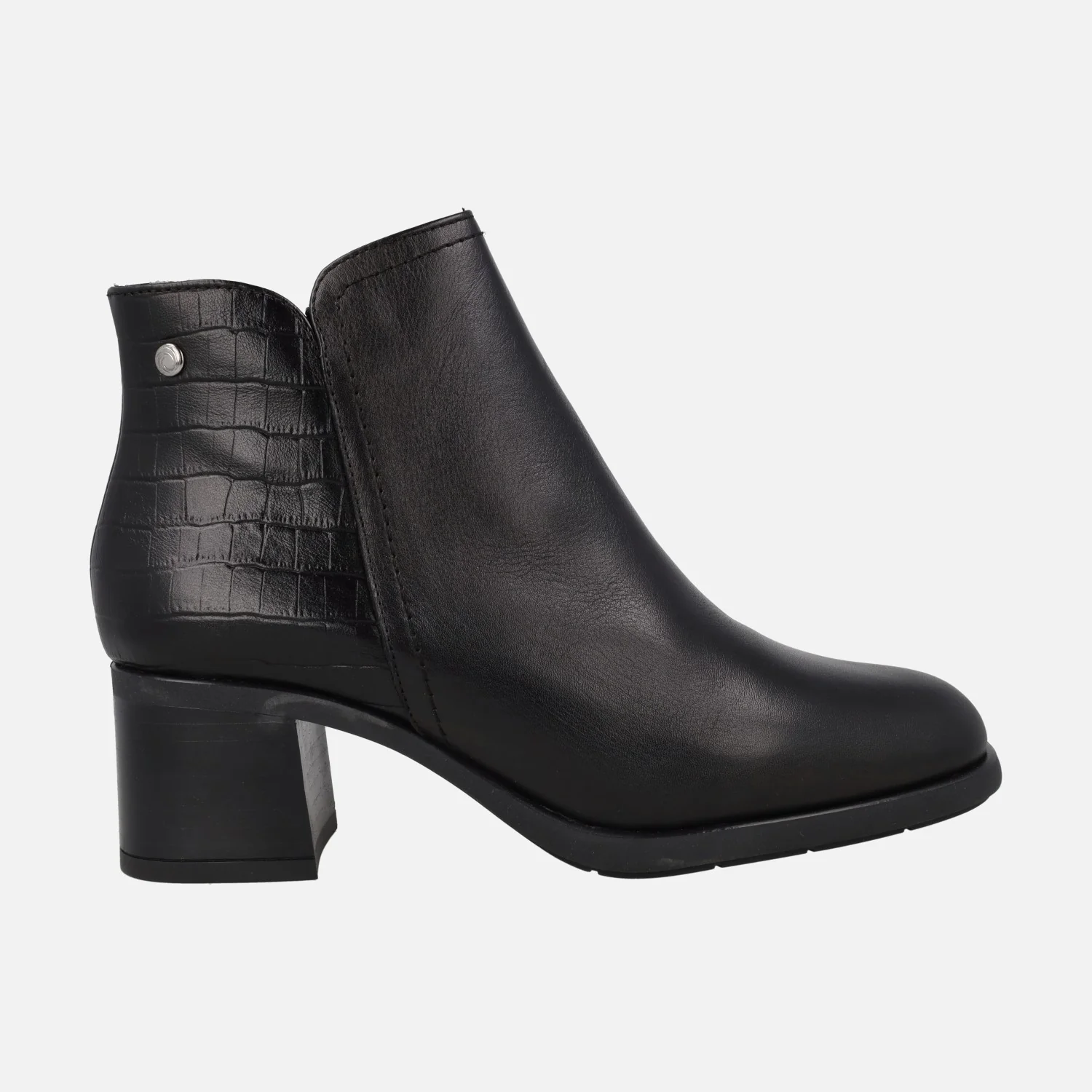Botines en tacón medio con trasera combinada en coco