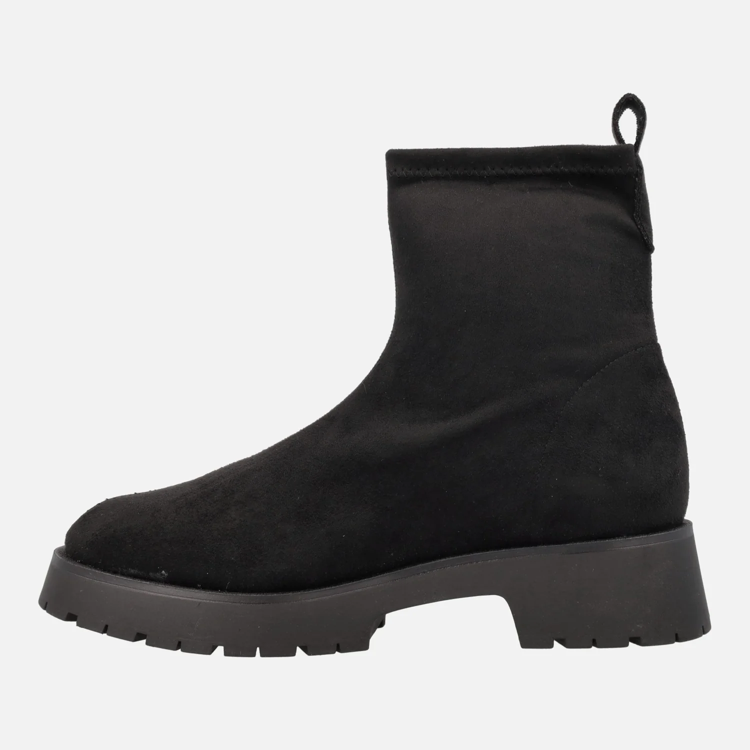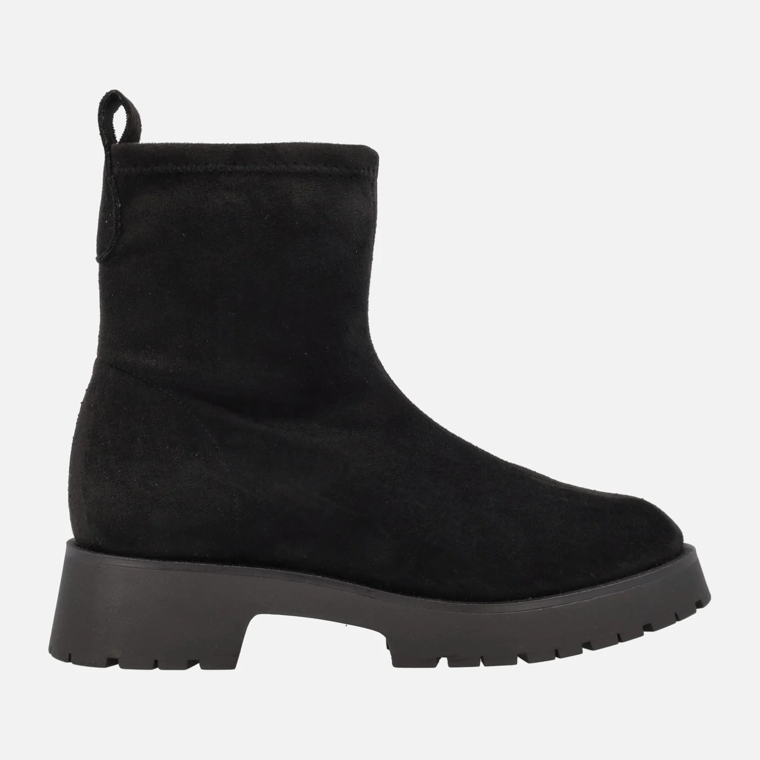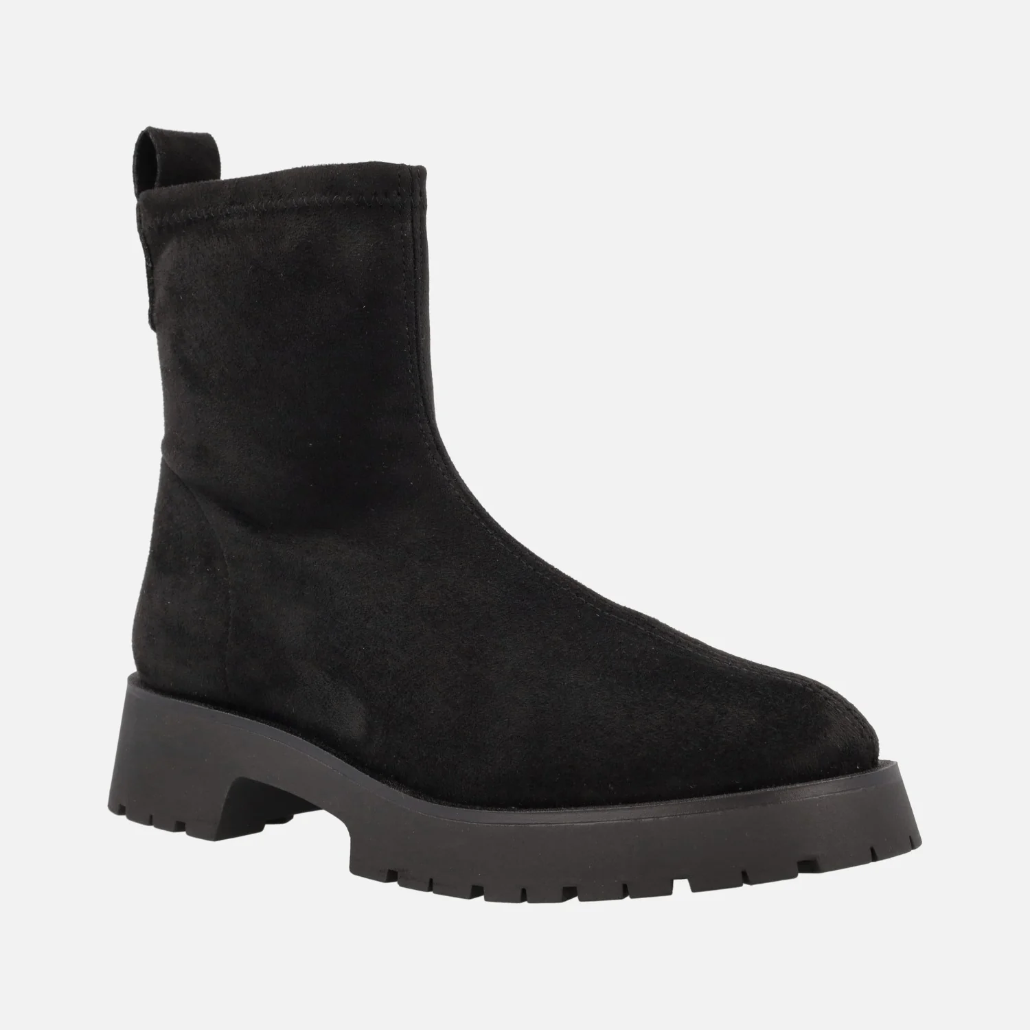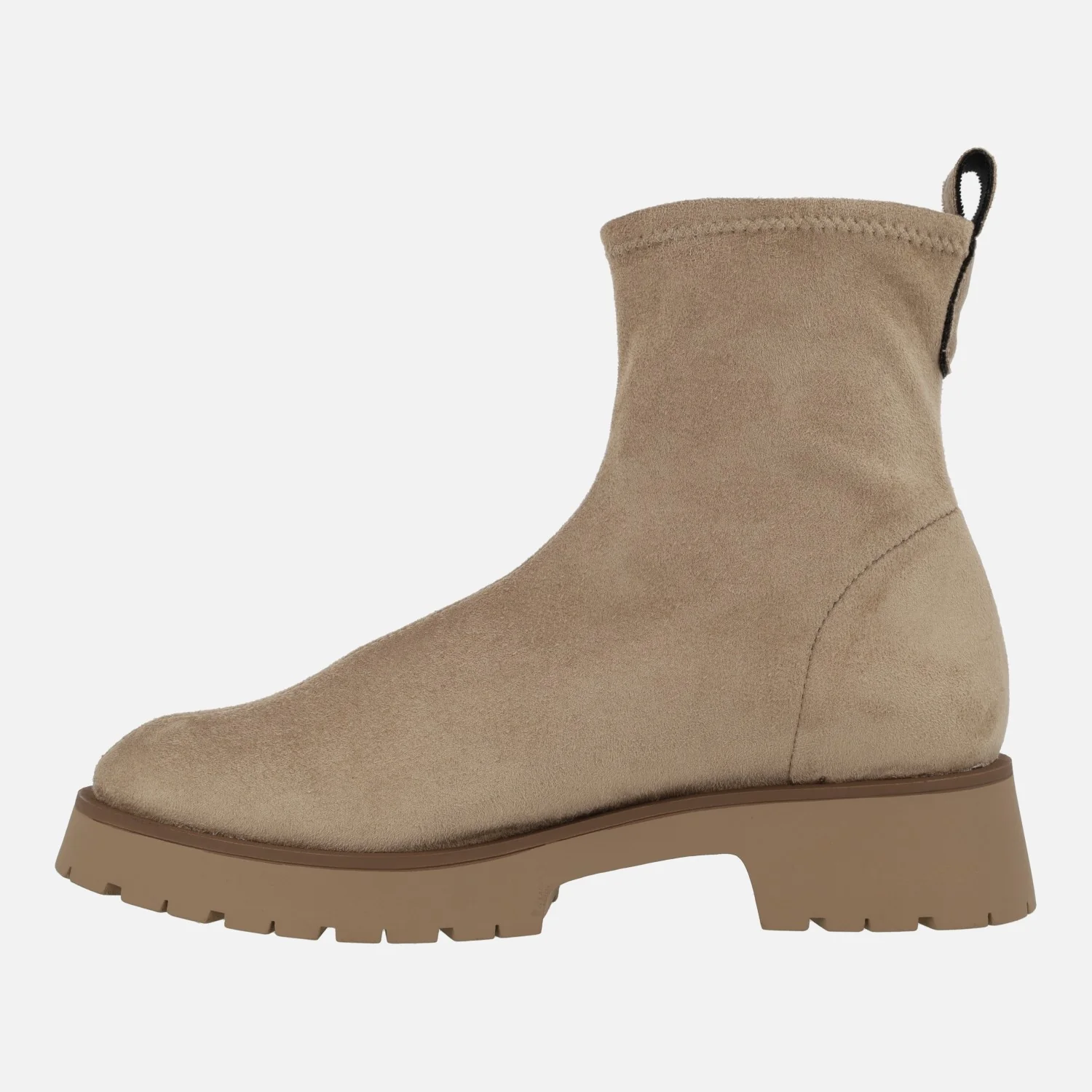 Preciosos botines para mujer de la marca Barminton, modelo 11001, disponibles en tejido acabado en textura ante en beige y negro. Exterior e interior textiles. Piso muy ligero, de goma, con 4 cms de altura de tacón. Caña de 15 cms de altura. Made in Spain.