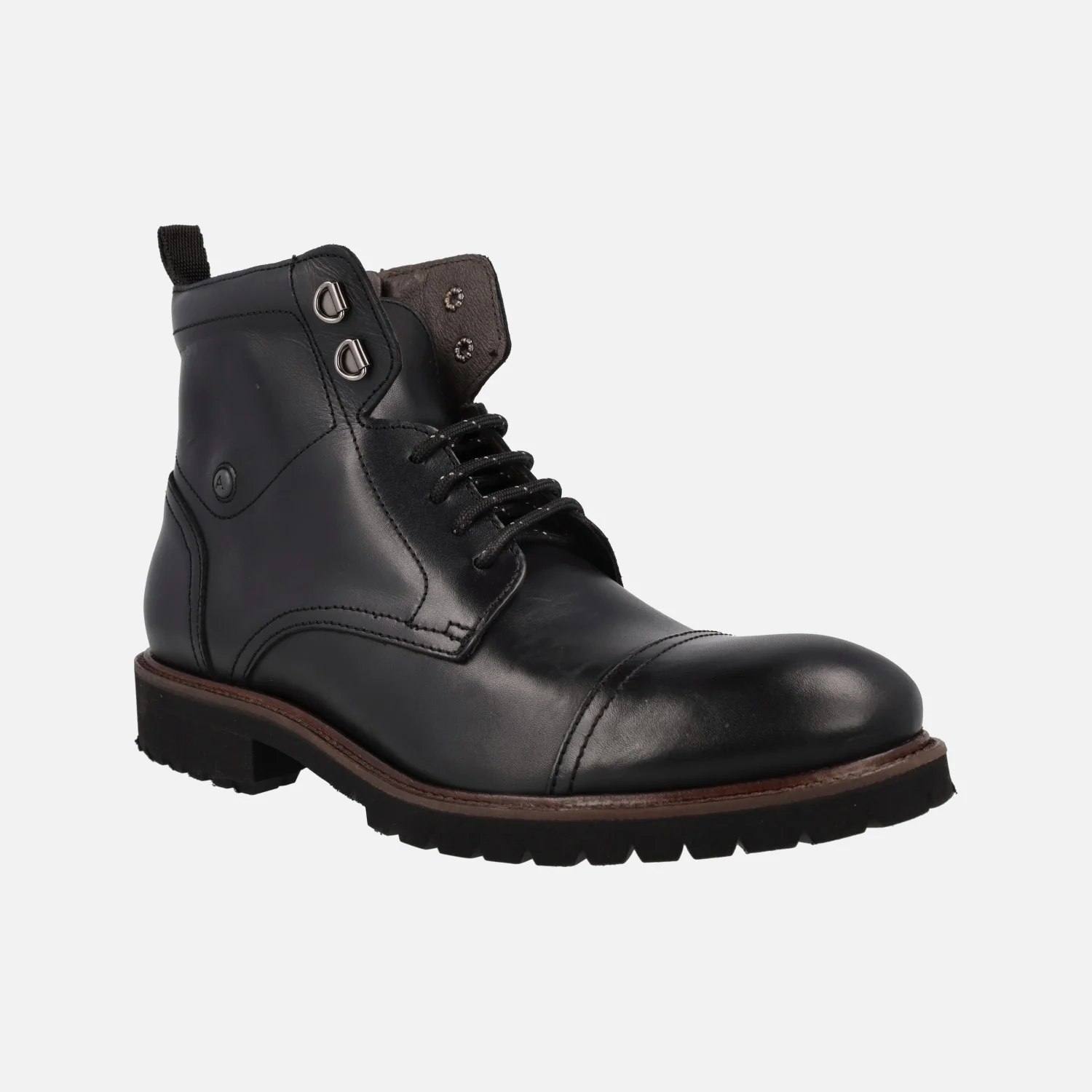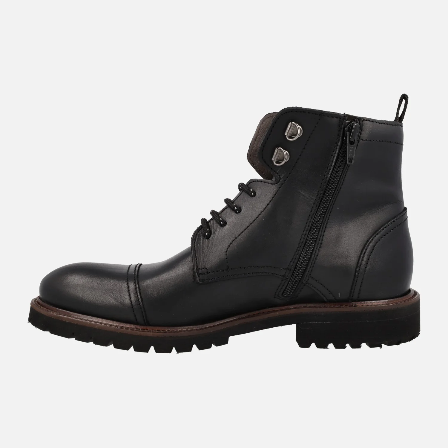 Botines negros de piel con cordones y cremallera para hombre
