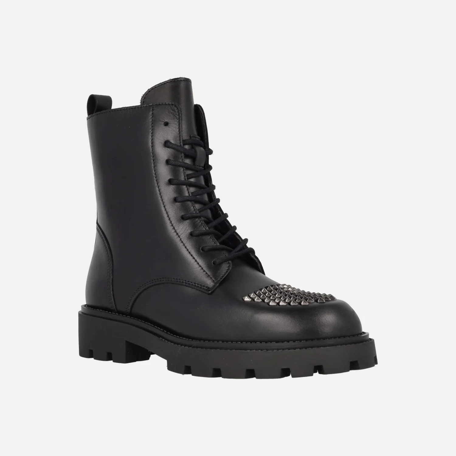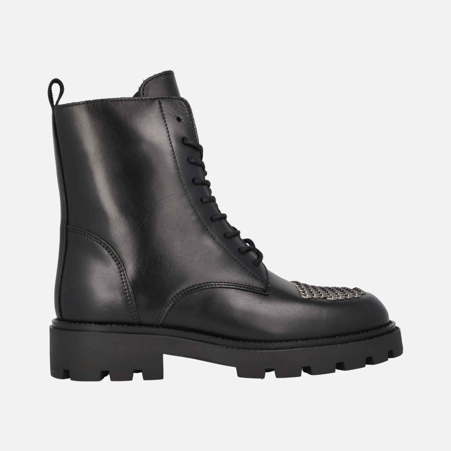 Botines negros de piel con cordones y tachas en la puntera Agnes