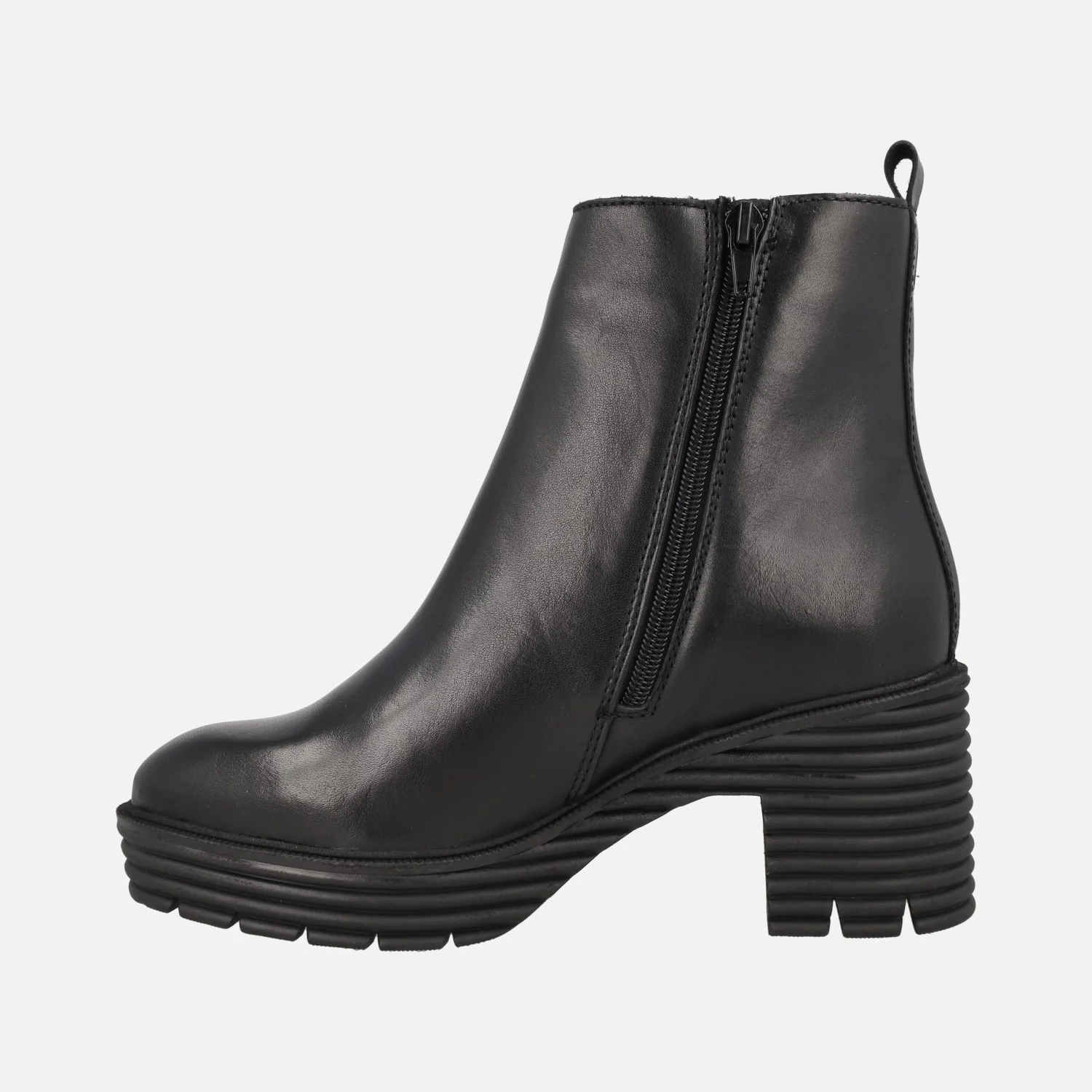 Botines de tacón de la marca Lol shoes modelo Malka negro. Botines elaborados en piel negra, con cierre de cremallera en el lado interior. Pequeño tirador trasero. Interiores en combinado de tejido y sintéticos. Tacones y plataforma sintéticos, con 7,5 cm de tacón y 2,5 cm de plataforma delantera. Caña de 13 cm de altura.