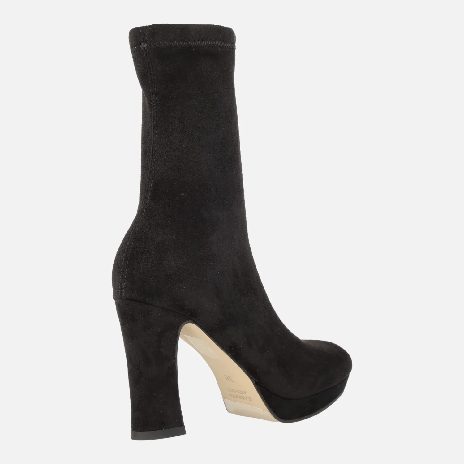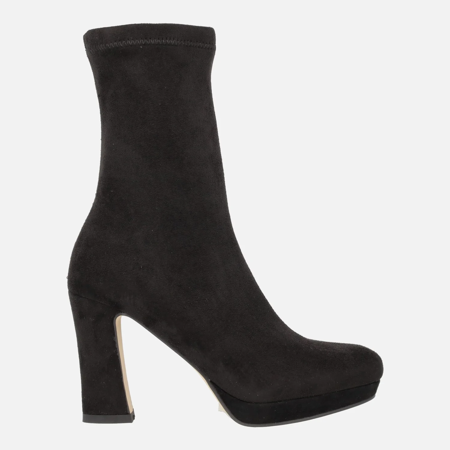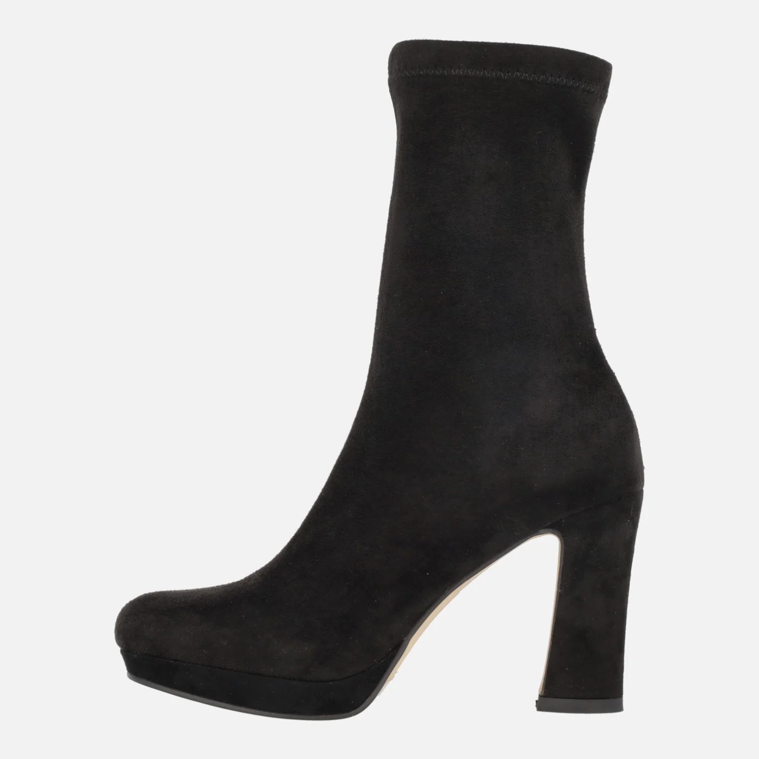 Botines en tejido elástico negro modelo 25575 de la marca Pedro Miralles. Botines de tacón alto y plataforma, elaborados en tejido con textura de ante. Planta de piel. Tacones altos forrados, de 9,5 cms de altura. Plataforma delantera de 2 cms de altura. Caña de 20 cms. Made in Spain.