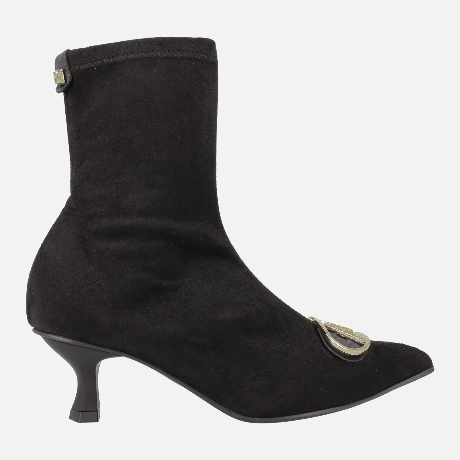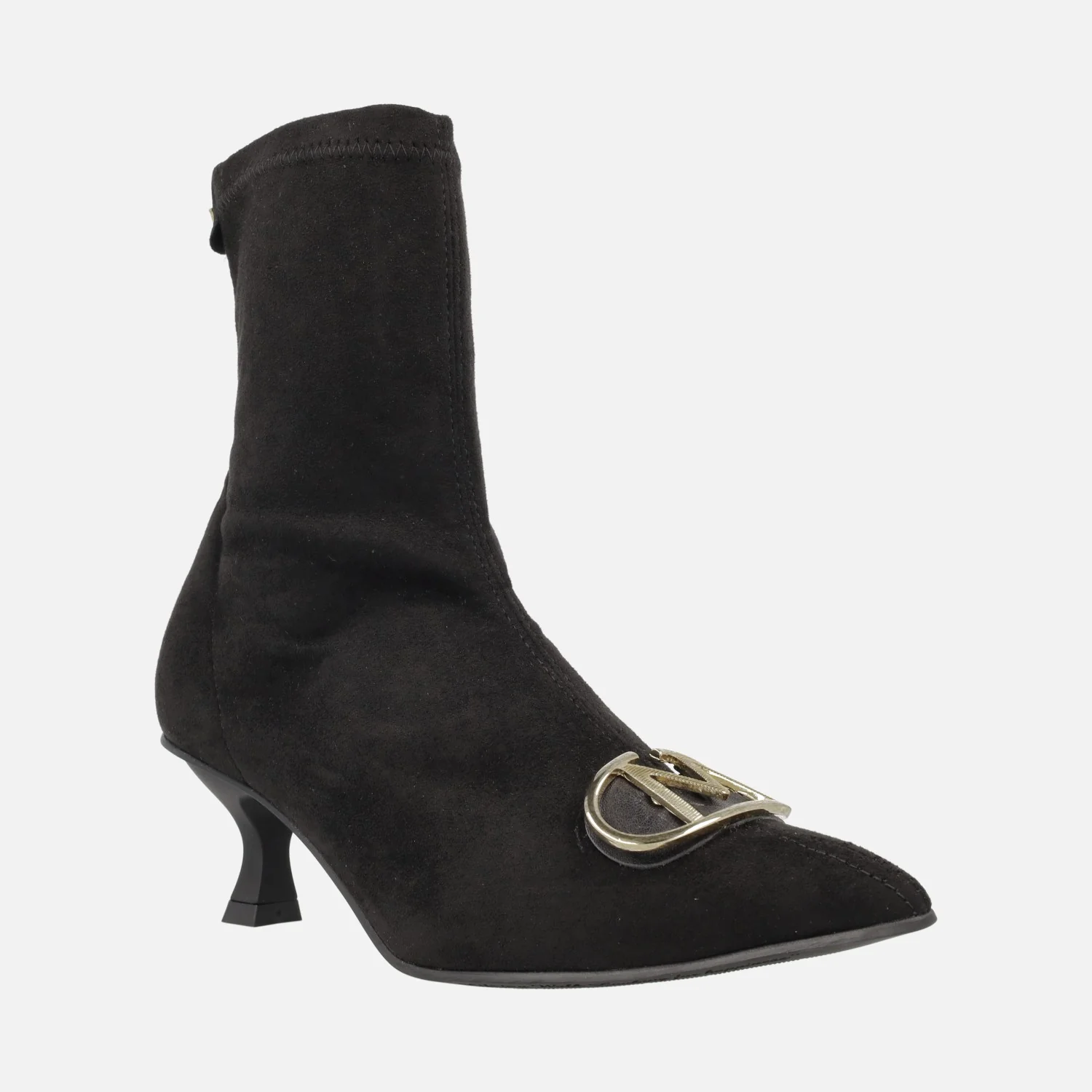 Botines negros en tejido elástico efecto ante con adorno metálico