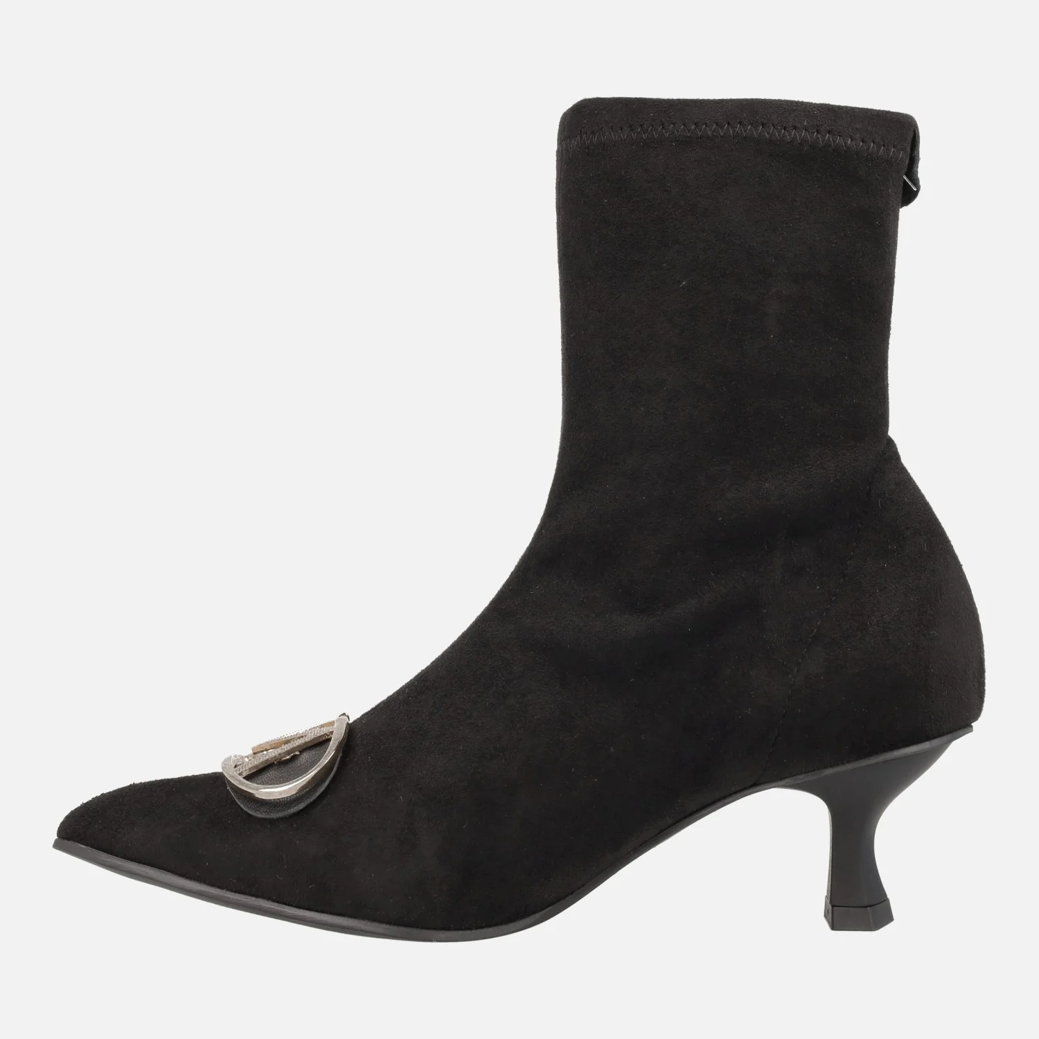 Sé el primero en valorar “Botines negros en tejido elástico efecto ante con adorno metálico”