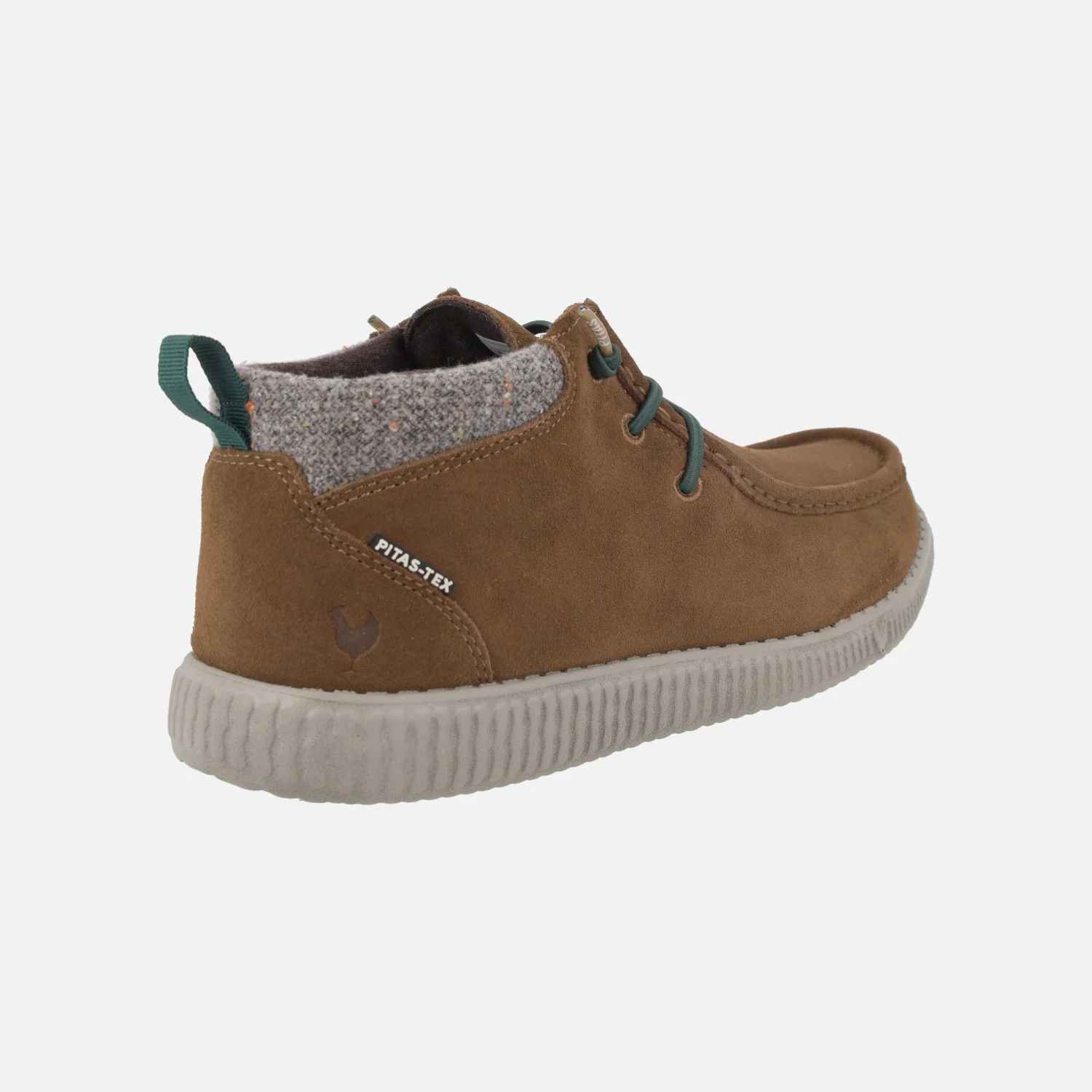 Botines para hombre modelo WP150 BOB de la marca Walk in Pitas. Botines elaborados en piel serraje hidrofugado, con collarín textil. Color camel o Tórtola (entre taupe y gris). Interior textil con membrana interior impermeable PITAS TEX para una gran resistencia a la lluvia además de darle un extra de calidez. Plantillas extraíbles forradas de piel. Piso de EVA Ultralight.