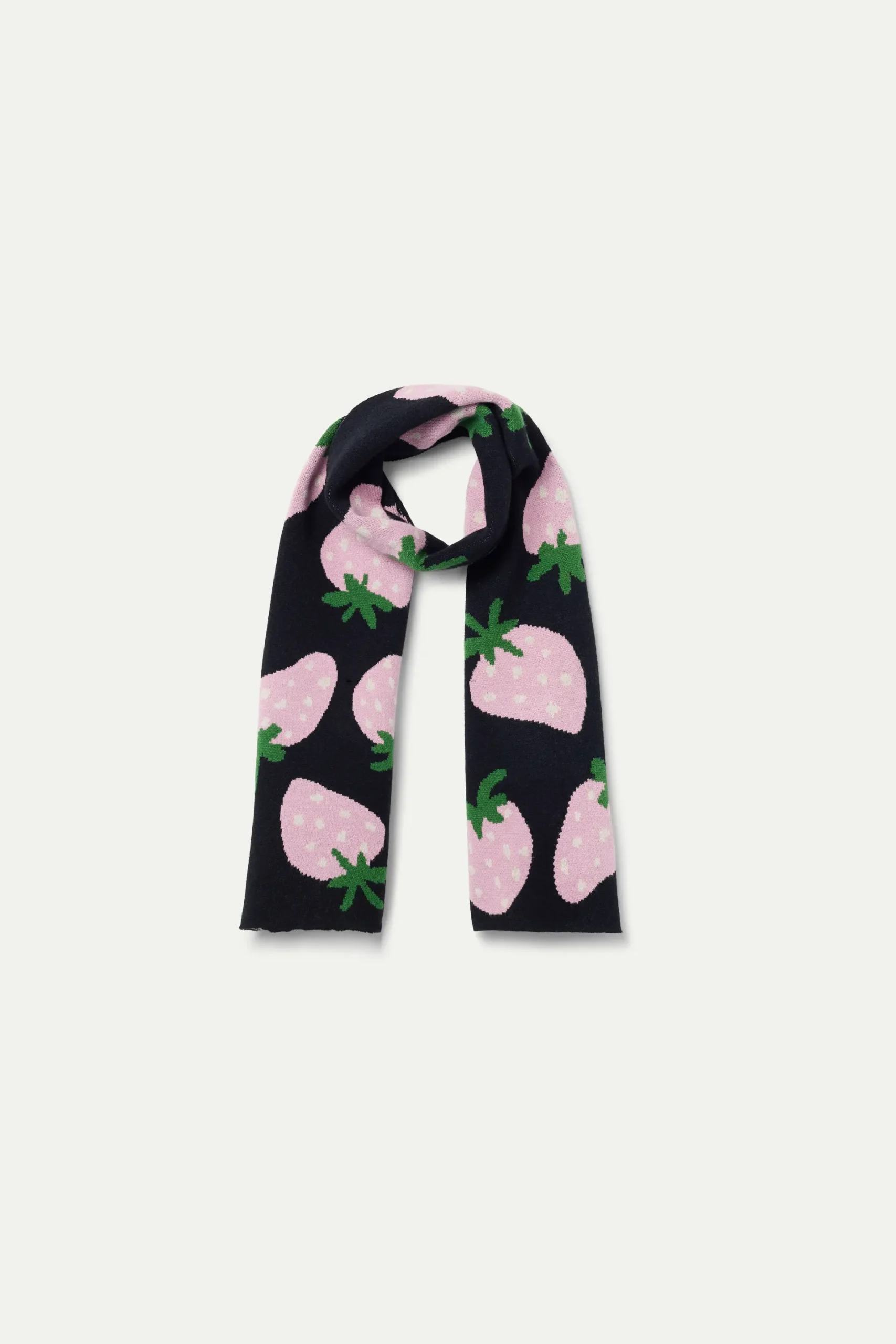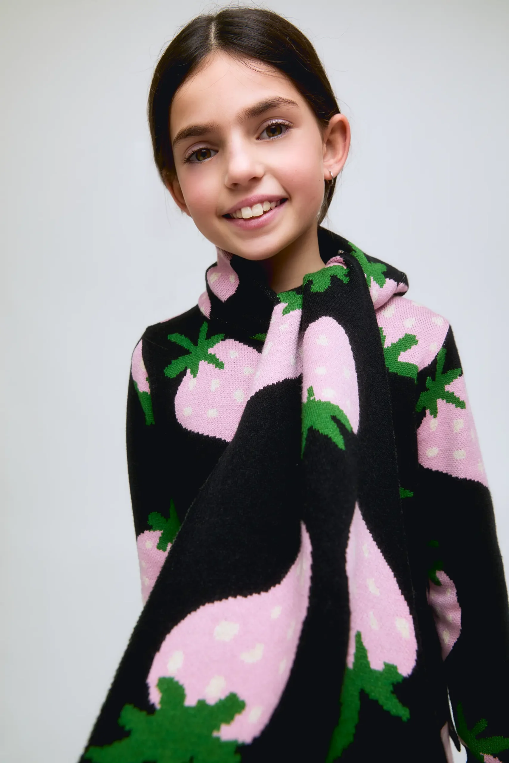 Bufanda de niña de punto de color azul marino con estampado Morango.