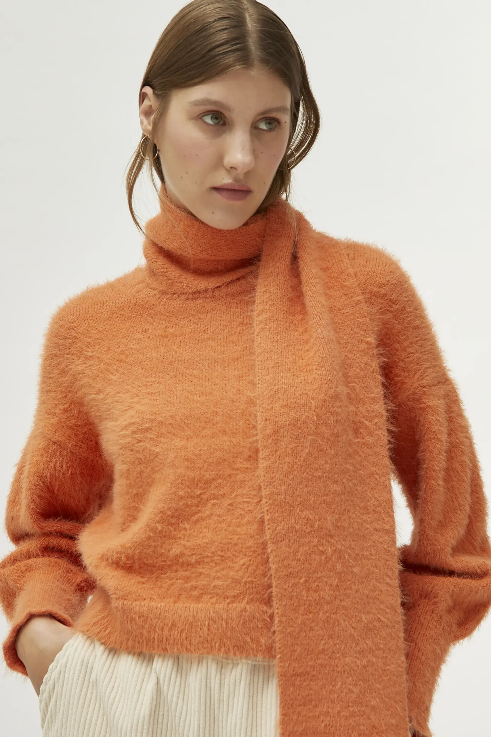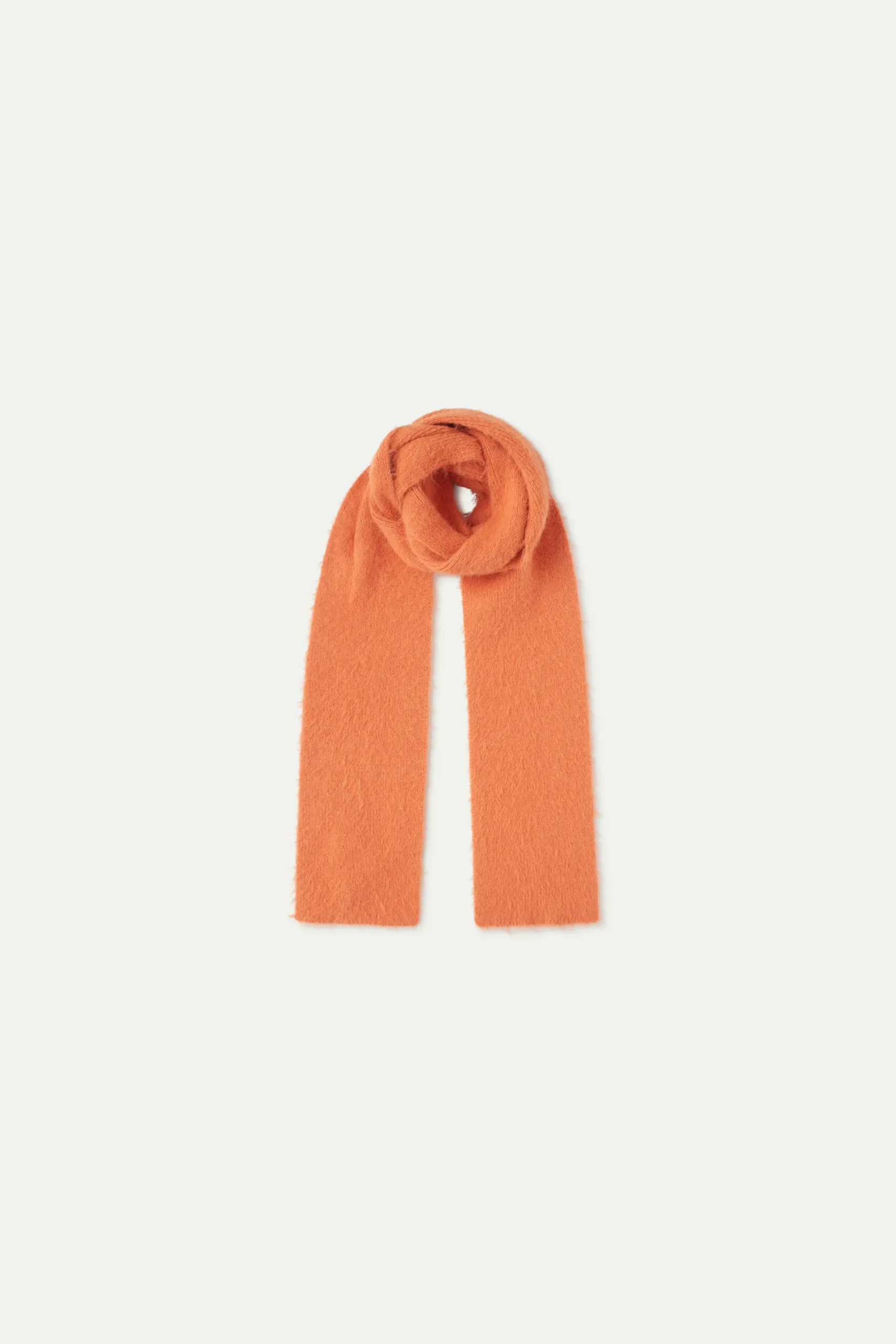 Bufanda en punto efecto pelo de color naranja.
