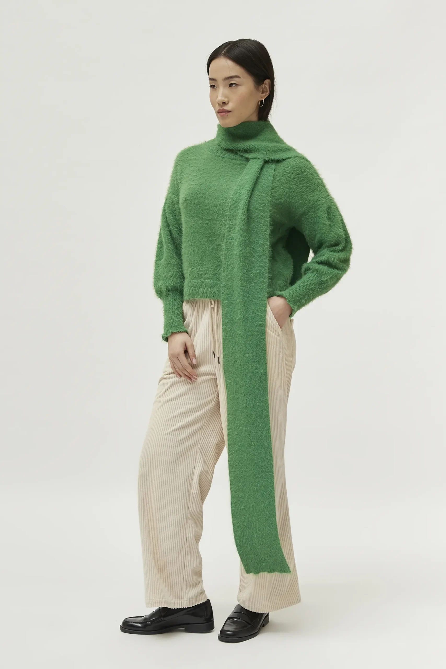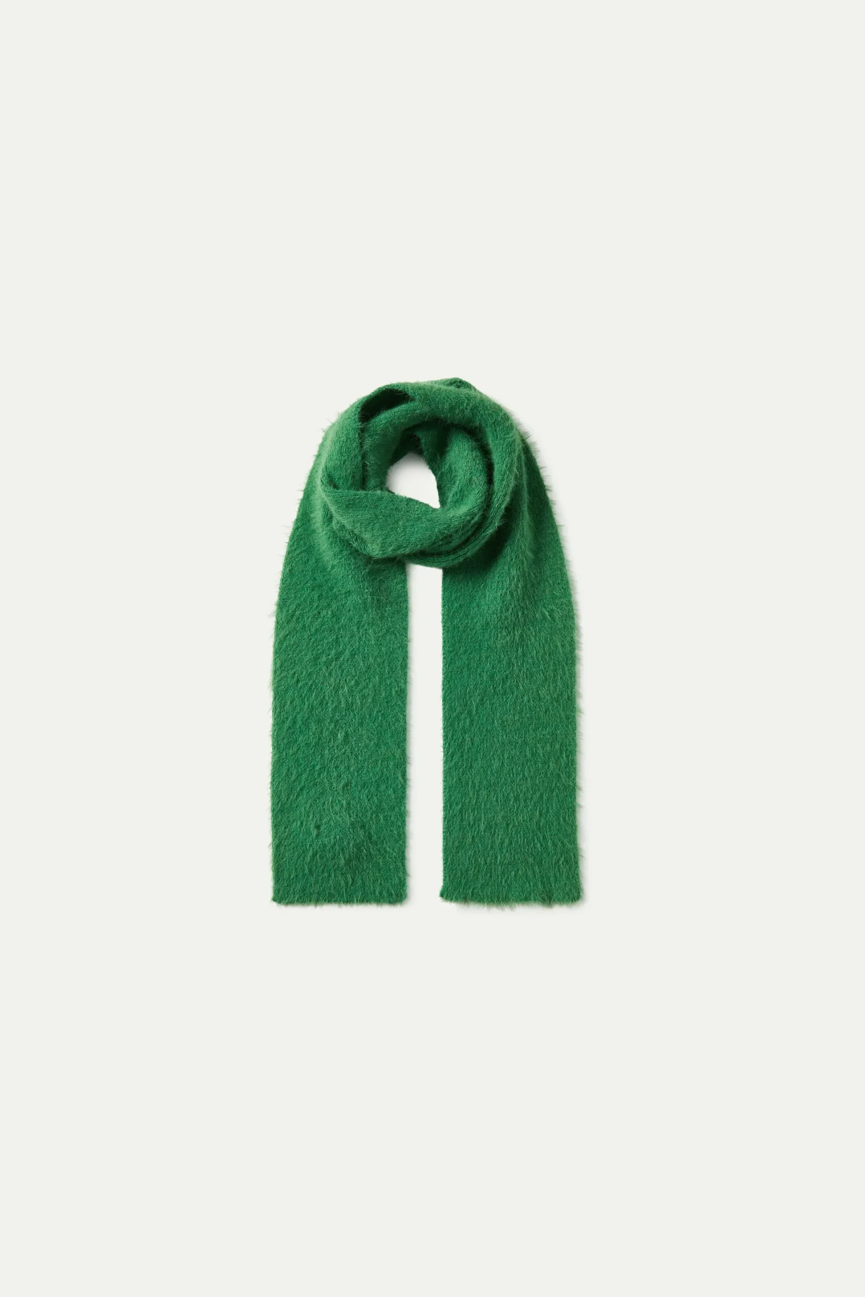 Bufanda en punto efecto pelo de color verde.