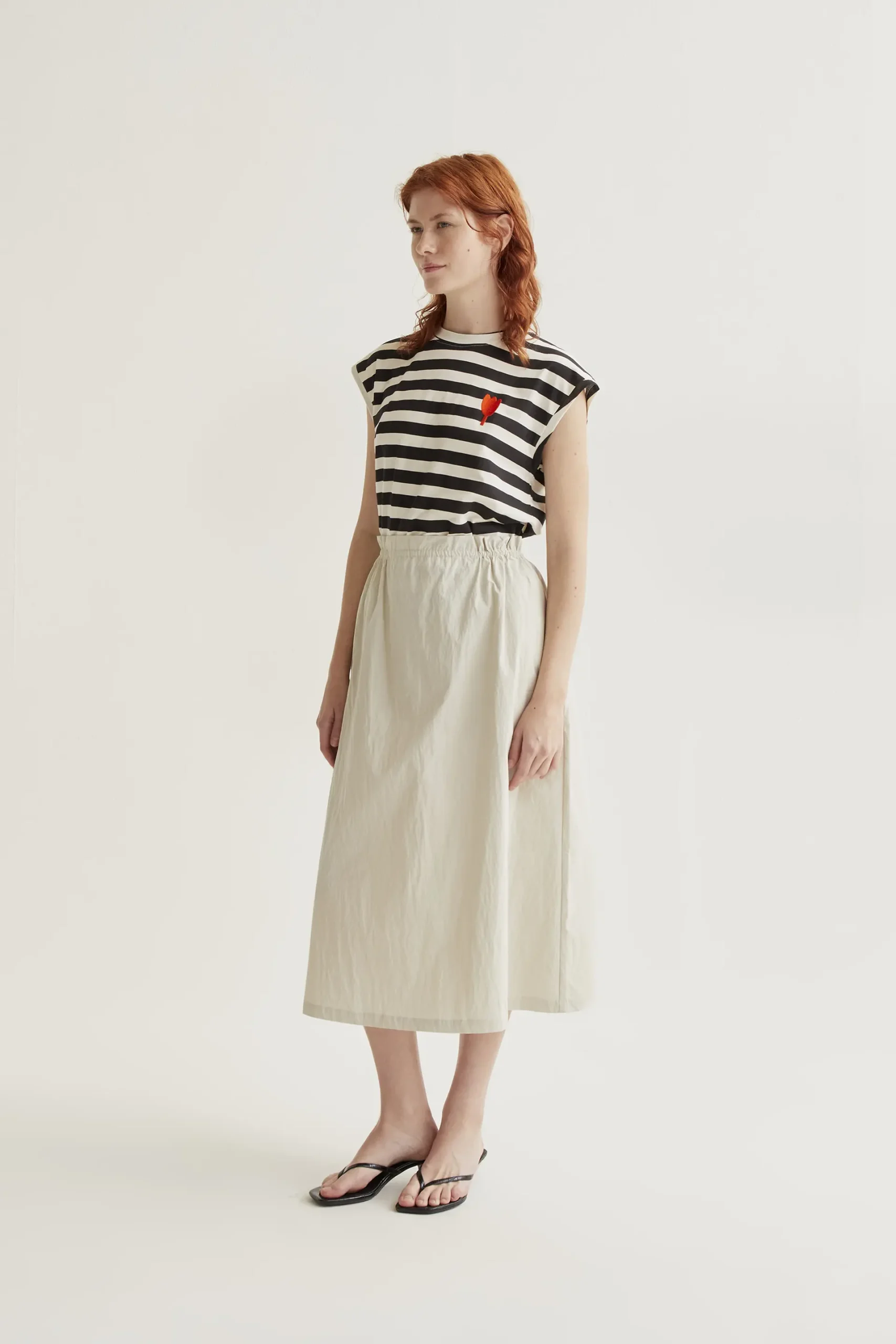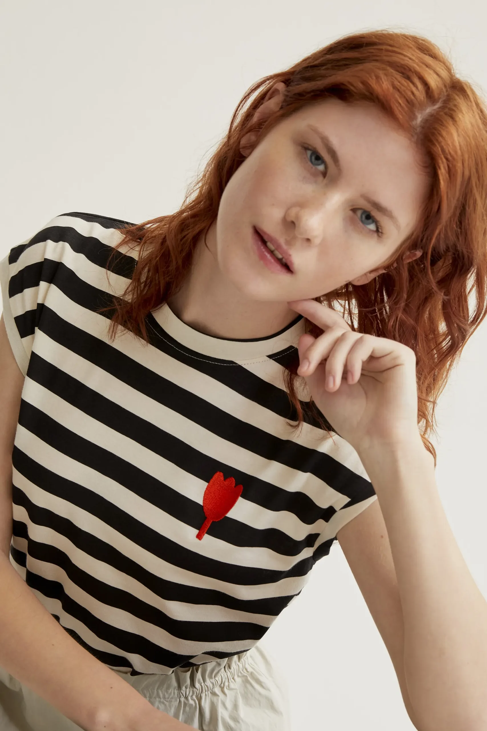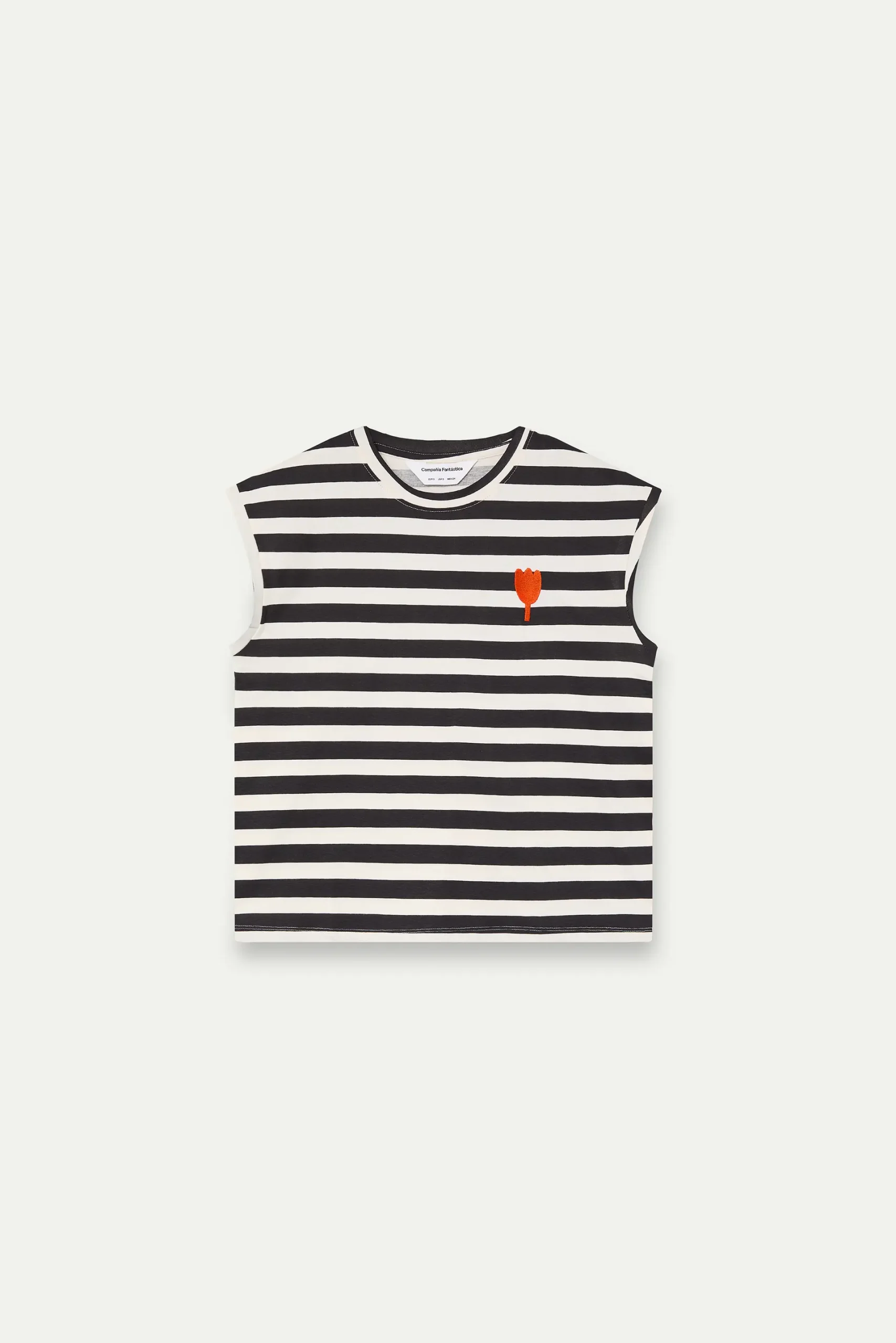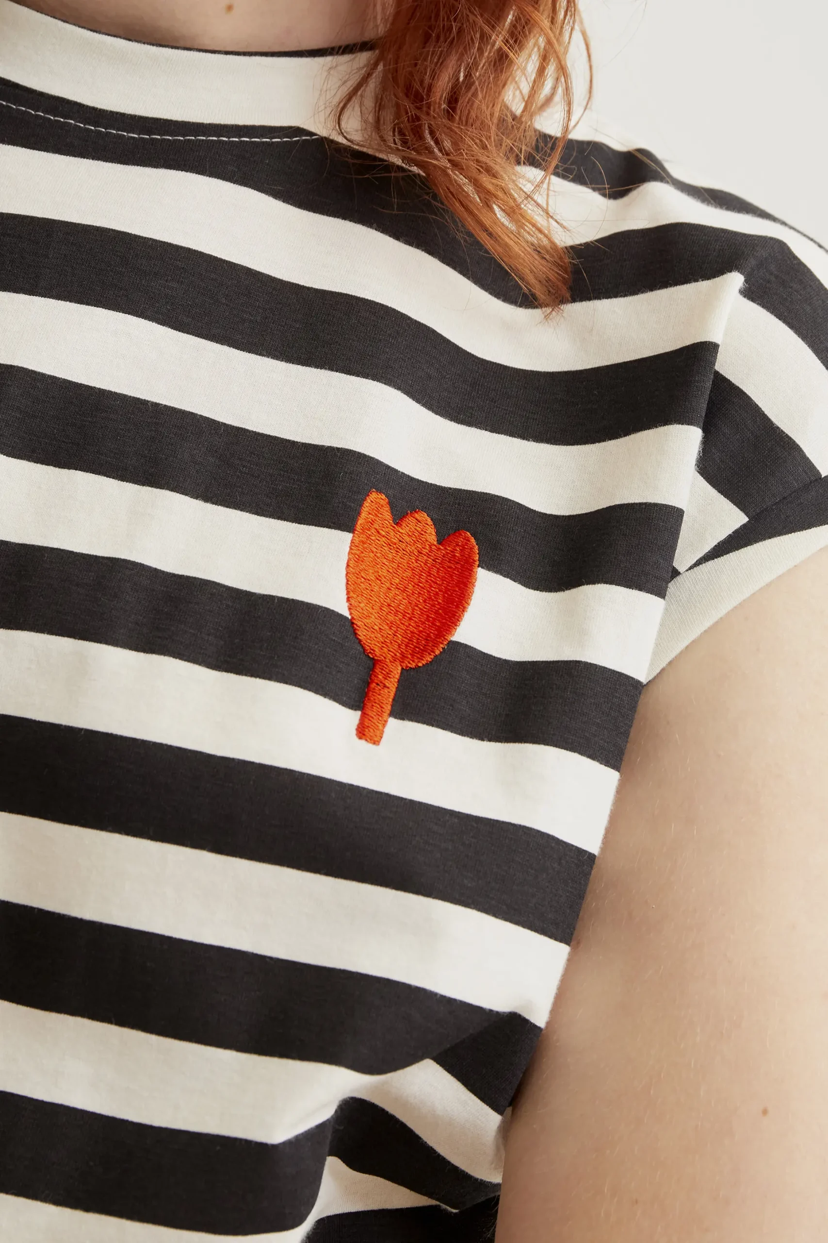 Sé el primero en valorar “Camiseta con estampado de rayas negras con bordado de tulipán”