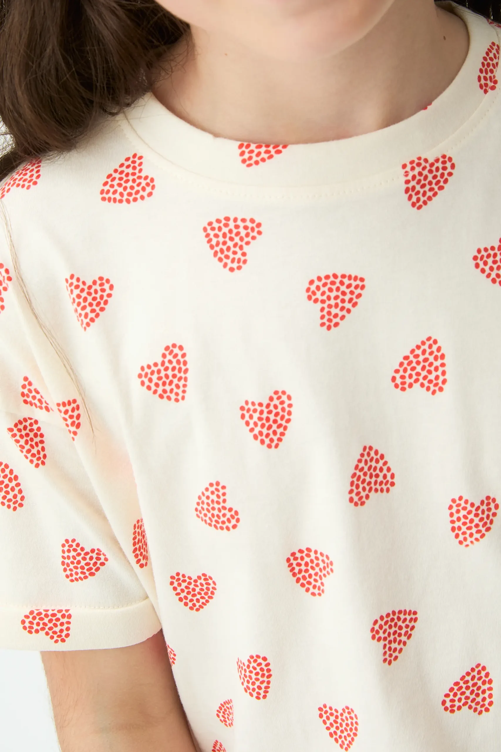 Camiseta de niña con tejido 100% algodón con estampado ladybug de color rojo.Cuello redondo y manga corta. La modelo mide 135 cm y lleva la talla 8-9 años.