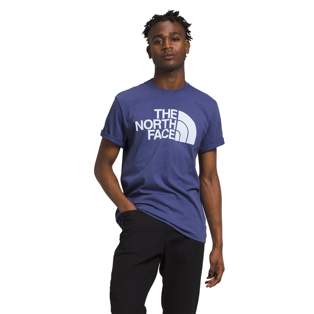Nuestra camiseta Half Dome de ajuste estándar fue pensada para ser desmontada y reciclada por nosotros al final de su vida útil en materias primas para una segunda generación de productos. Su tejido sólido está fabricado con al menos un 75% de algodón estadounidense procedente de agricultores que utilizan prácticas agrícolas que ayudan a generar carbono en el suelo y tejido de brezo fabricado con al menos un 50%. El logotipo fue serigrafiado a base de agua y sin intervención manual en el pecho.