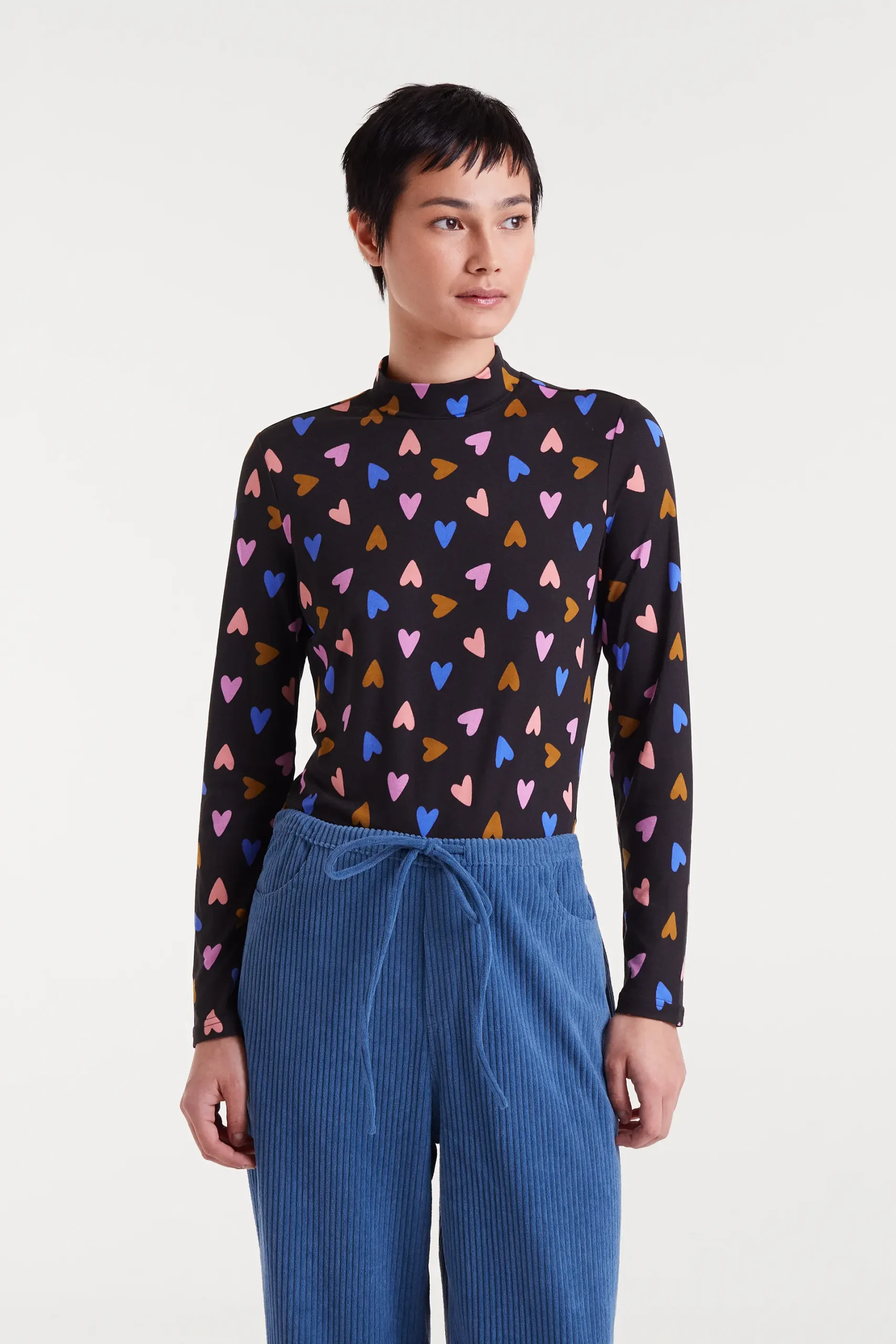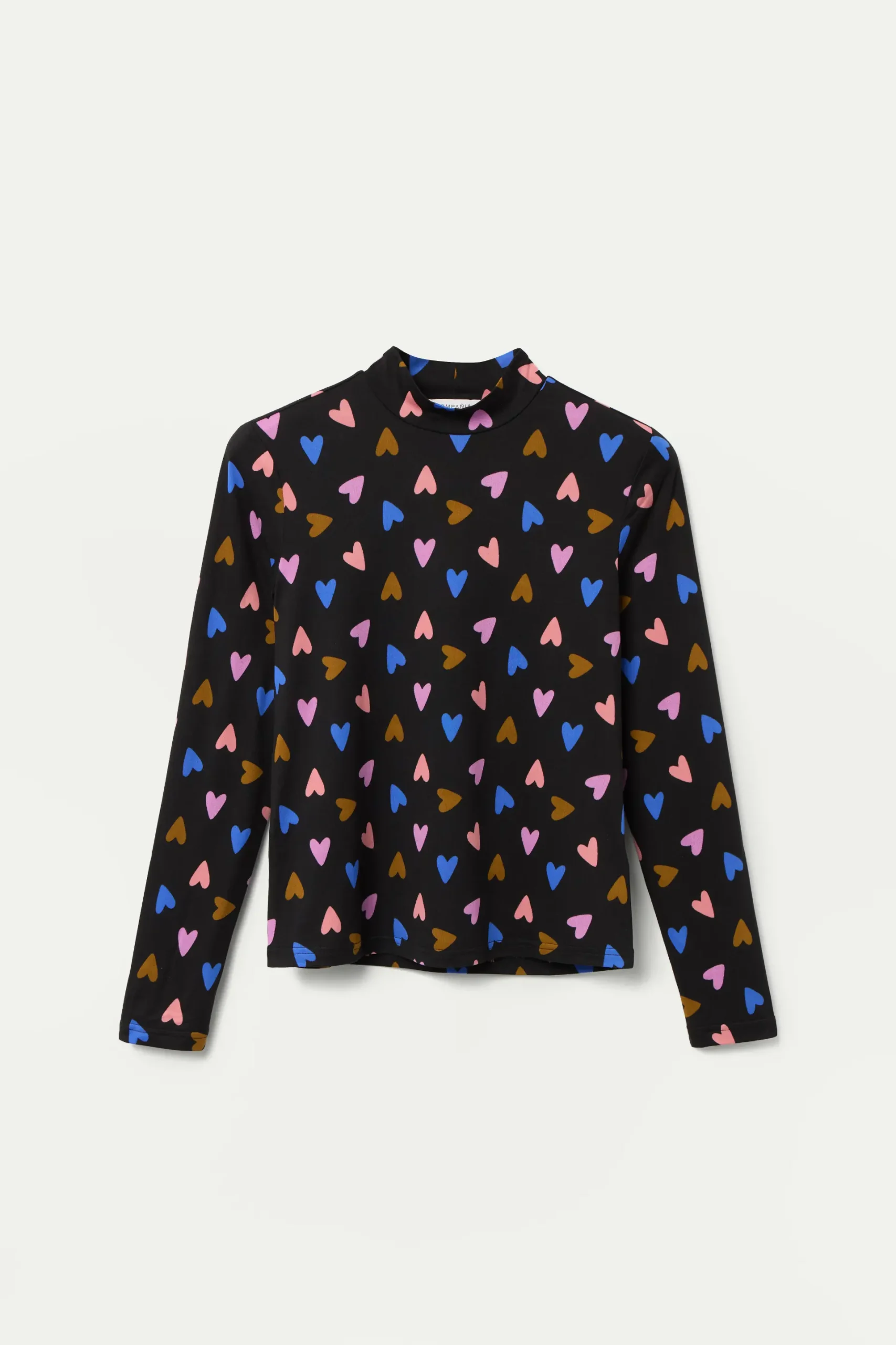 Camiseta tejido estampado Potpourri. Cuello mock y manga larga. Hombro ligeramente caído. La modelo mide 177 cm y lleva la talla S.