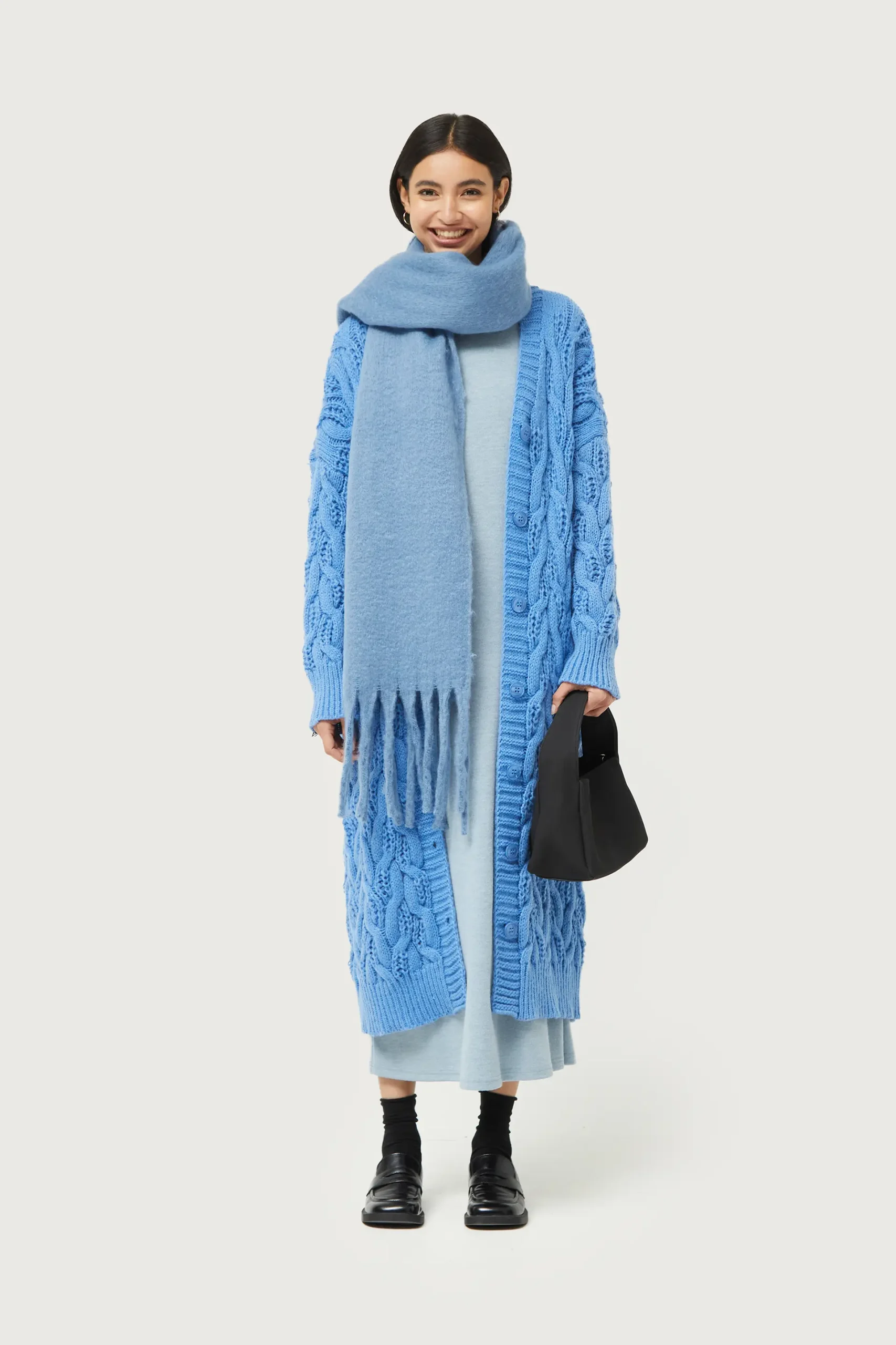 Sé el primero en valorar “Cárdigan largo de punto trenzado azul”