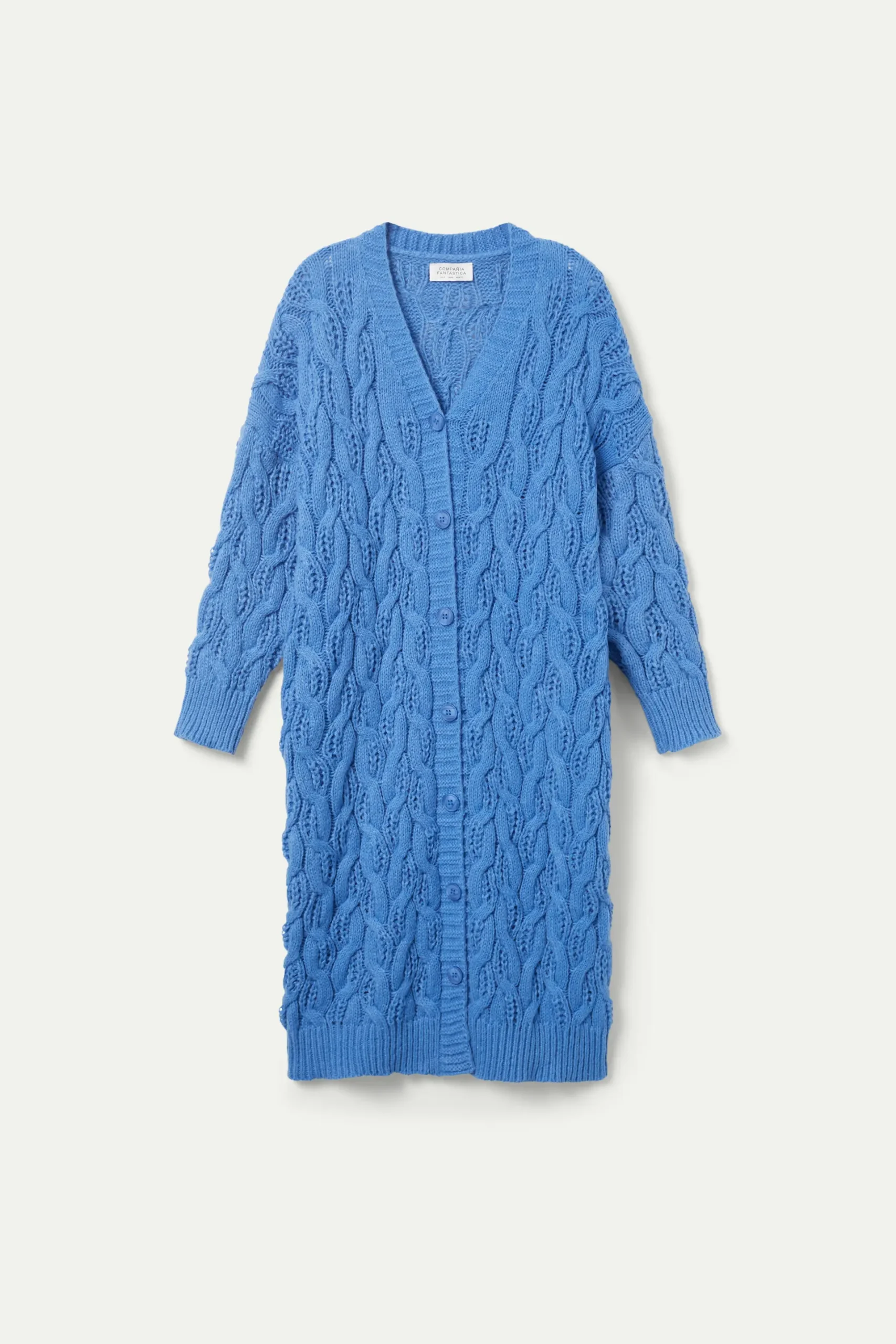 Cárdigan largo de punto trenzado azul