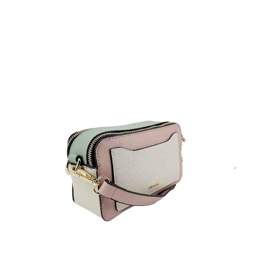 Cartera crossbody Libby para mujer color blush, elaborada en material sintético. De tamaño práctico (21.5×8×19 cm), ideal para quienes buscan un toque femenino y sutil.