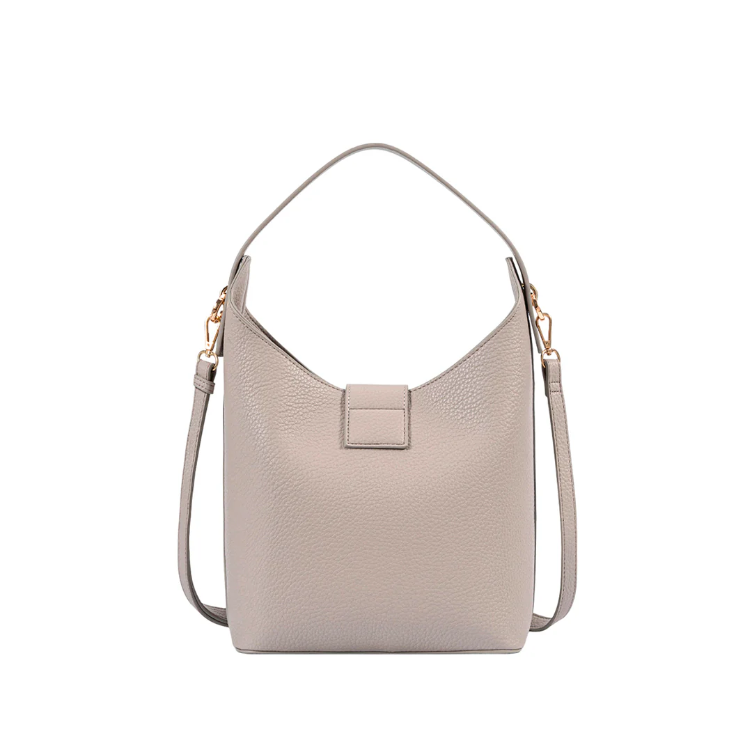 Cartera hobo Serra color gris, fabricada en material sintético. De diseño minimalista (22×12×28 cm), combina practicidad y estética moderna. Ideal para el uso diario.