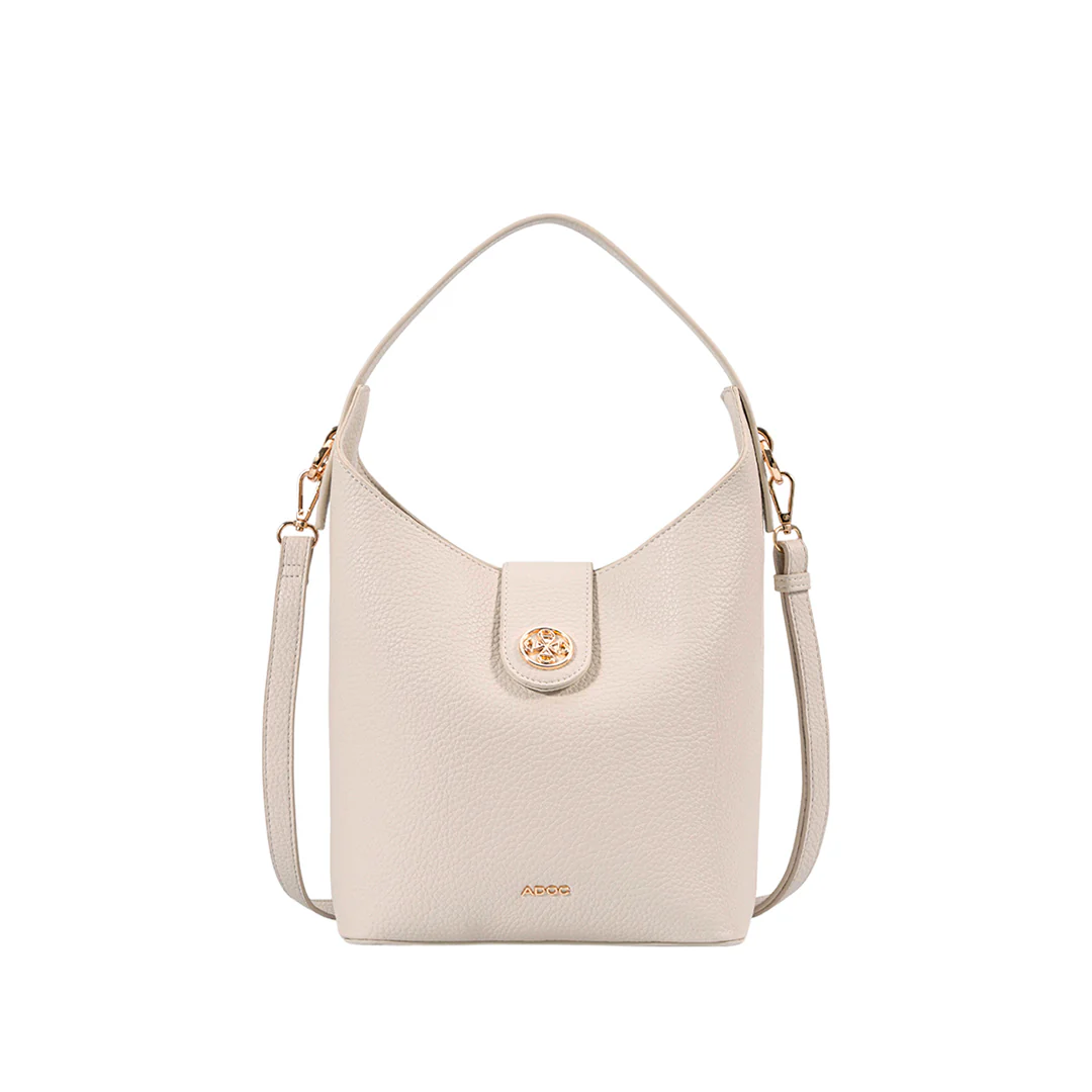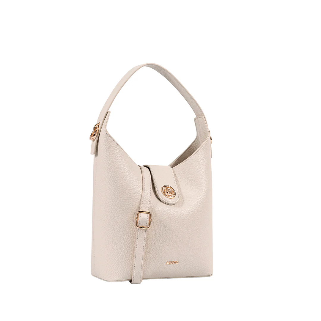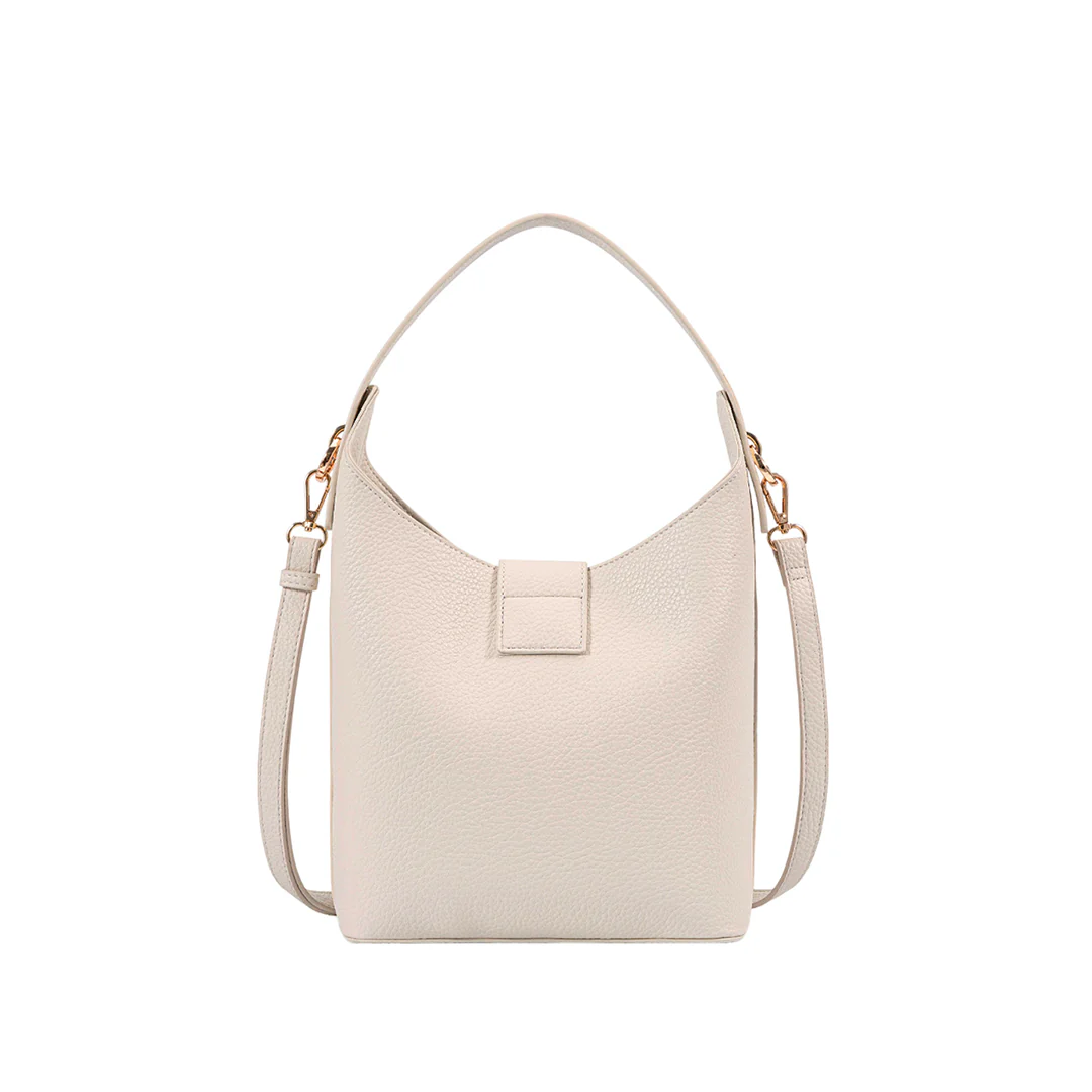 Cartera hobo Serra en color hueso, confeccionada en material sintético. Su silueta ligera (22×12×28 cm) y diseño moderno la convierten en una pieza clave para un estilo relajado pero elegante.