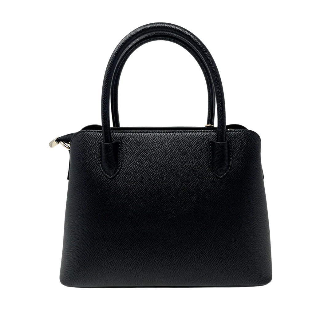 La cartera satchel Mae para mujer en color negro combina un diseño moderno con funcionalidad, ideal para quienes buscan un accesorio que facilite la organización y el transporte seguro de sus pertenencias.