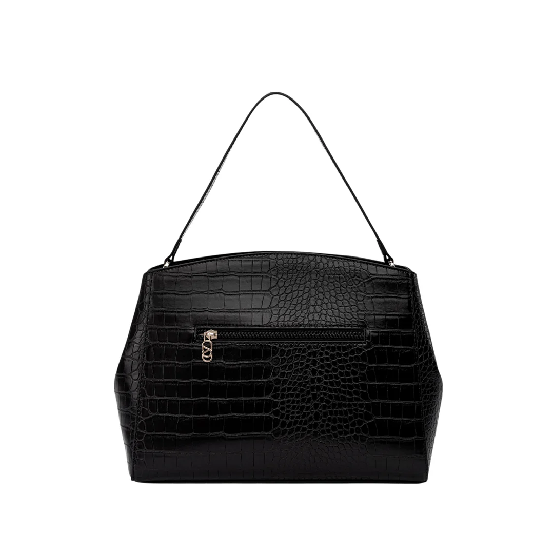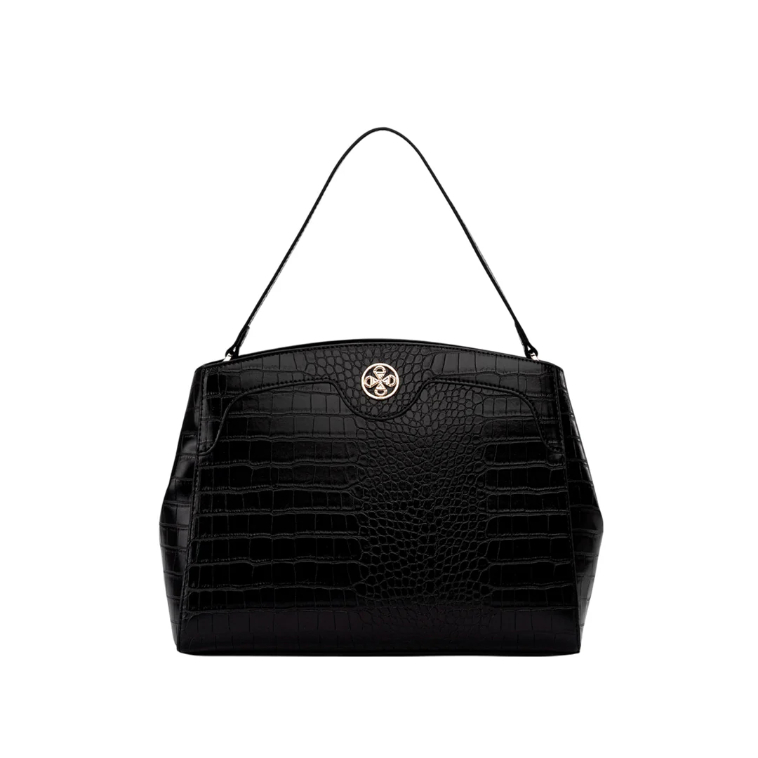 Cartera satchel Selva color negro, en material sintético con medidas 24×10×18 cm. Compacta y moderna, ideal para quienes prefieren un estilo elegante sin exceso de volumen.