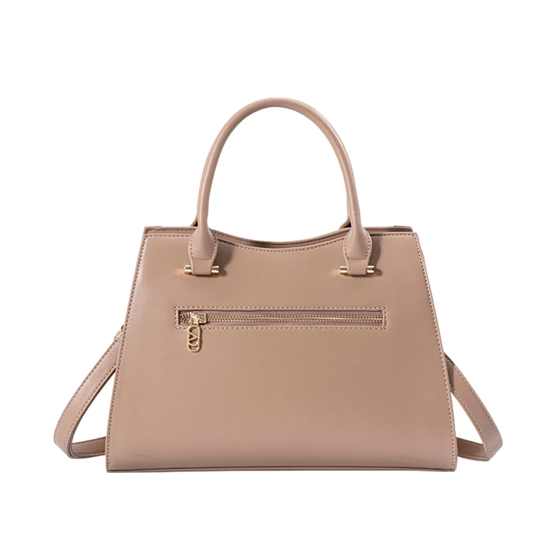 Cartera satchel Zilia color arena, elaborada en material sintético. Su estructura firme (31×13×22 cm) y diseño sobrio la convierten en un accesorio imprescindible para el día a día.