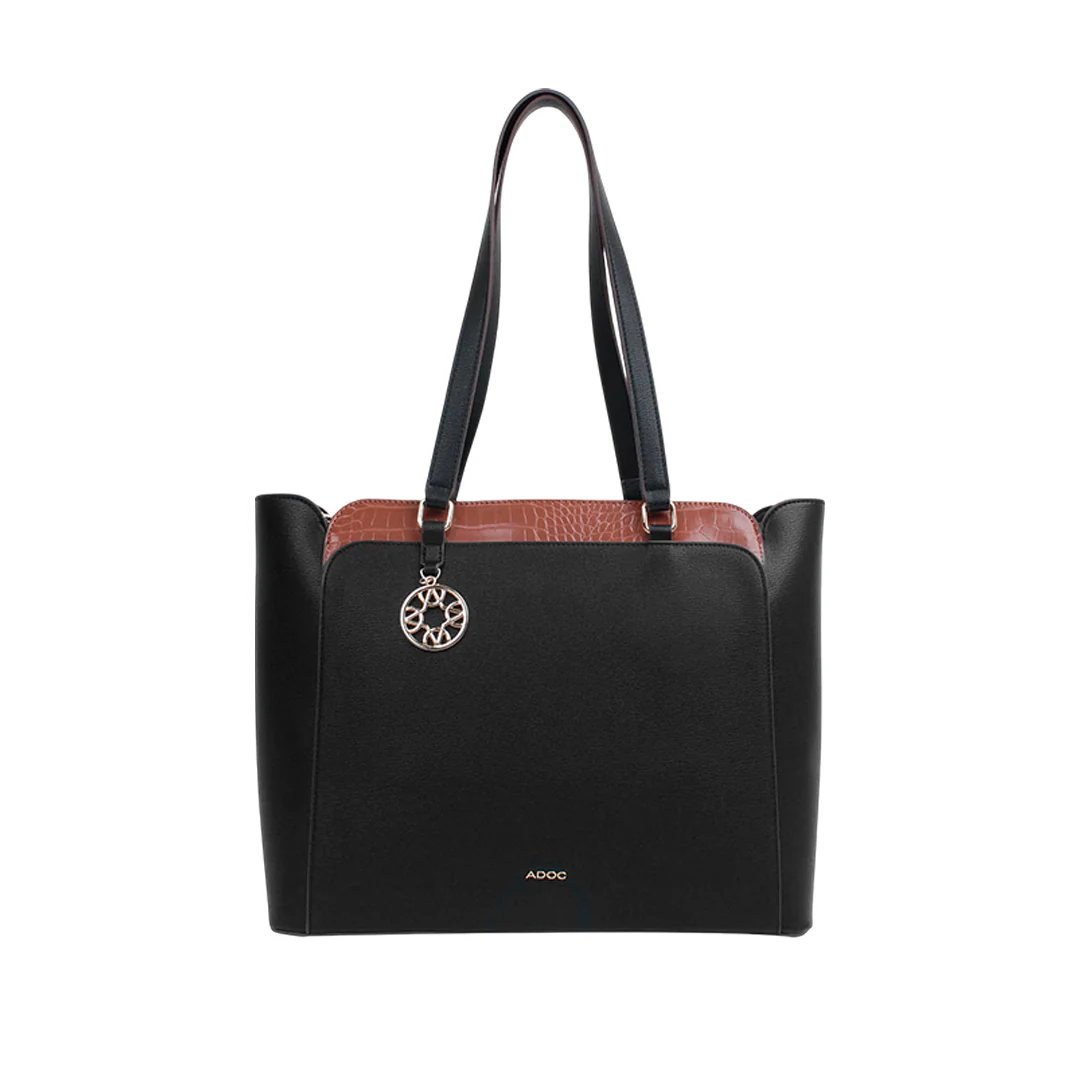 Cartera tote Bria para mujer color negro, en material sintético. Medidas: 36 × 13 × 29 cm; silueta estructurada y versátil con espacio suficiente para lo esencial.