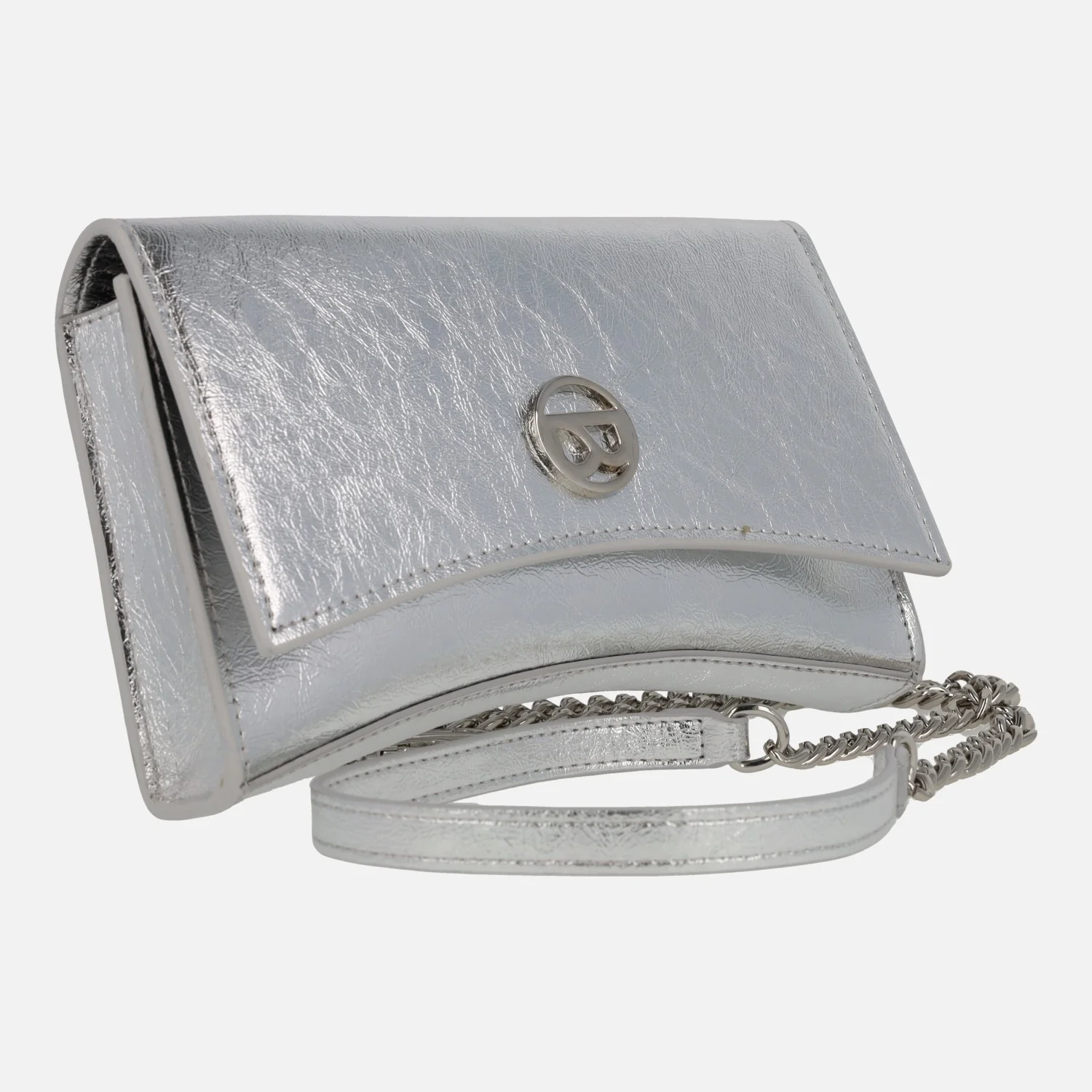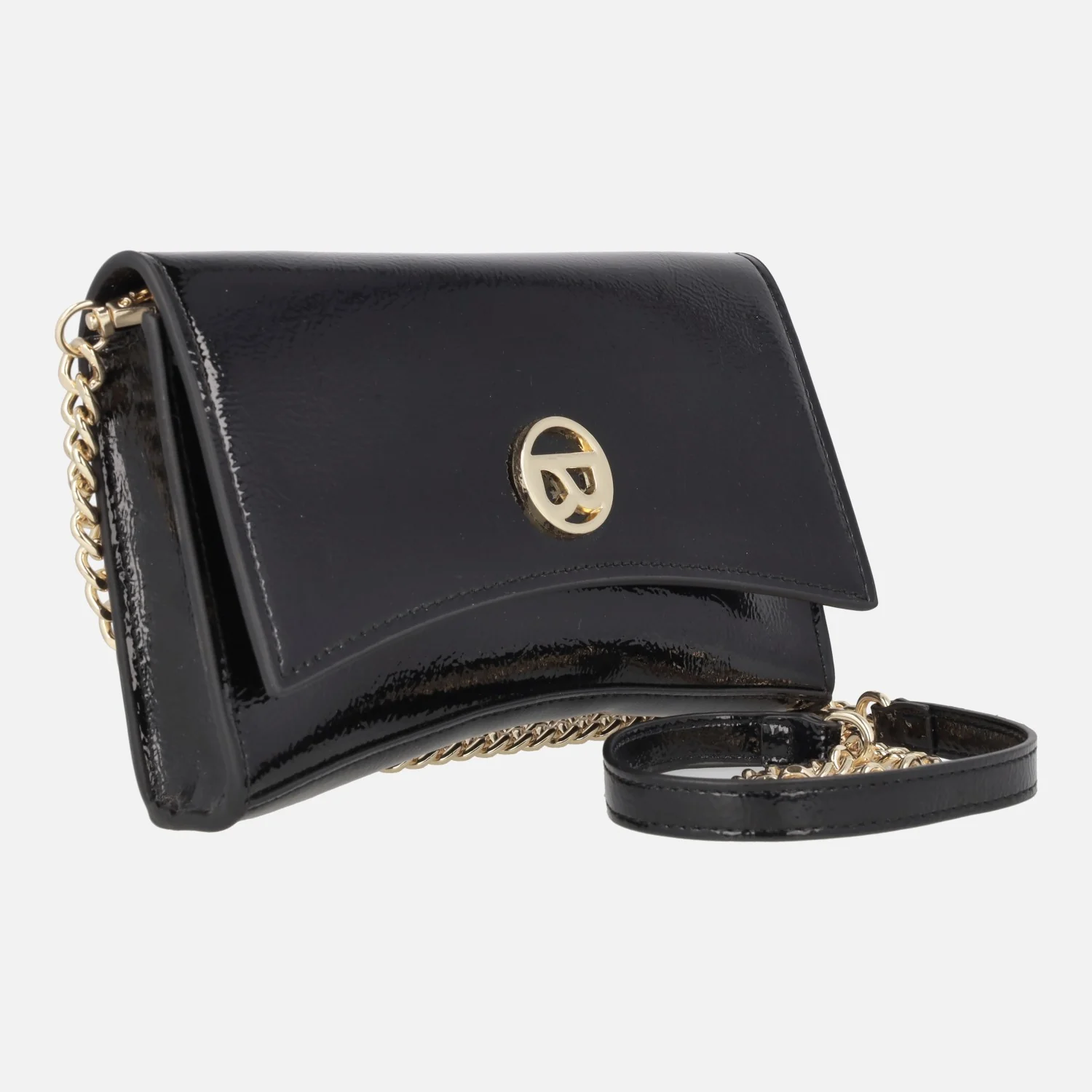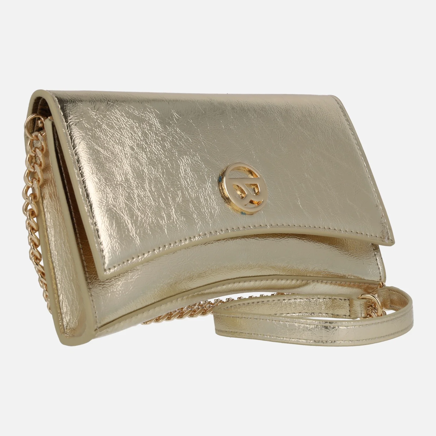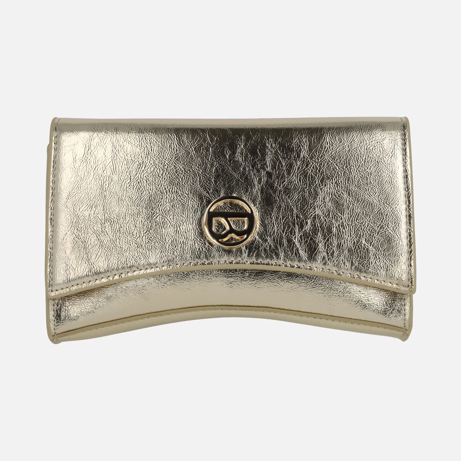 Carteras de fiesta Binnari modelo 20080 Lisa. Carteras elaboradas en PU de alta calidad, en acabado metalizado oro, plata o acharolado negro. Logo metálico en la parte frontal. Cierre de tapa con broches imantados. Asa de cadena y PU extraíble. Interior textil con un bolsillo de cremallera. Medidas aproximadas: 13 cms de alto (en las esquinas) x 21,5 cms de ancho x 3,5 cms de fondo.