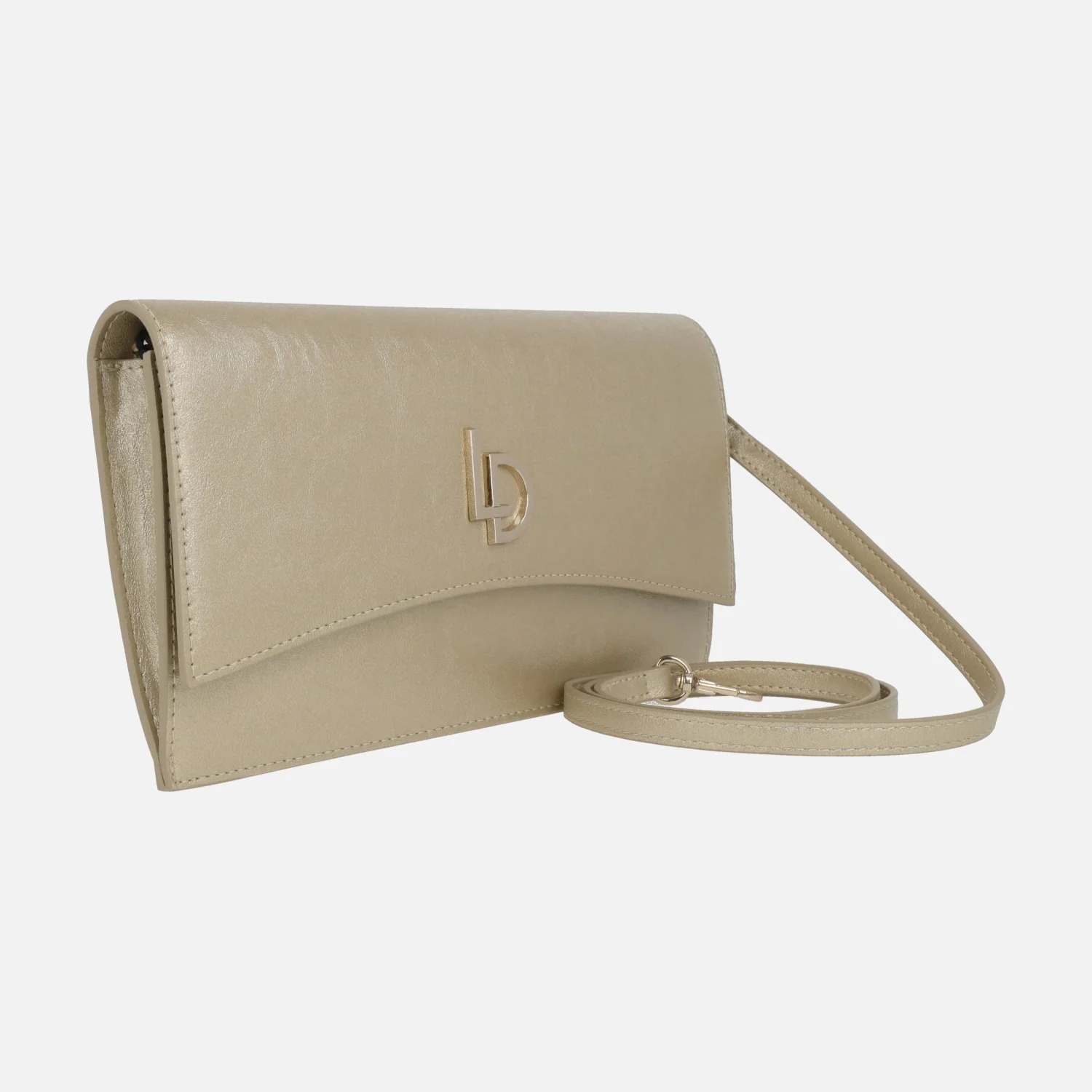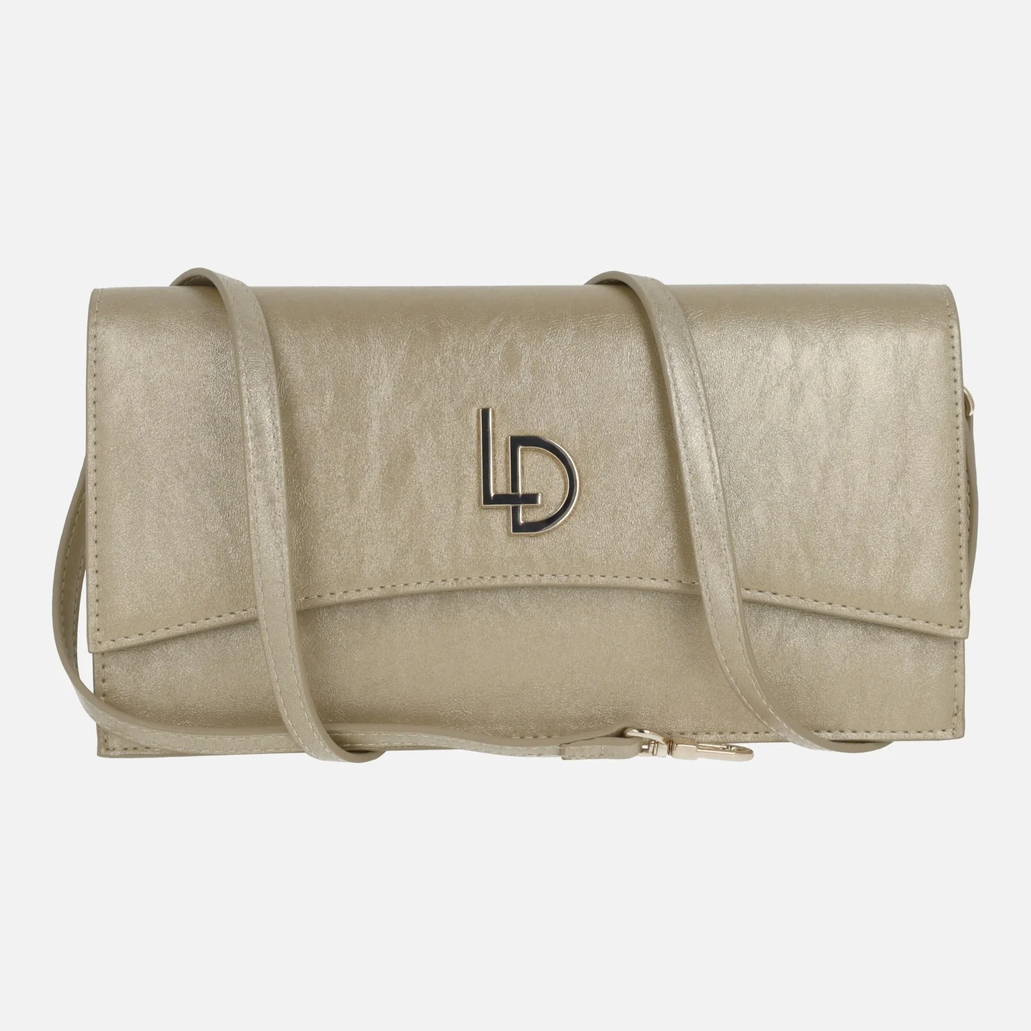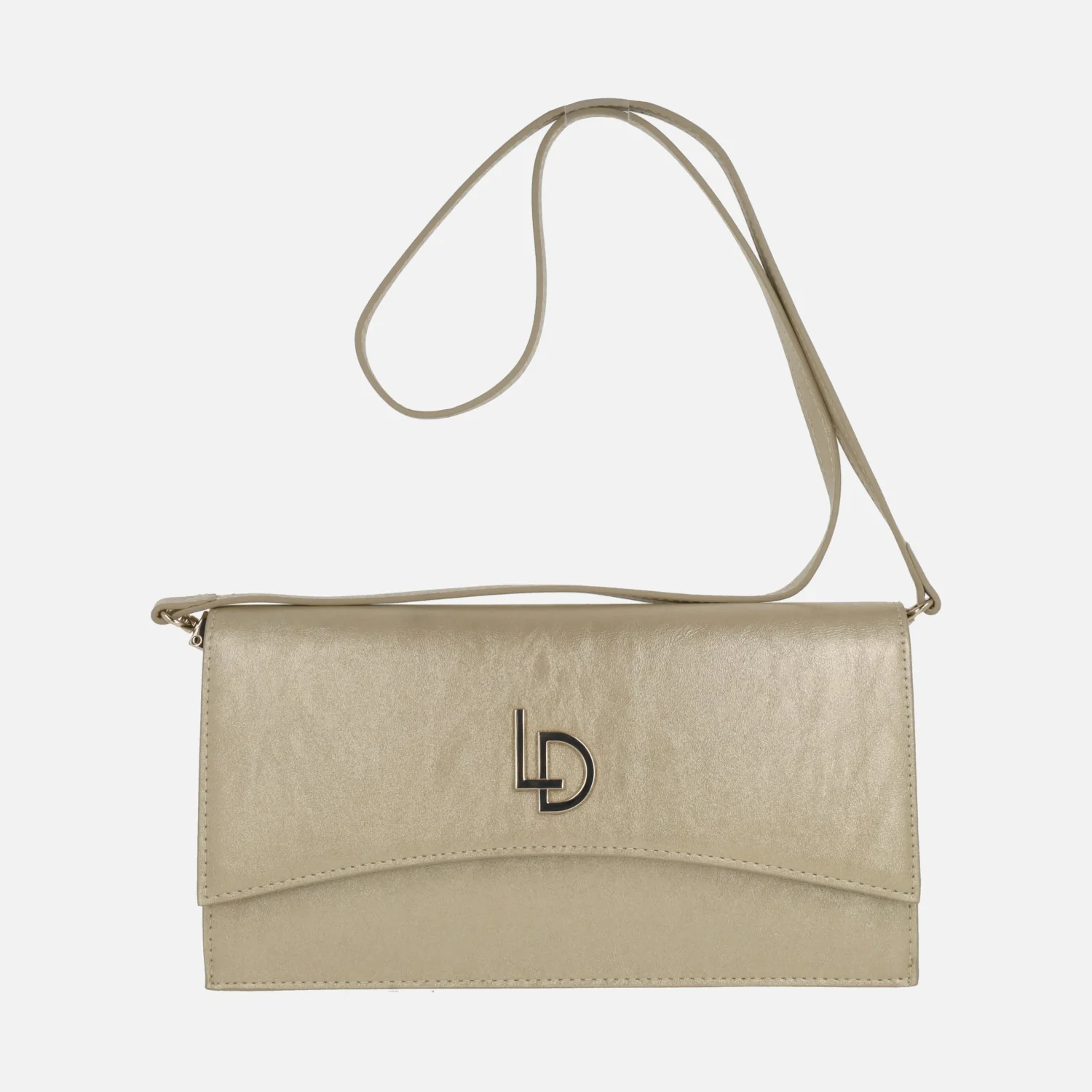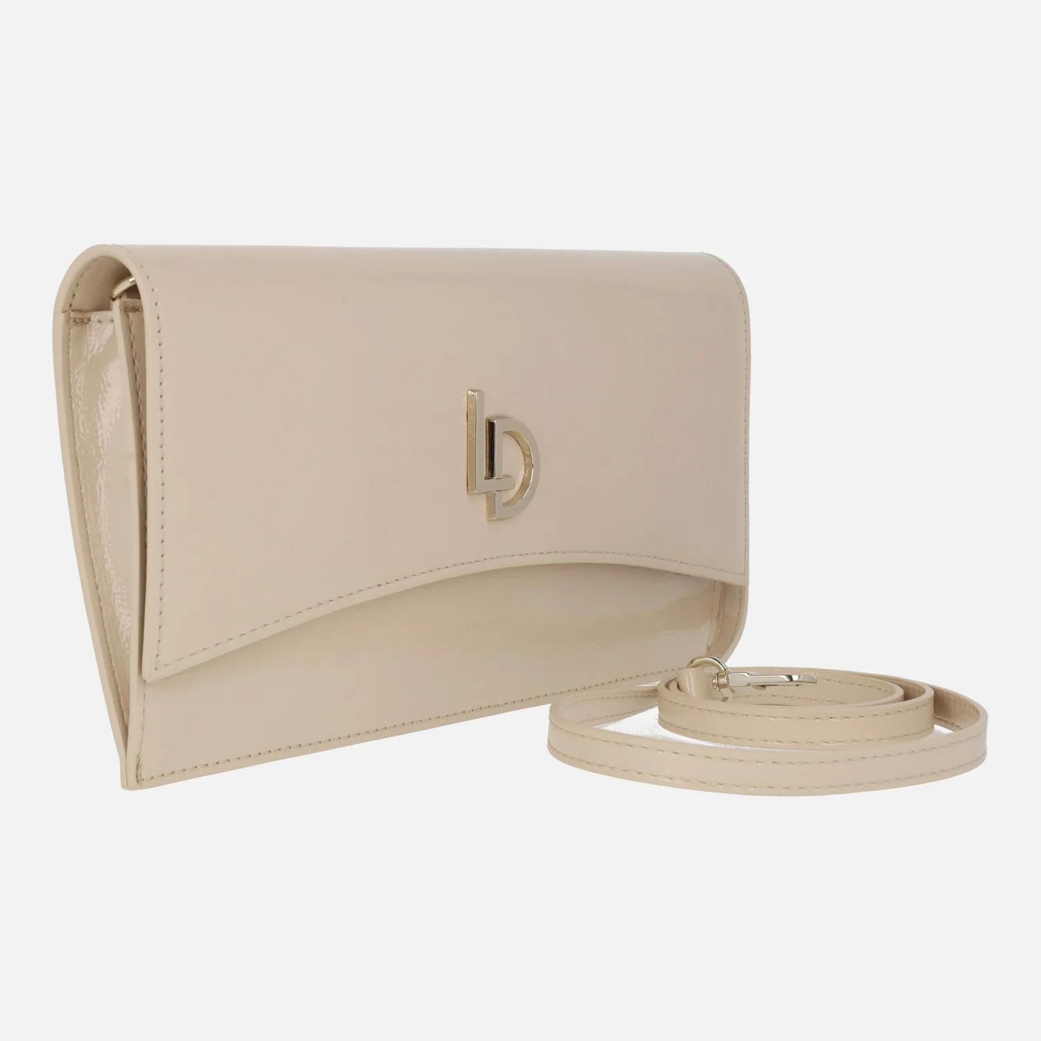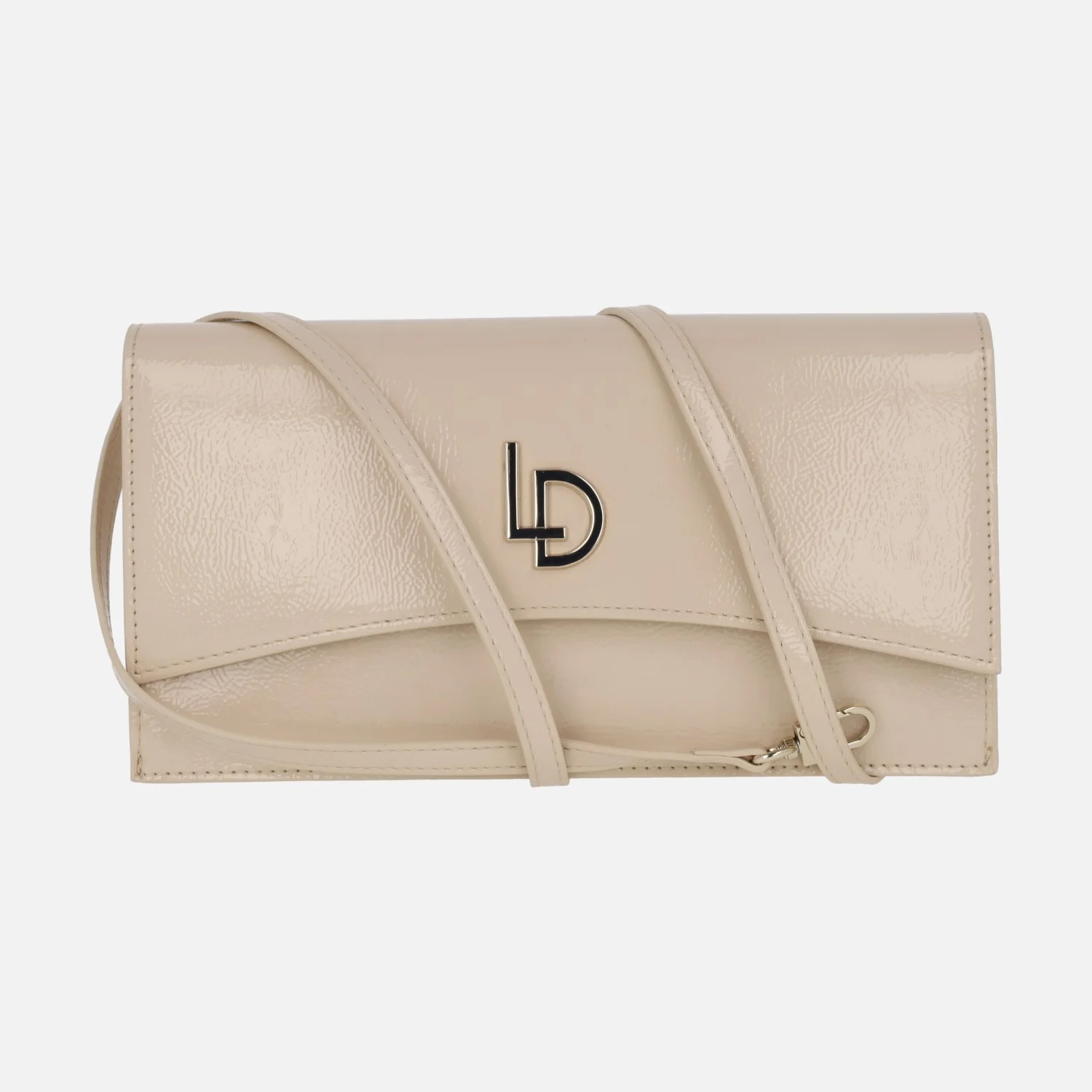 Carteras estilo sobre de la marca Lodi modelo LP1619, disponibles en metal cava o en charol nude. Carteras con solapa, elaboradas en materiales sintéticos, con logo metálico LD de Lodi en la tapa. Cierre con broche imantado. Interior textil con bolillos, uno de ellos con cremallera. Asa extraíble para cruzar. Medidas aproximadas: 15 cms de alto x 27 cms de ancho x 3 cms de fondo.