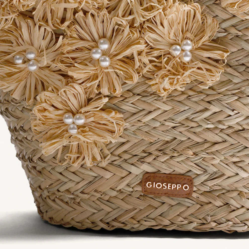 Preciosos bolsos estilo capazo / cesto de la marca Gioseppo modelo Roseau 78146 Natural. Elaborados en rafia vegetal con detalle de flores. Interior forrado en tejido poliéster. Cierre de cremallera. Dos asas cortas en rafia para llevar de mano. Dos más largas para colgar al hombro. Medidas aproximadas: 32 cm de alto x 49 cm de ancho superior x 29 cm de ancho inferior x 19 cm de fondo.