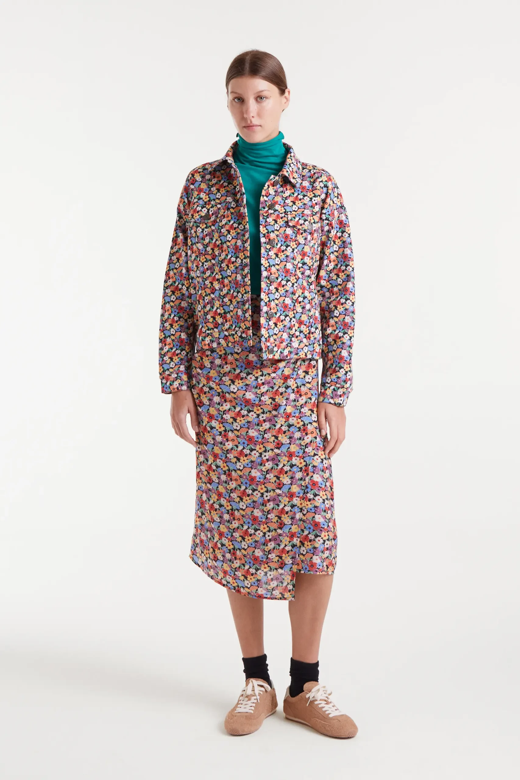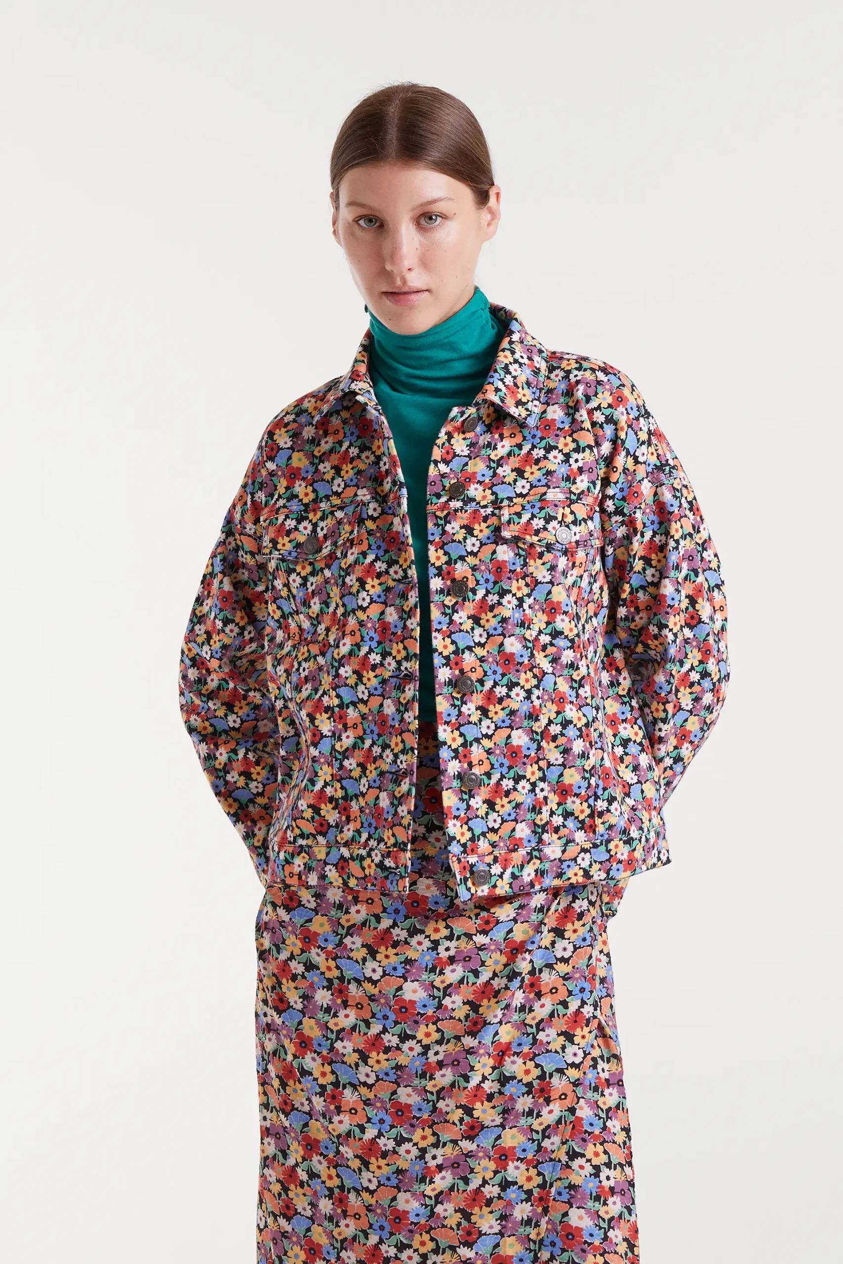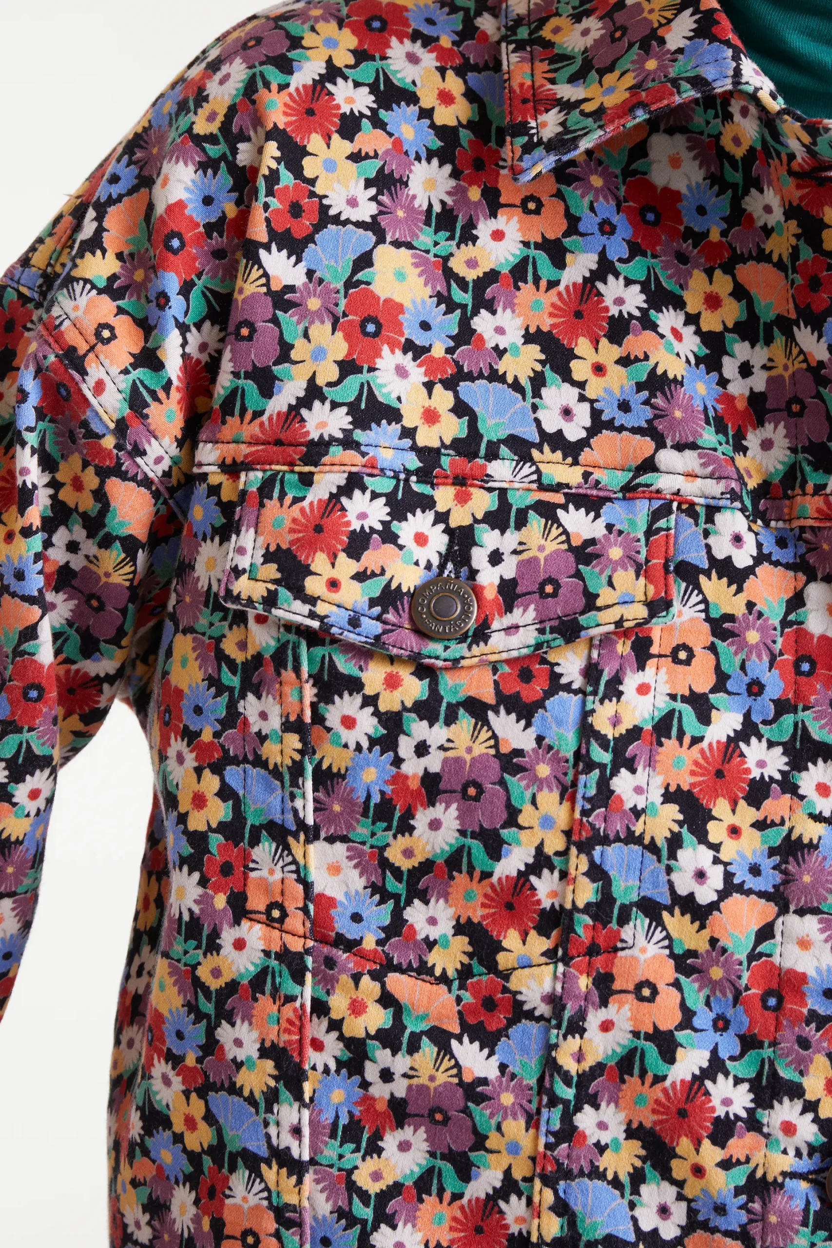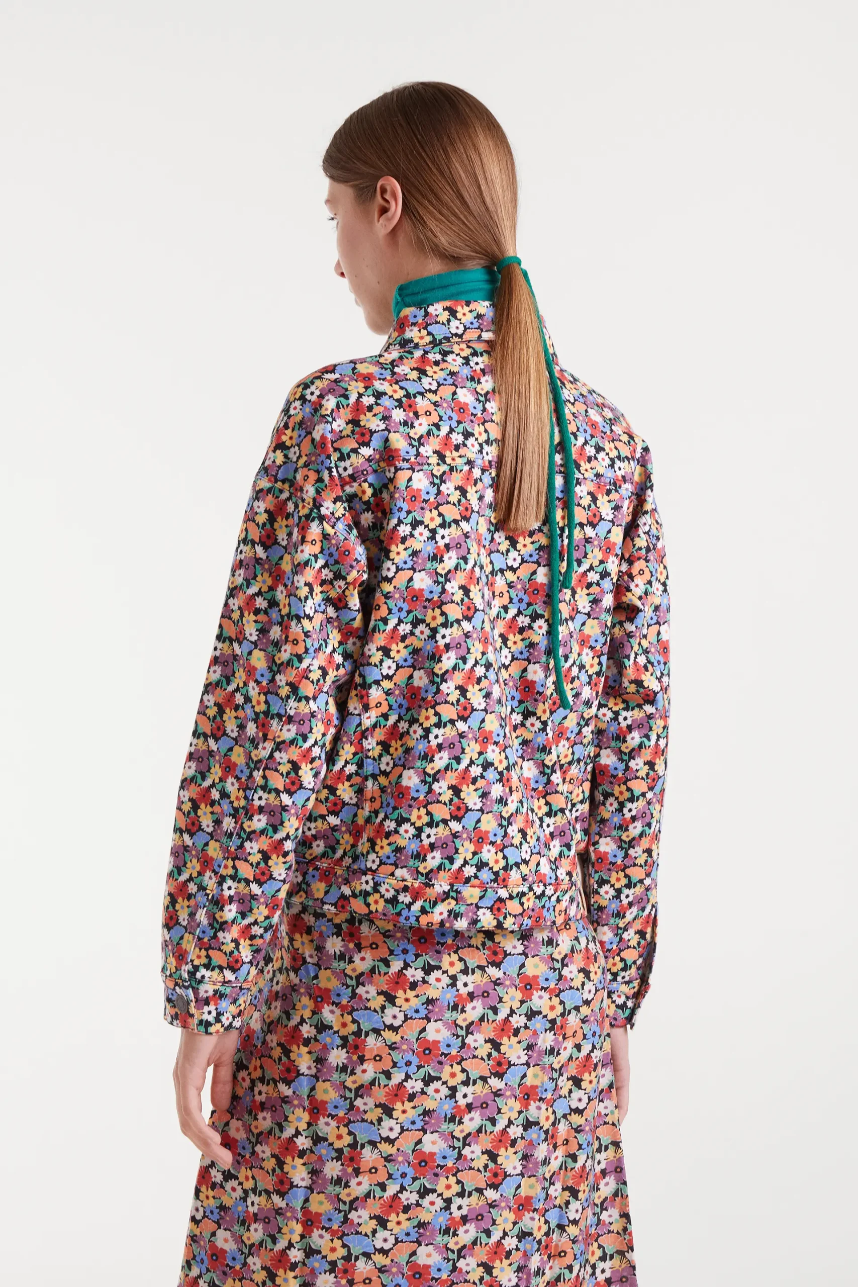 Chaqueta con tejido de denim elástico con estampado Hampton Small . Con cuello solapa y manga larga terminada en puño con botón. Hombro ligeramente caído. Bolsillos frontales con solapa y botón. La modelo mide 177 cm y lleva la talla S.