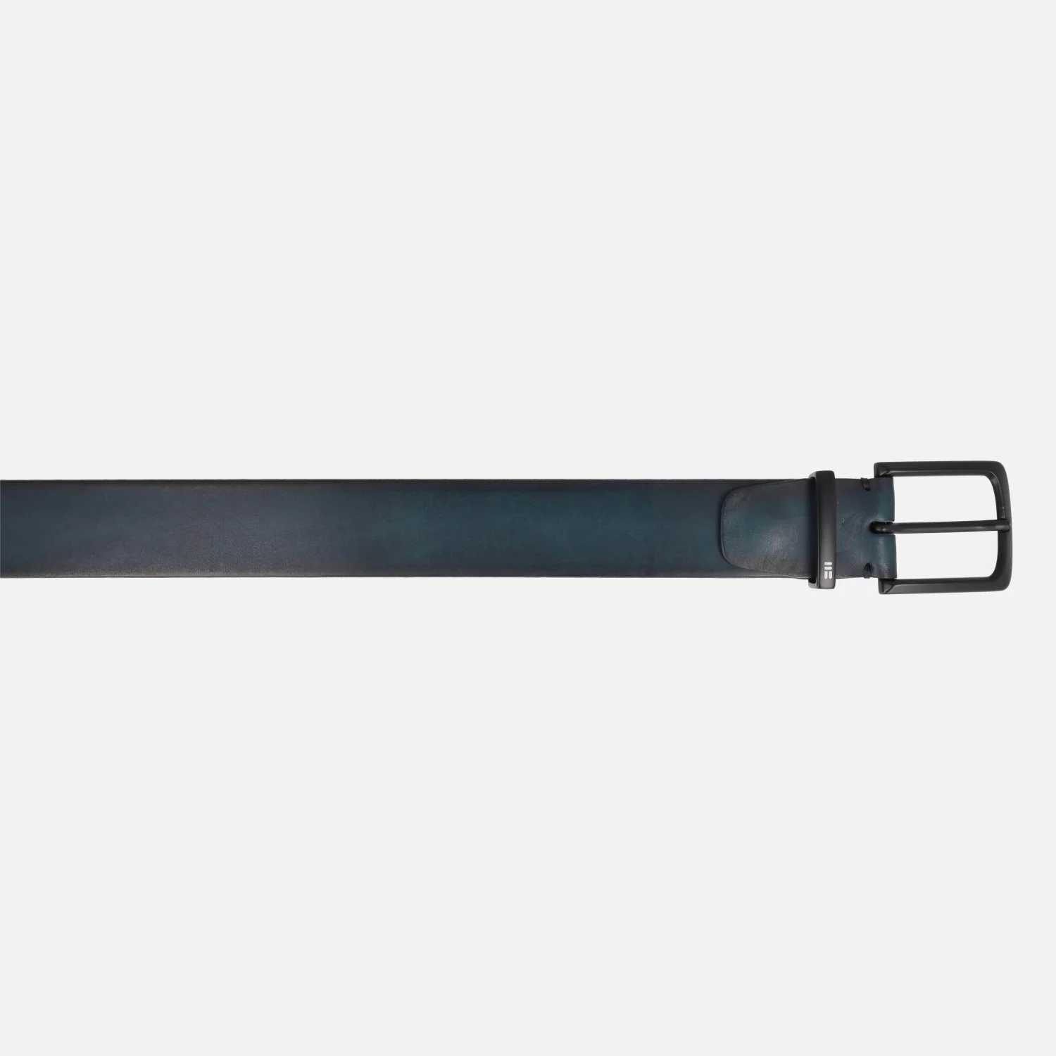 Cinturones de piel para hombre de la marca Miguel Bellido, modelo 4075-35 Azul índigo. Cinturones elaborados en piel azul, con hebilla negra. Hechos en España.