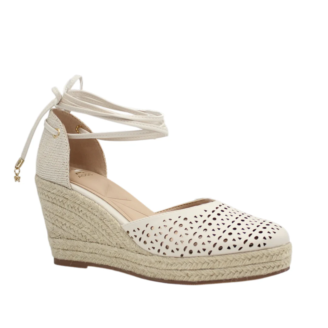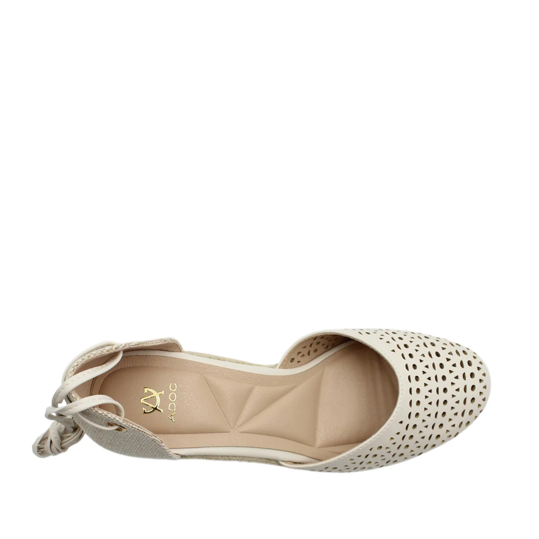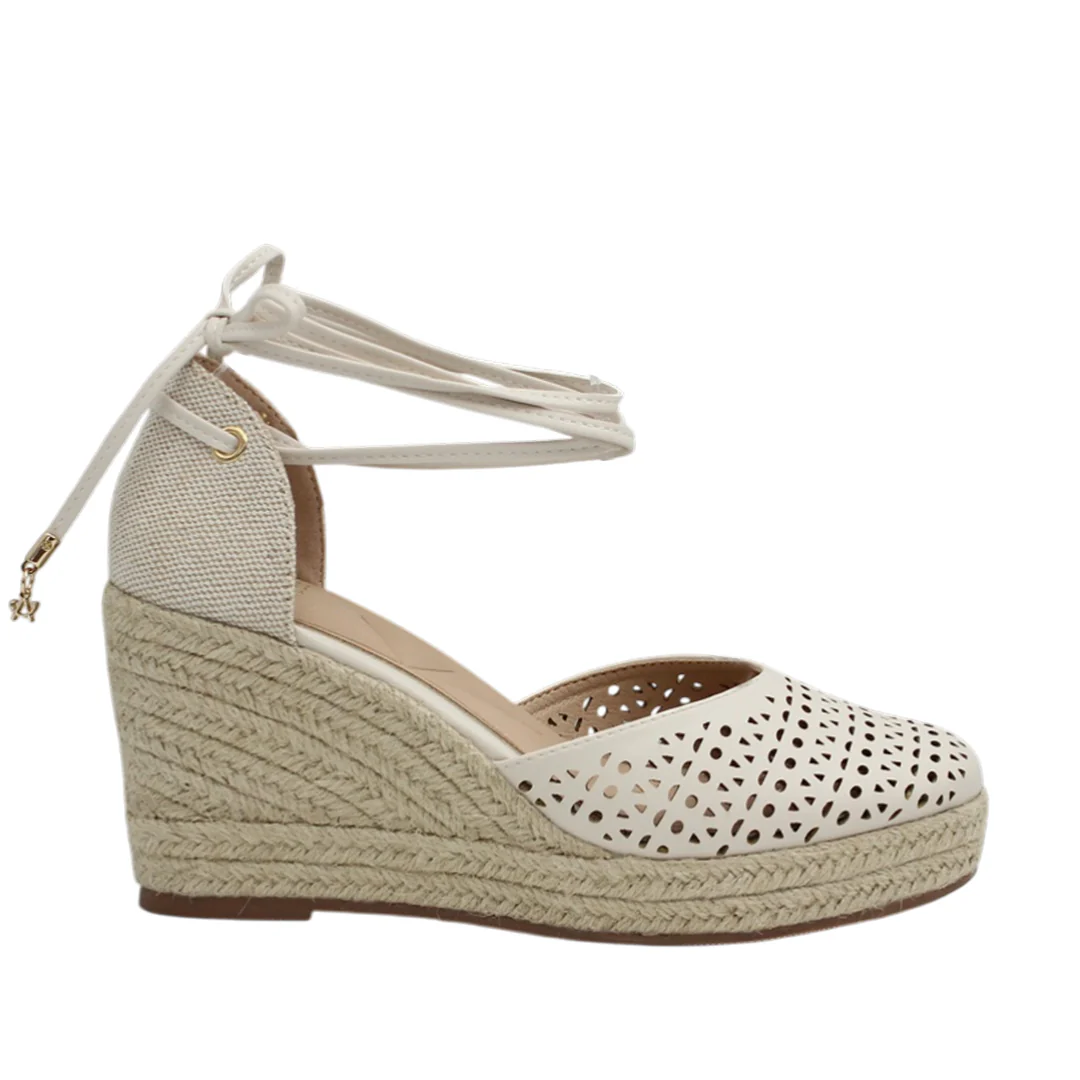 Zapatos de cuña Glinda para mujer color hueso, altura 10 cm, material sintético. Neutras y elegantes para complementar looks de día o noche.