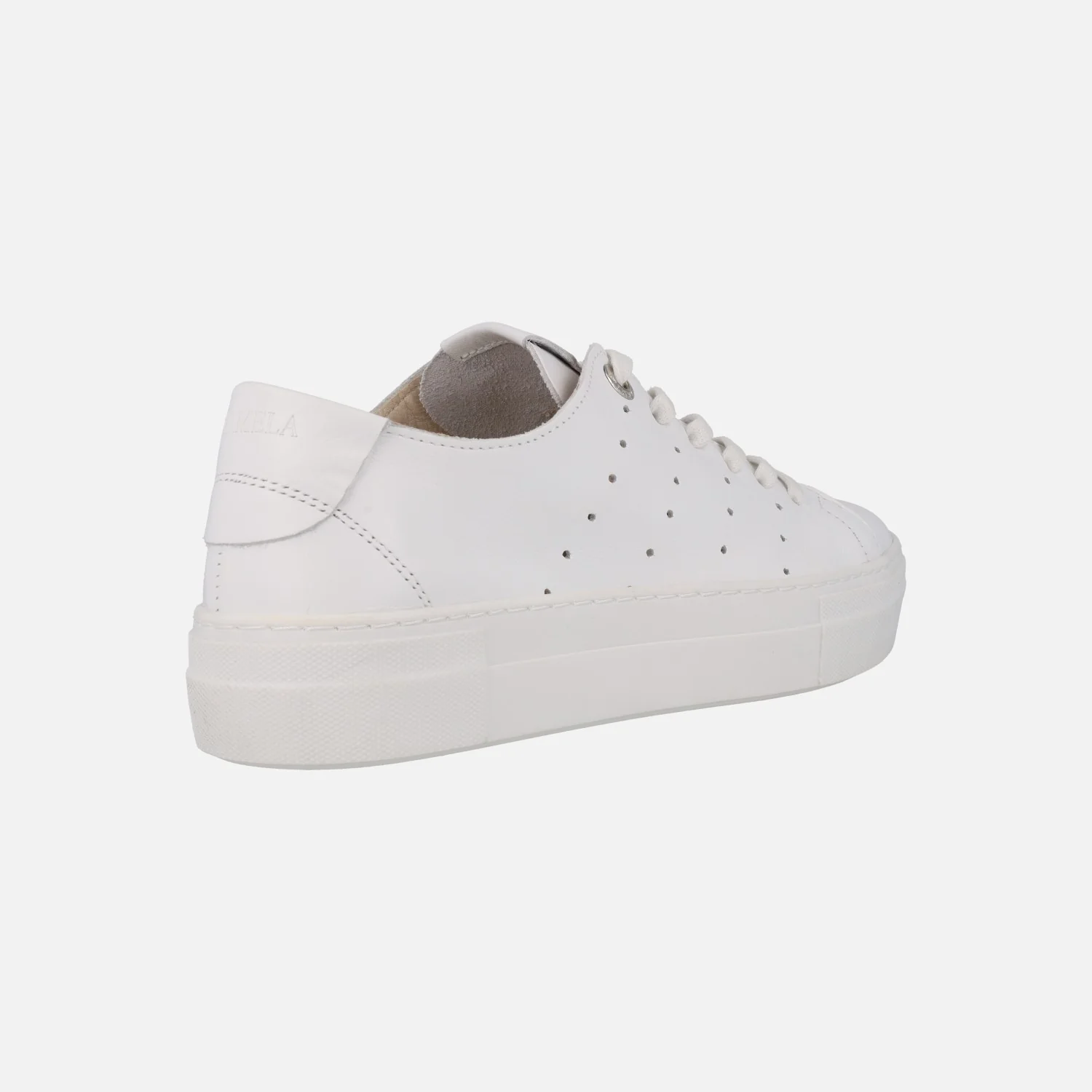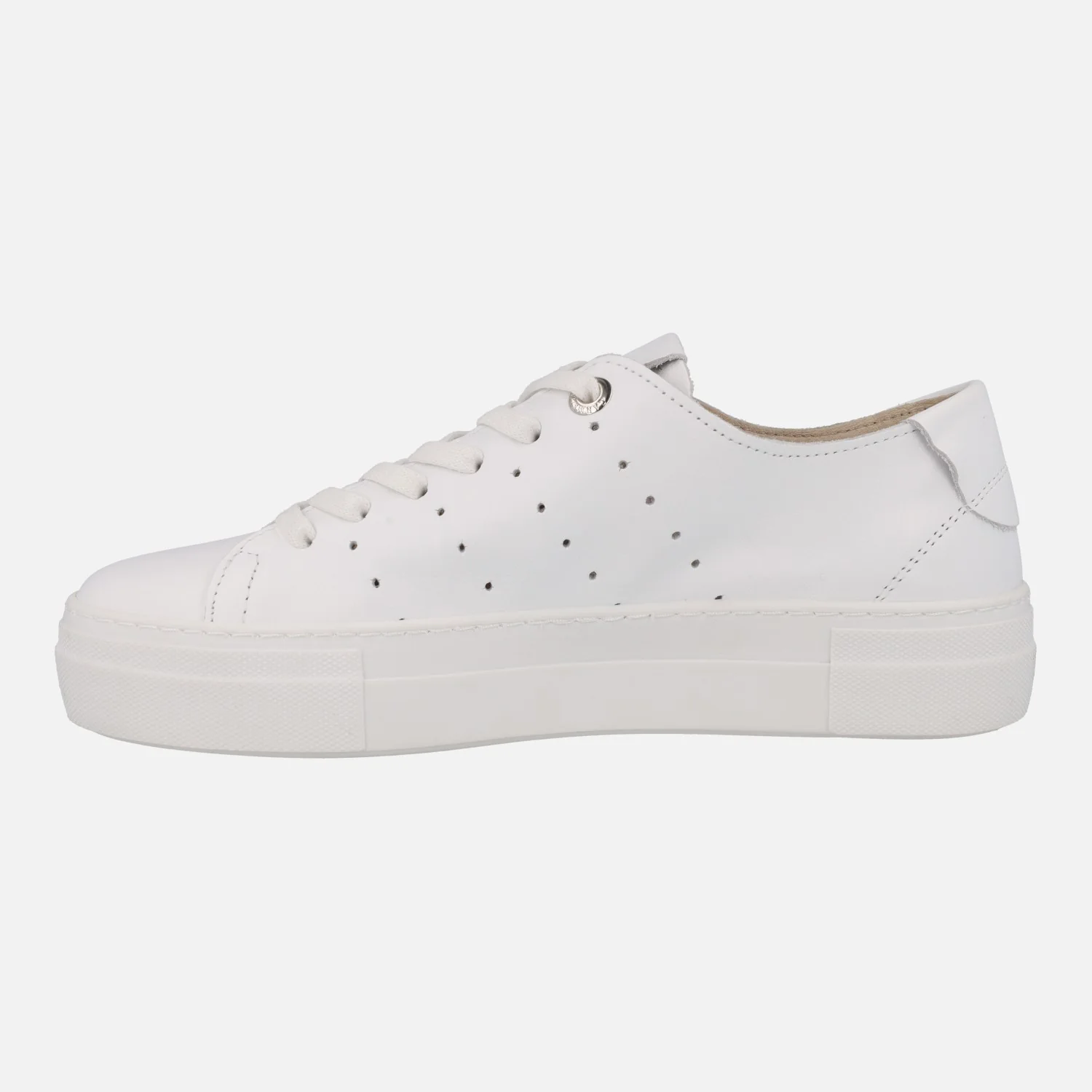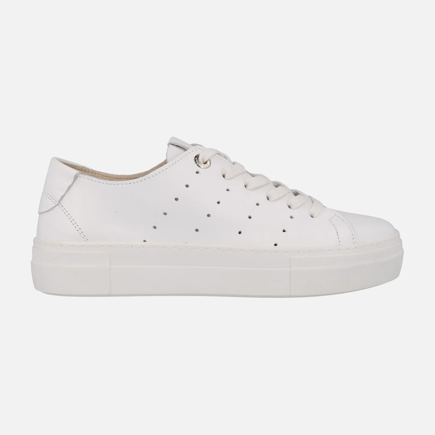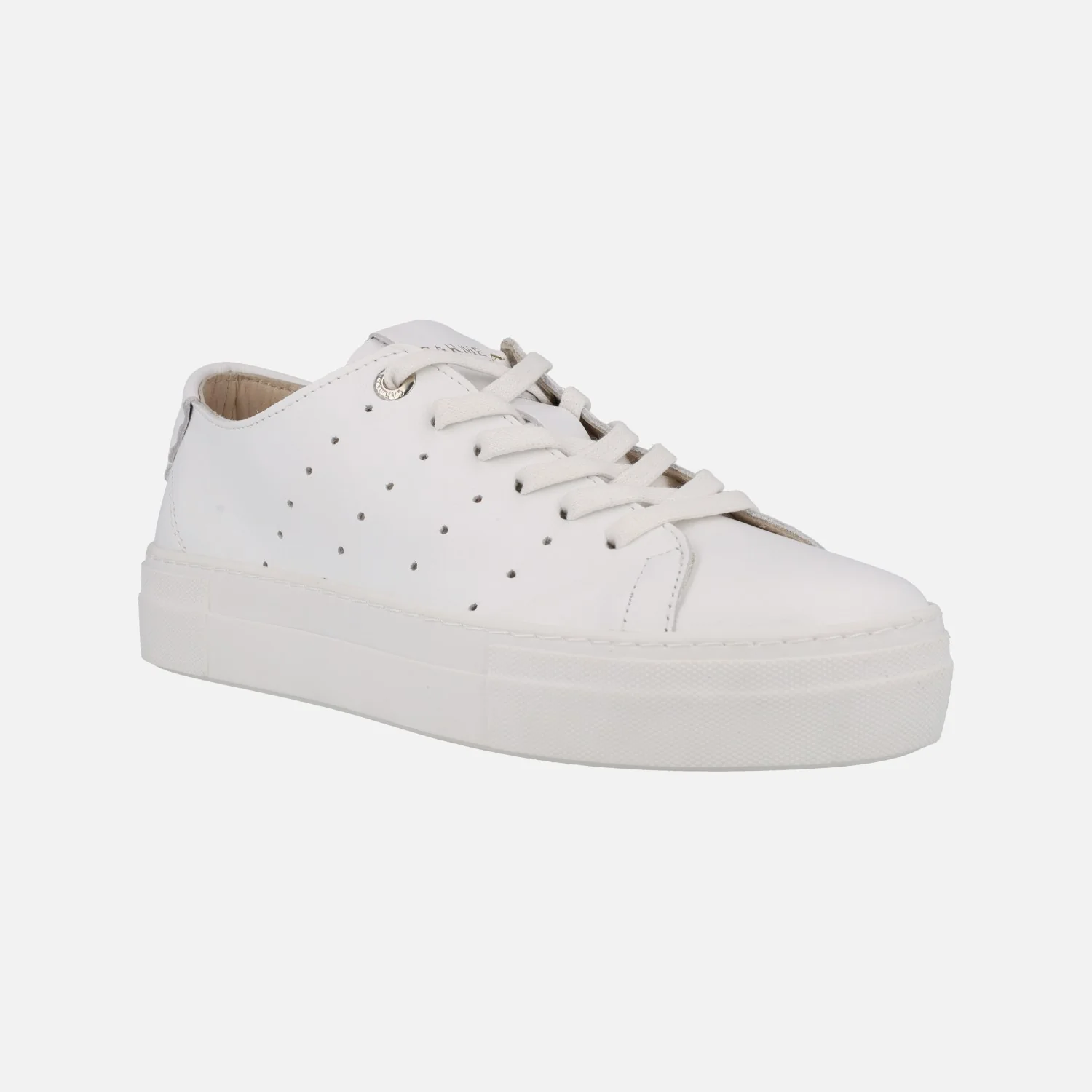 Deportivas para mujer de la marca Carmela shoes modelo 161337 Blanco. Sneakers de piel blancas, con cierre de cordones y detalle de picados en los laterales. Interior de piel. con plantillas extraíbles. Piso de goma de 3,5 cms de altura.