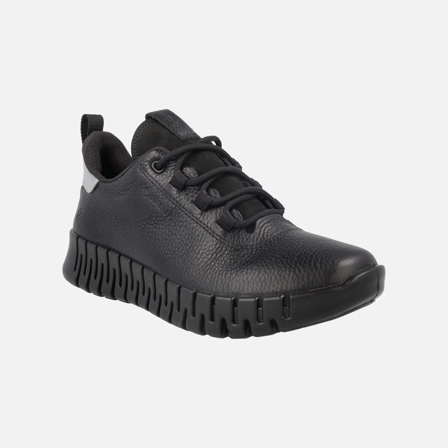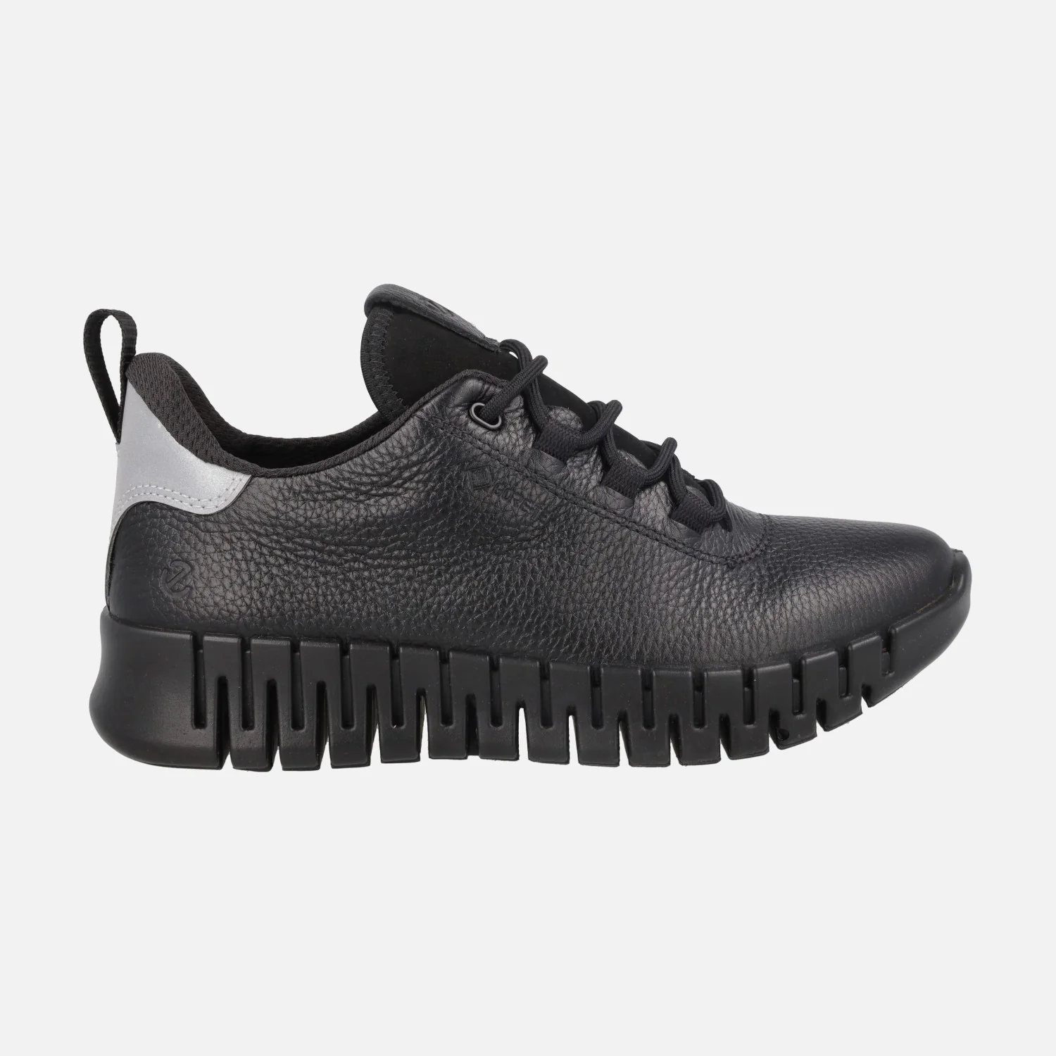 Deportivas confort para mujer de la marca Ecco, modelo 218233 Gruuv W GTX Leather sneakers, disponibles en negro (black) y en beige (limestone) . Sneakers con cierre de cordones elaboradas en piel con detalle de talón metalizado. Disponibles en color beige clarito o negro. Detalle de talonera con tirador para facilitar el calce. Interior textil, con plantillas extraíbles de espuma forradas en tejido, membrana interior de GORETEX, impermeable y gran aislante térmico. Entresuela de PU acolchada. Piso de goma de 4 cms de altura en la parte trasera (2,5 cms parte delantera). Suela de caucho bidireccional, super flexible.